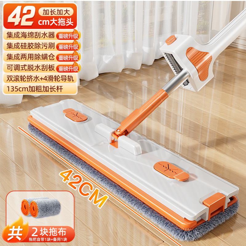 • 생생한 오렌지색 [42CM 이중층 두꺼운 걸레 헤드 + 두꺼운 천 2개] 다기능 걸레 및 긁기 + 두꺼운 강화 막대✦