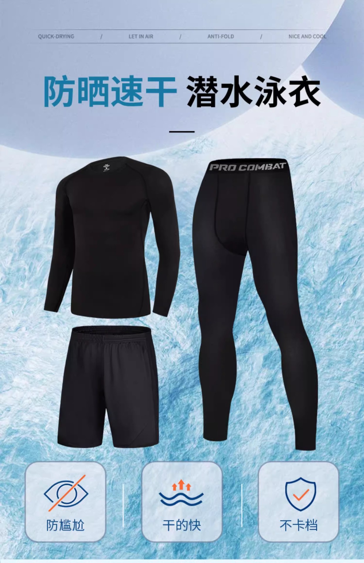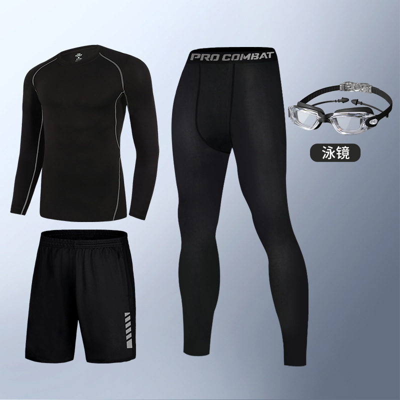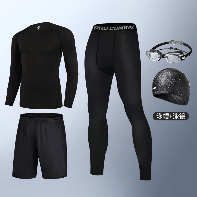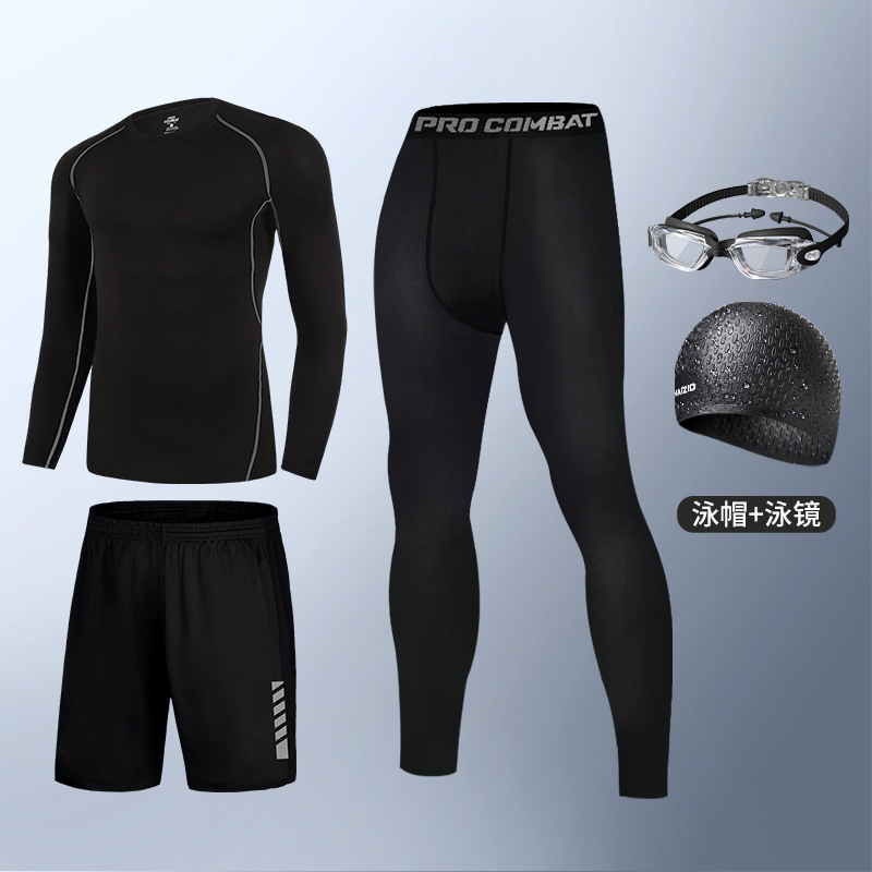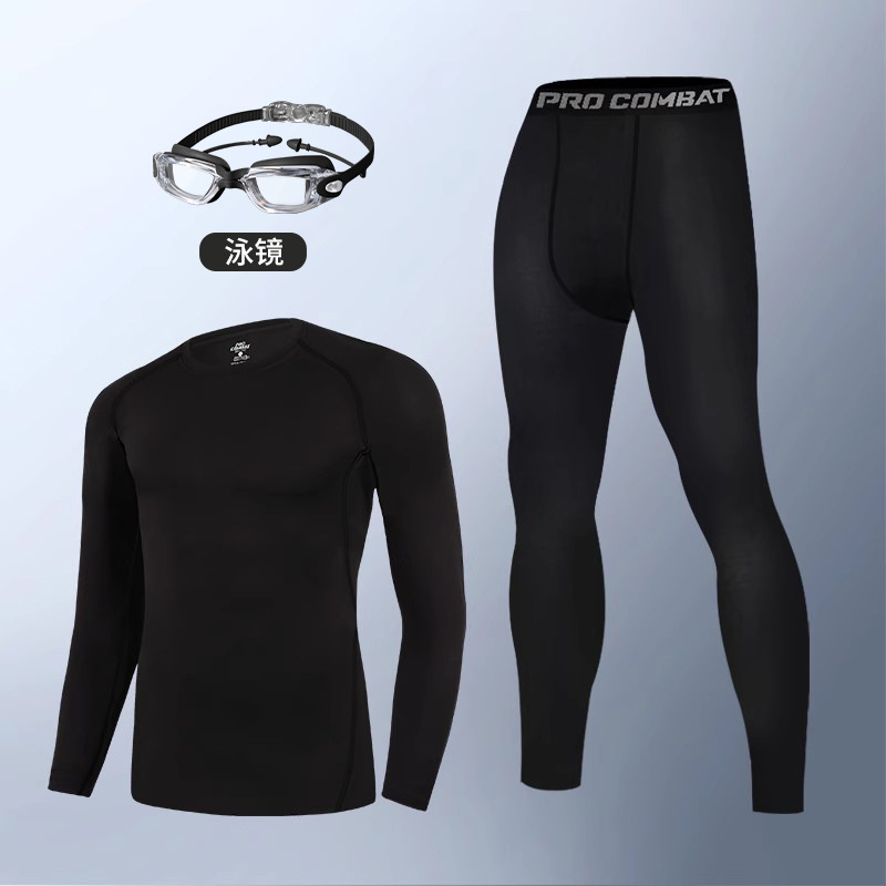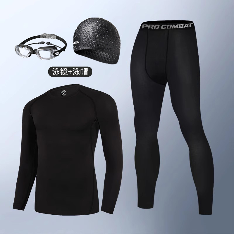 • J07 블랙 라인 블랙 긴팔 + JK01 블랙 반바지 + J03 블랙 라인 블랙 9부 팬츠 + 수영 고글 + 수영 모자