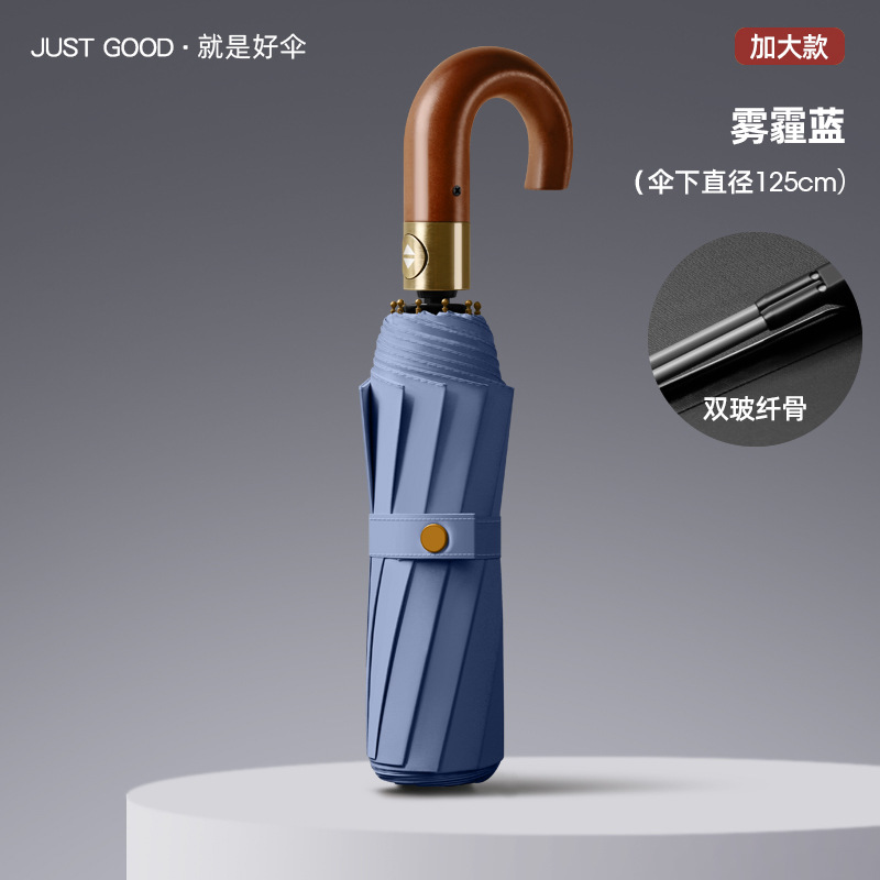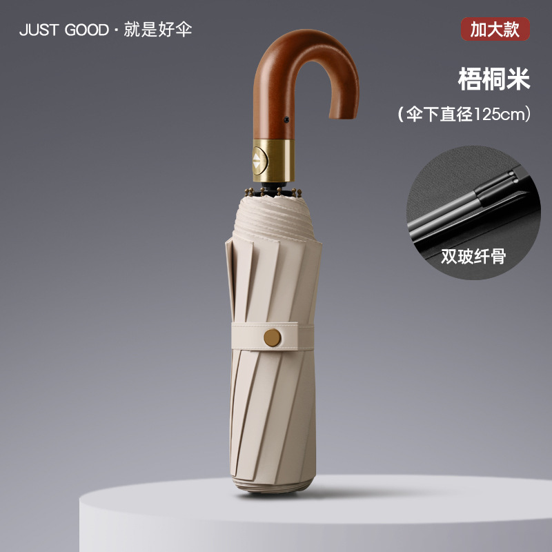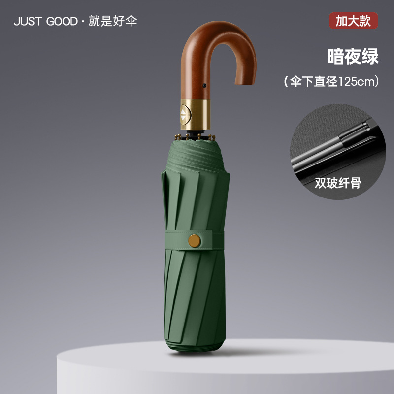 새로운 완전 자동 솔리드 우드 폴딩 우산 곡선 핸들 하이 엔드 비즈니스 선 스크린 자외선 방지 블랙 우산 맑고 비 우산스토어 가기