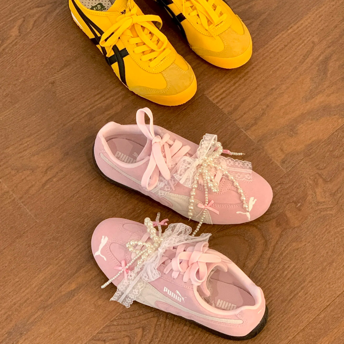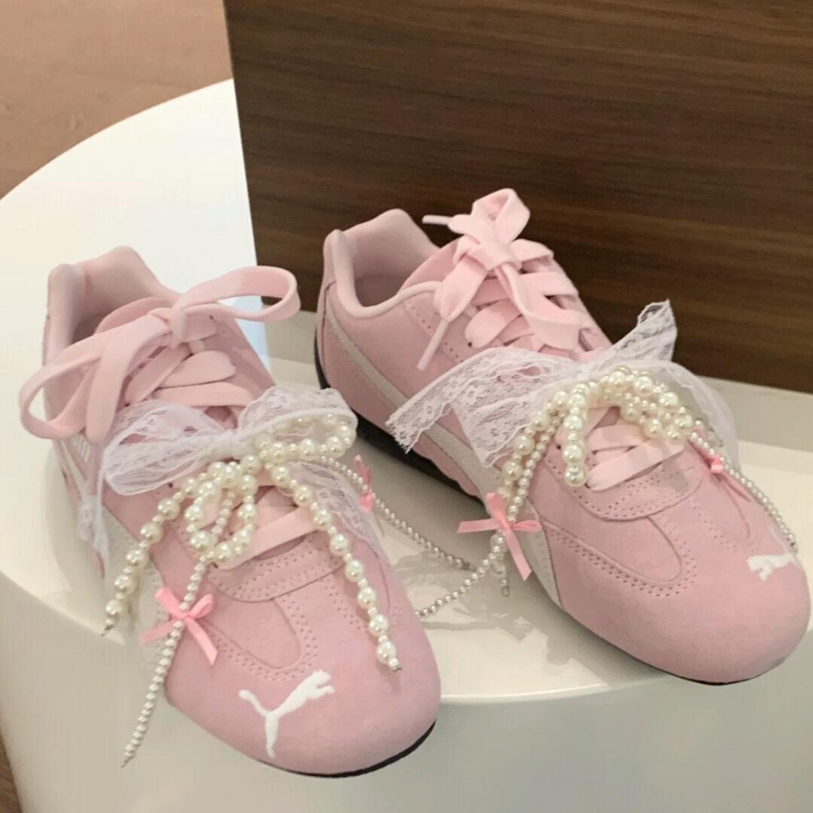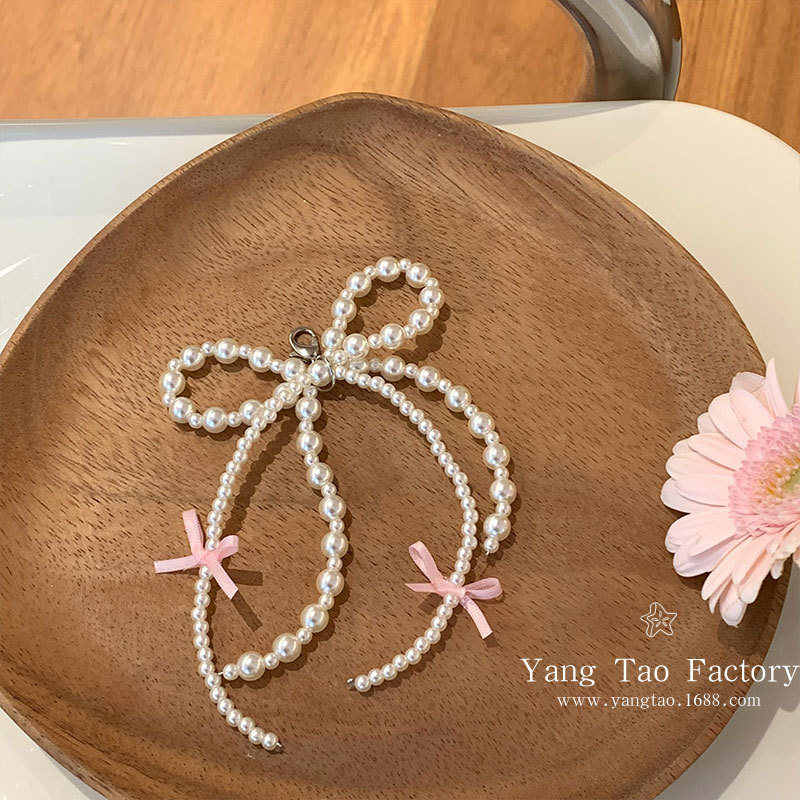 Ins 핑크 진주 활 신발 꽃 DIY 구슬 발레 스타일 소녀 운동화 신발 버클 장식 액세서리 교수형 장식품