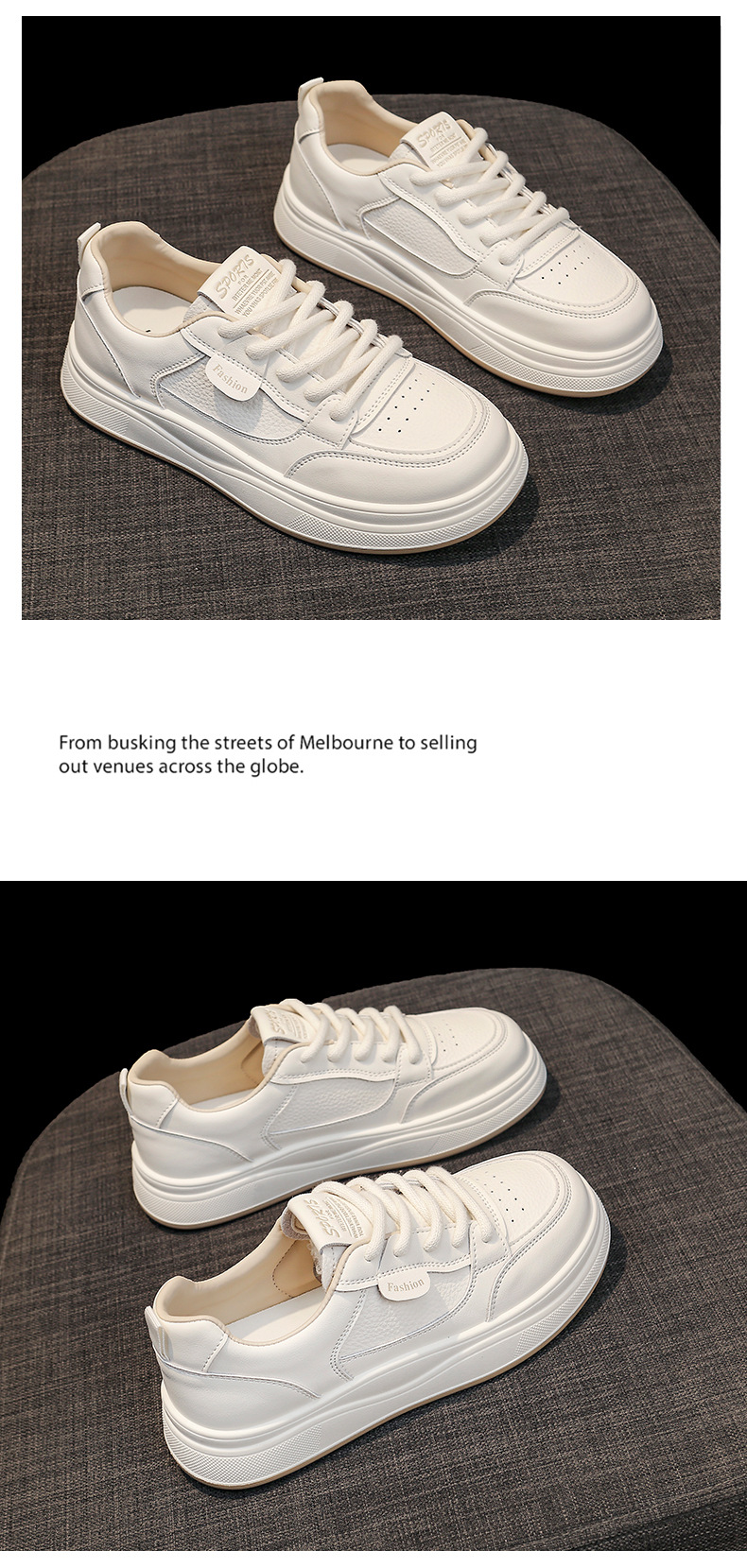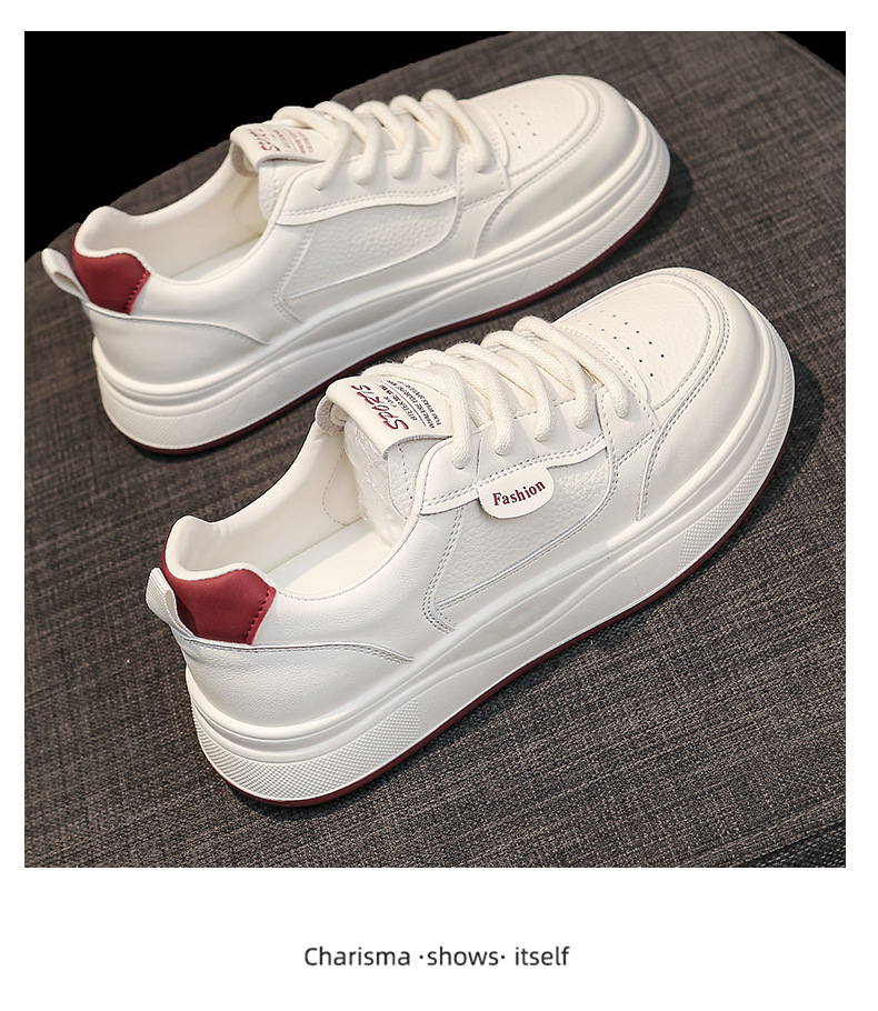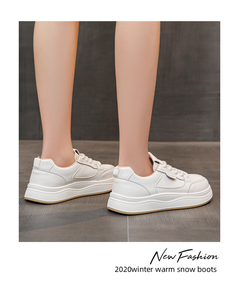 폭발 부드러운 가죽 캐주얼 운동화 2025 새로운 편안한 올매치 플랫 높이 증가 패션 여성 신발 흰색 신발 경량