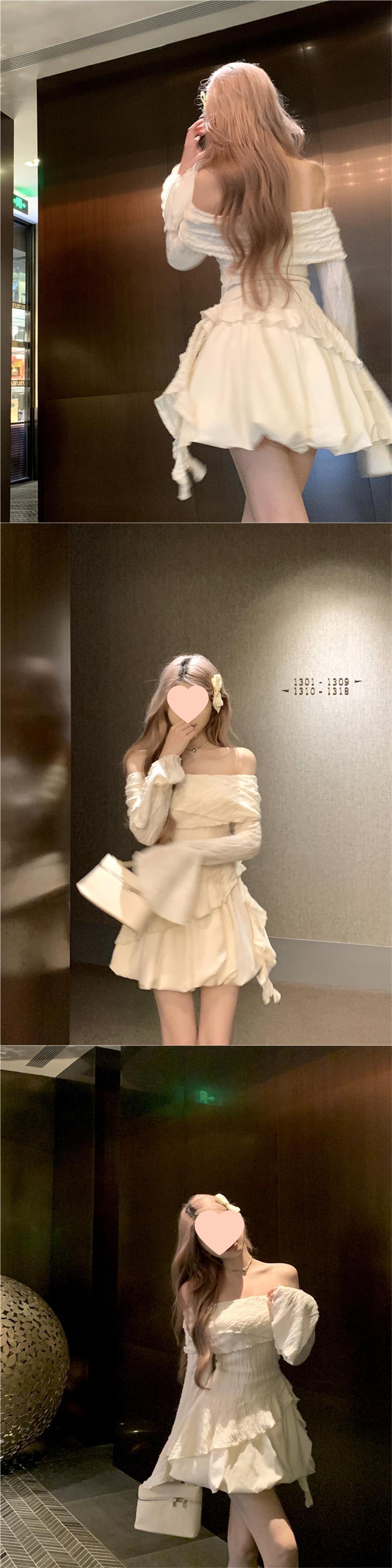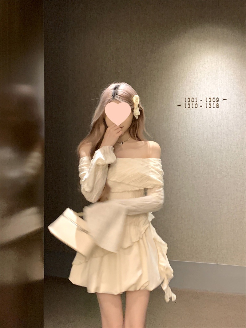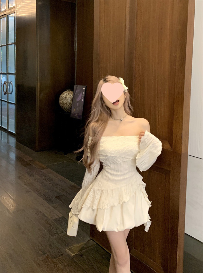 2 피스 시트 레이스 최고 순수한 욕망 세트 여성용 가을 슬림-핏 시즌 어깨 꽃 버드 스커트 스판덱스스토어 가기