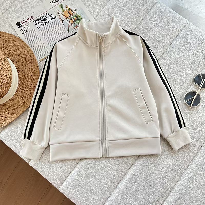 아동복 소년 소녀 높은 탄성 빠른 드라이 스포츠 지퍼 재킷 줄무늬 재킷 2025 봄 478241