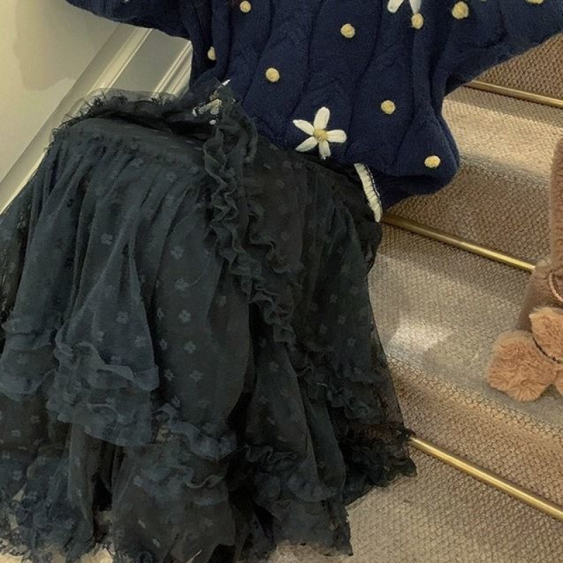 프랑스 스타일 달콤한 새 스타일 스커트 감지 레이스 디자인 케이크 스커트 중간 길이 스커트 여성의 높은 허리 슬리밍 올매치스토어 가기