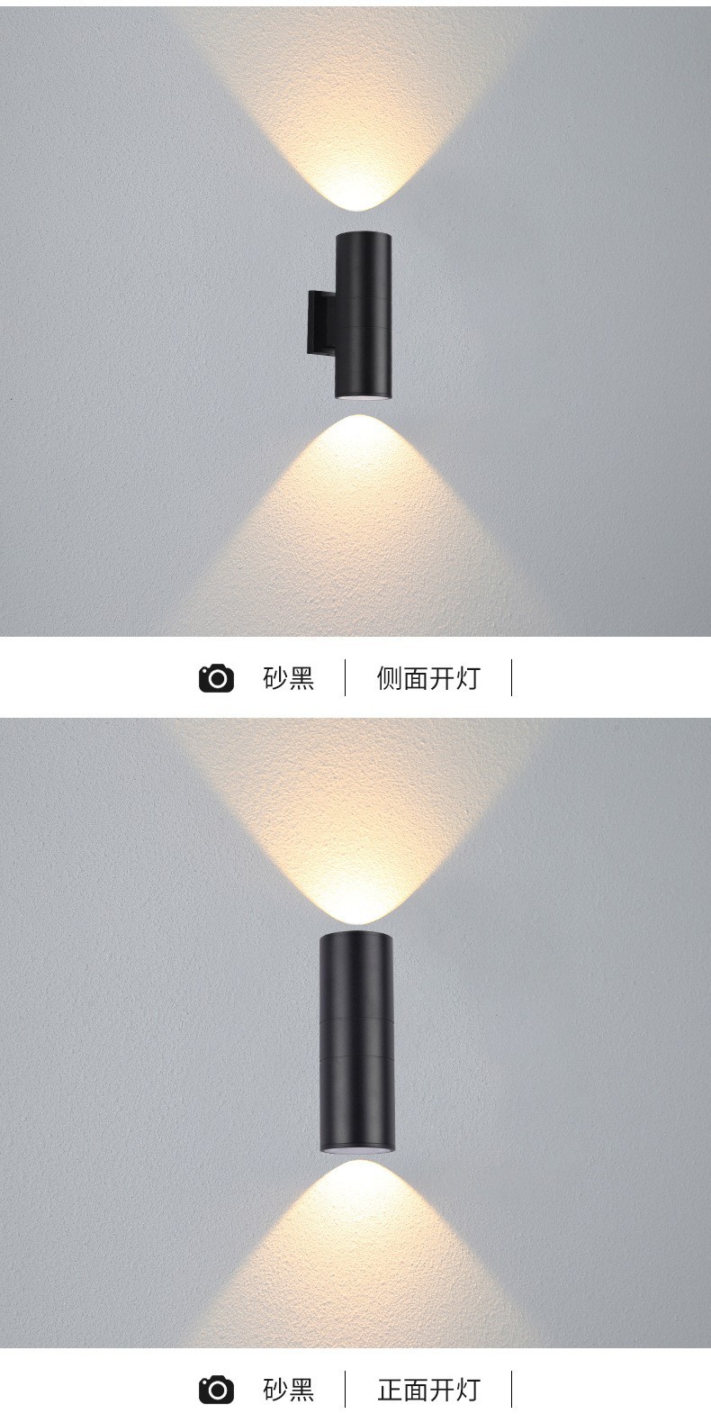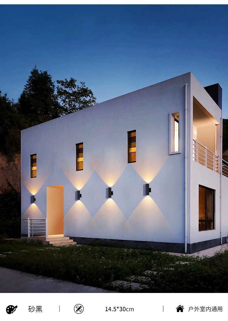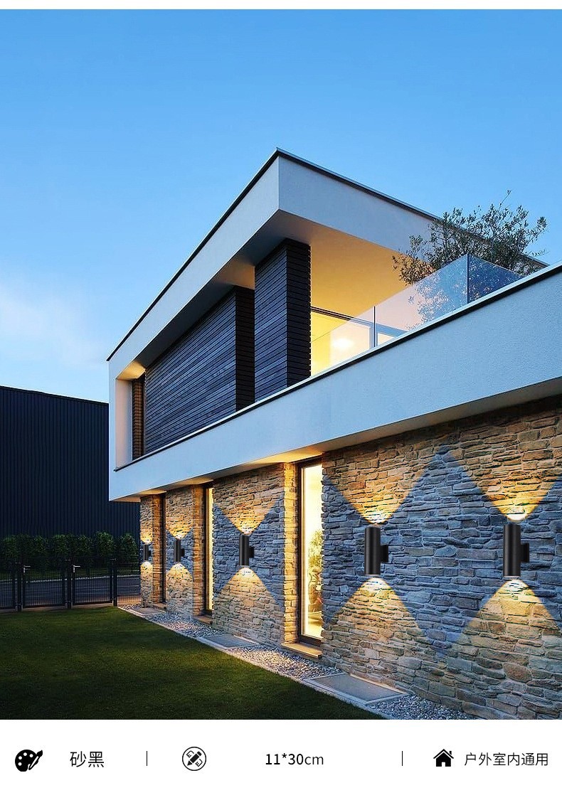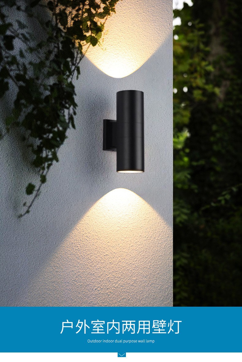 LED 야외 벽 램프 더블 헤드 단일 헤드 라운드 외부 벽 위아래로 스포트라이트 안뜰 야외 문 기둥 방수 벽 램프