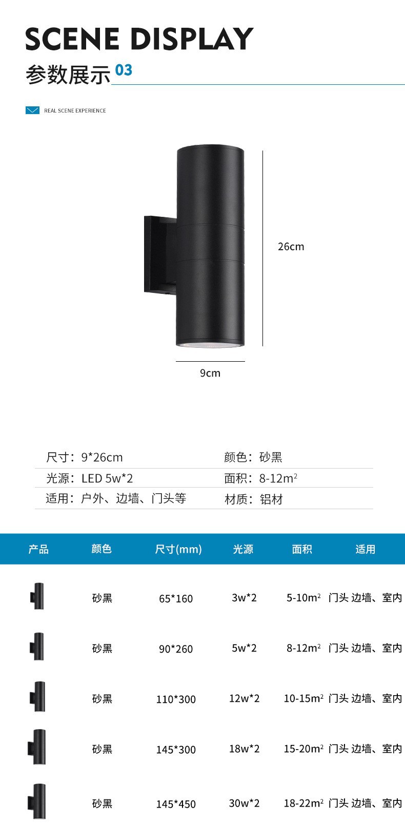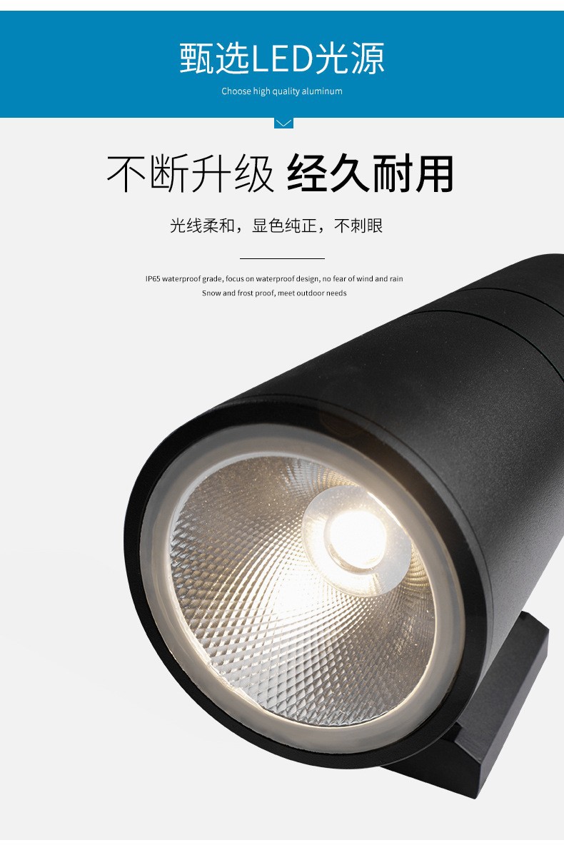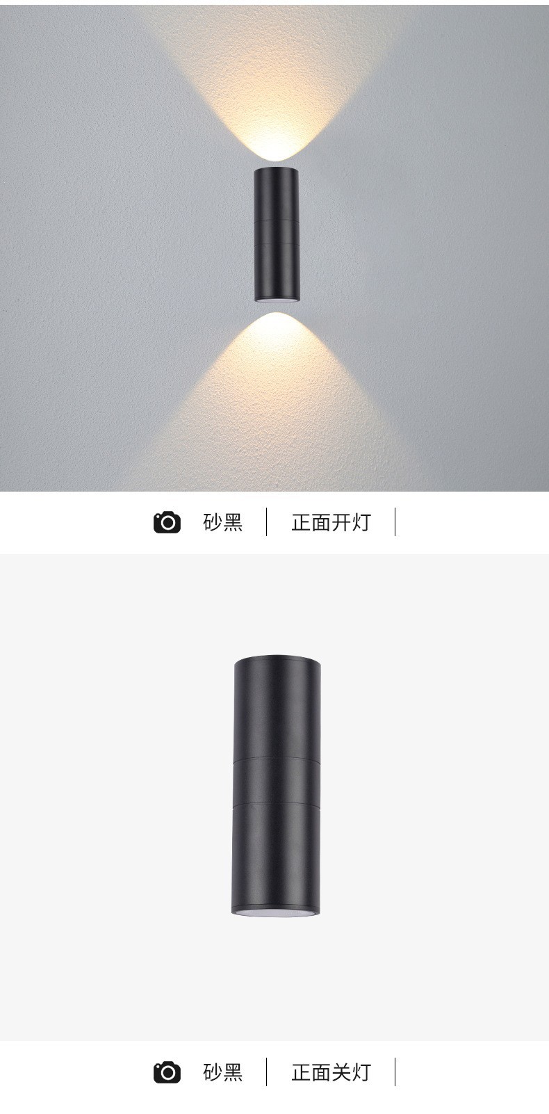 LED 야외 벽 램프 더블 헤드 단일 헤드 라운드 외부 벽 위아래로 스포트라이트 안뜰 야외 문 기둥 방수 벽 램프