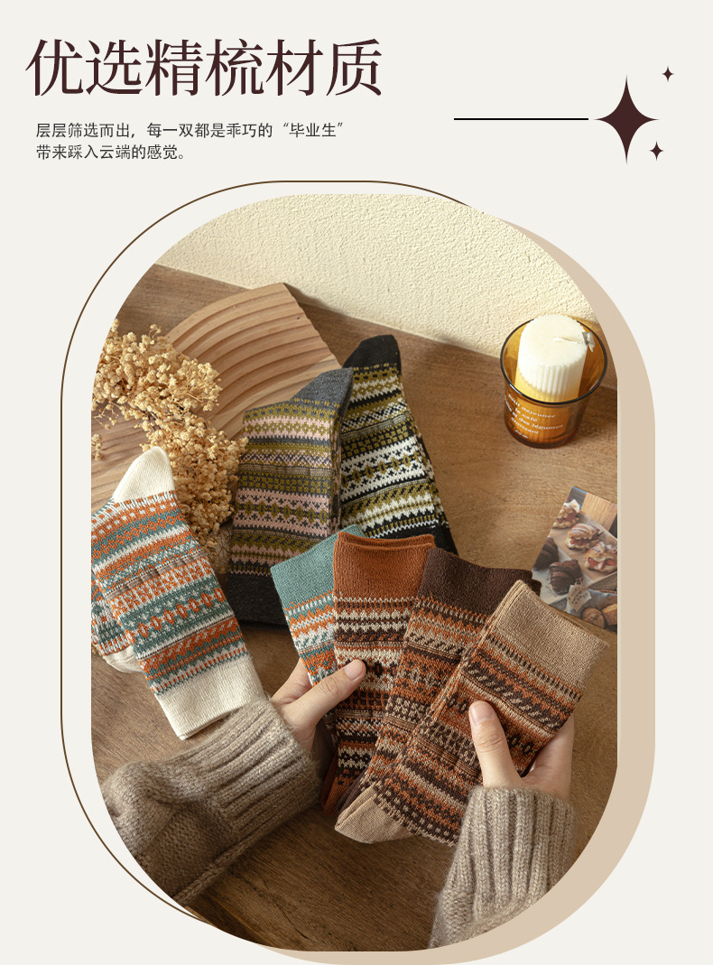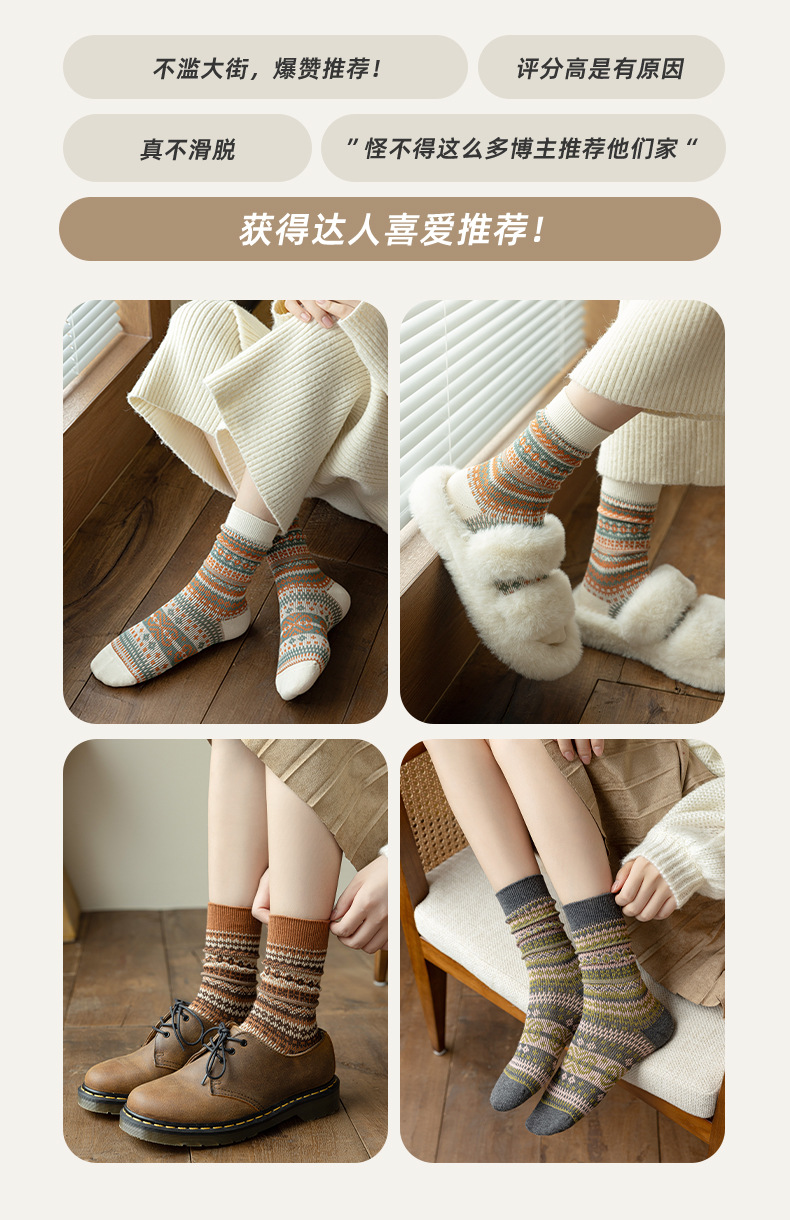 민족 스타일 양말 더블 바늘 더블 도로 여성 Maillard 스타킹 스타킹 가을 및 겨울 따뜻한 여성면 양말 도매스토어 가기
