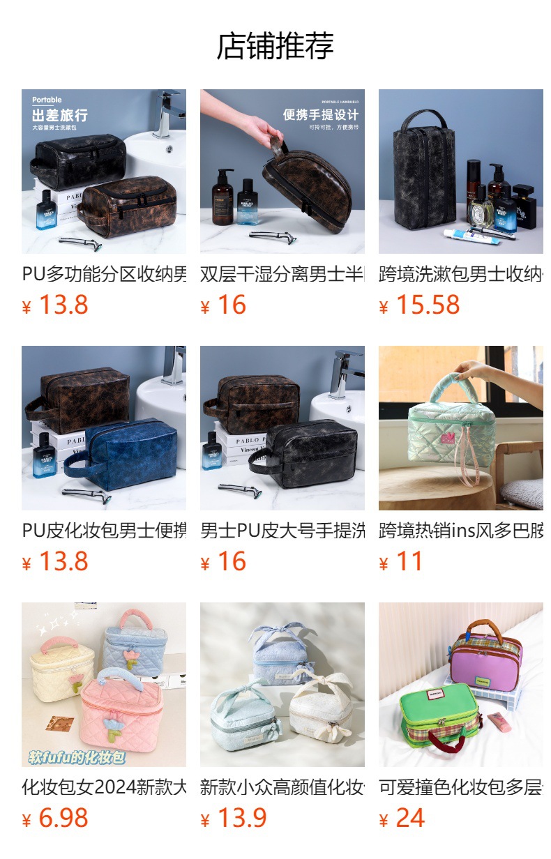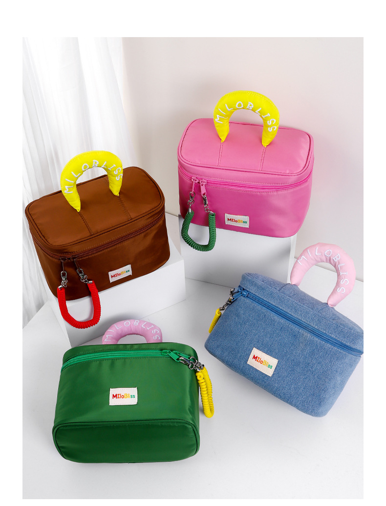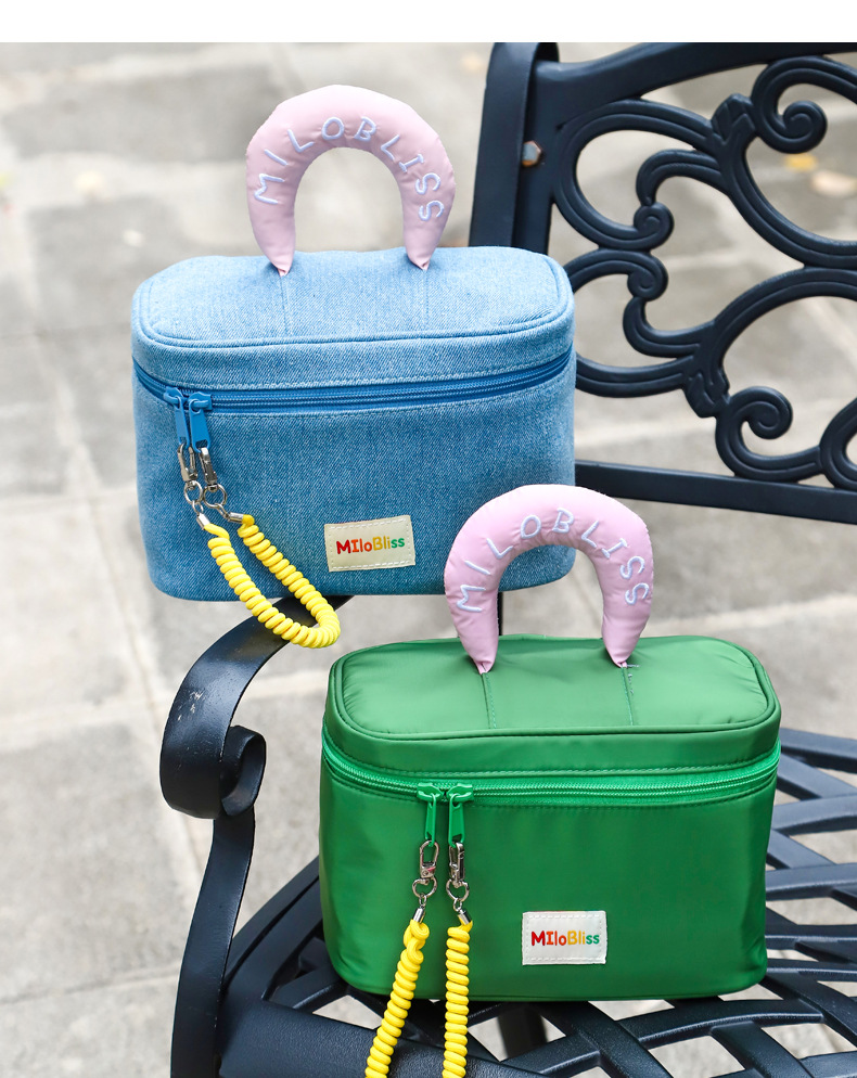 귀여운 화장품 가방, 대용량, 고급스럽고 귀여운 대비 색상 휴대용 방수 세면 용품 가방, 여성용 수납 가방, 최소 배치 수량 1개스토어 가기