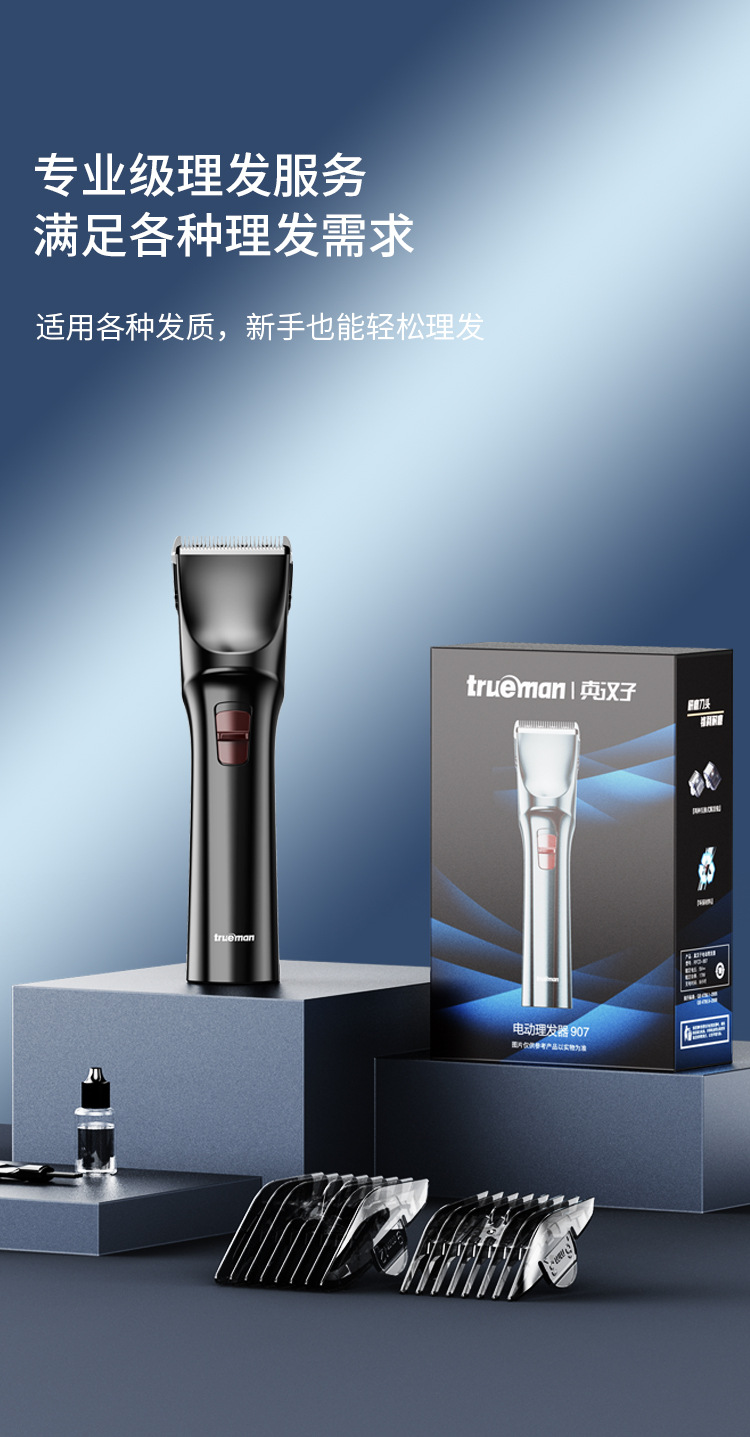 진정한 남자 전기 머리 깎기 907 전기 머리 깎기 가정용 성인 및 어린이 면도 머리 깎기 17W 칼 머리 세척 가능스토어 가기