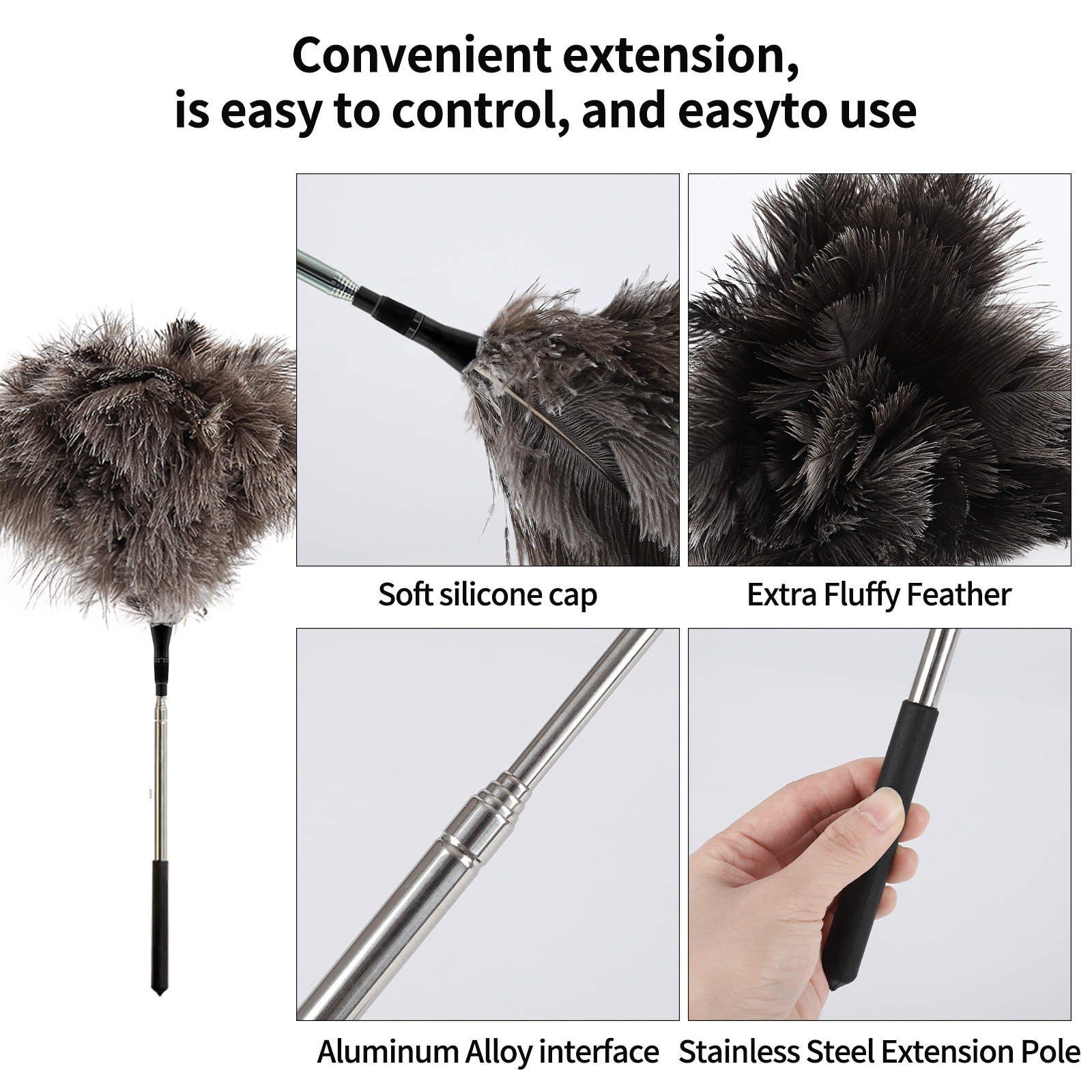 2025 새로운 개폐식 타조 깃털 살포기 100cm 길이 청소 먼지 정전기 깃털 살포기스토어 가기