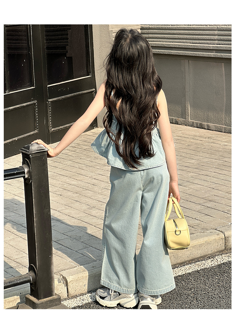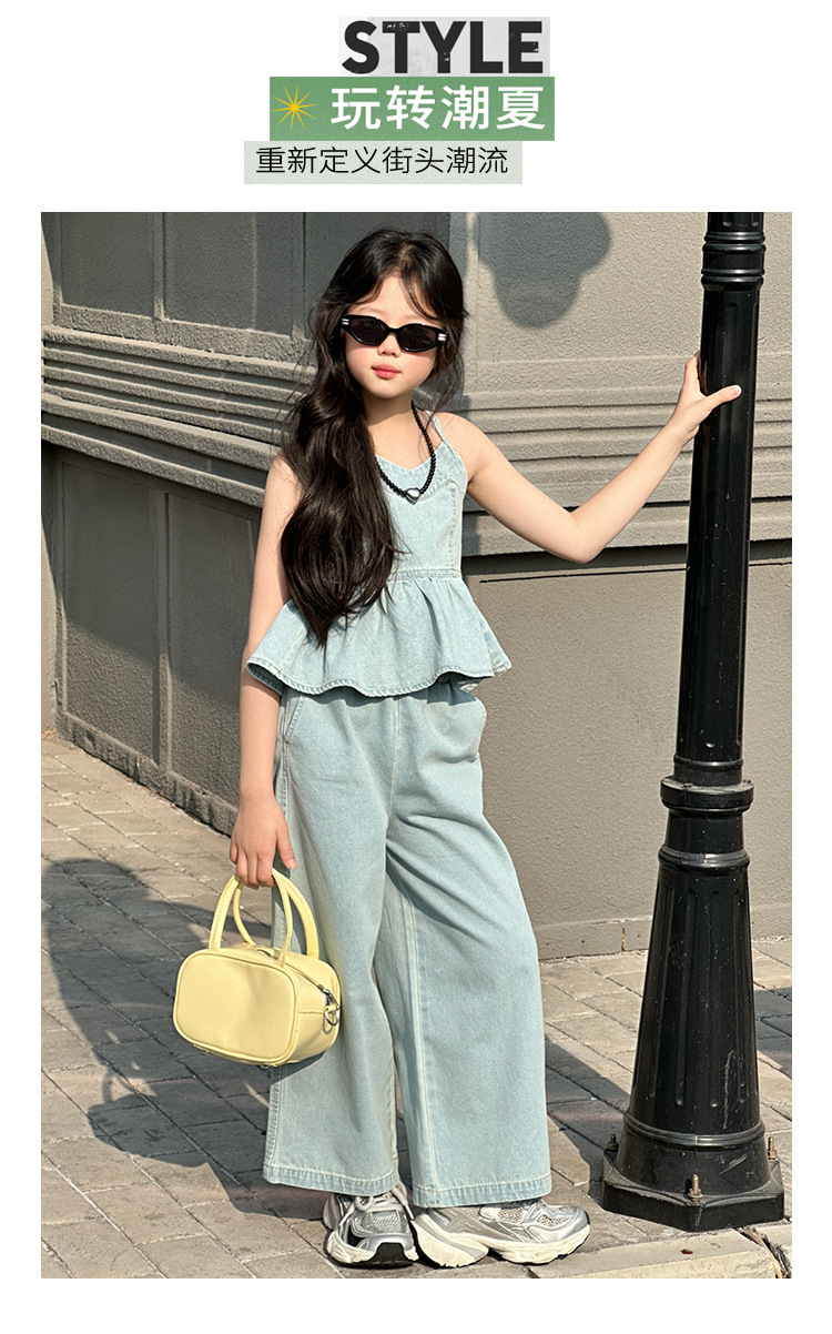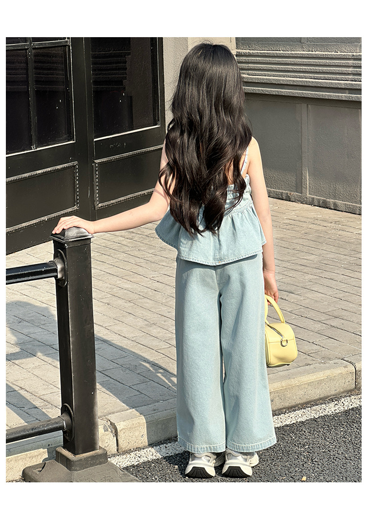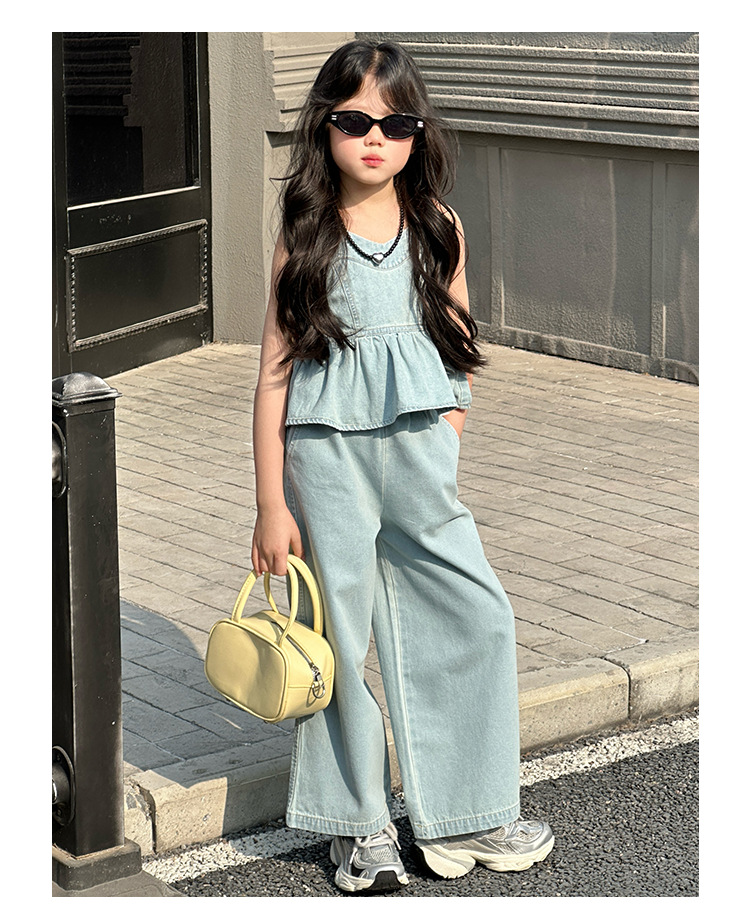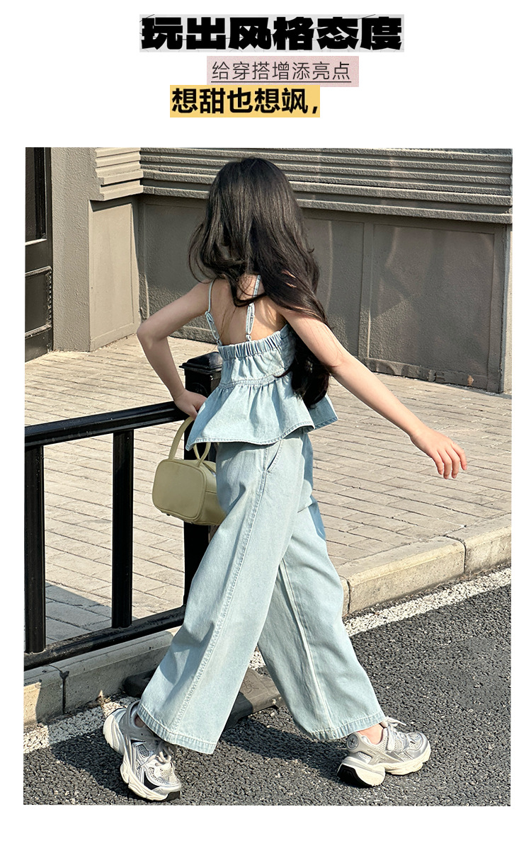 여자 카미솔 와이드 레그 바지 투피스 세트 2025 여름 새 소녀 얇은 데님 세트 한국 스타일 외국 스타일스토어 가기