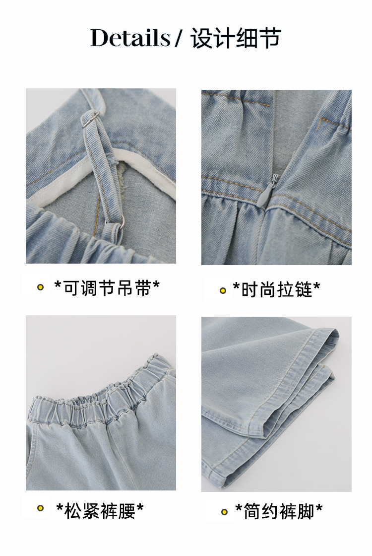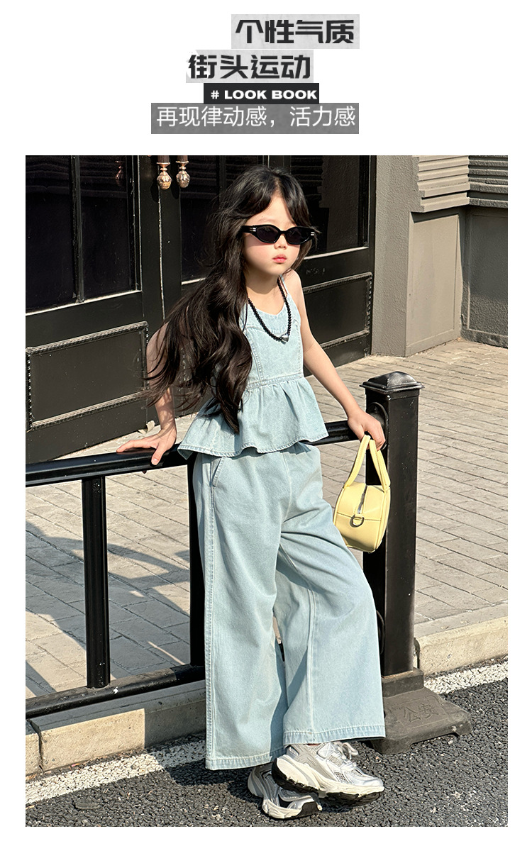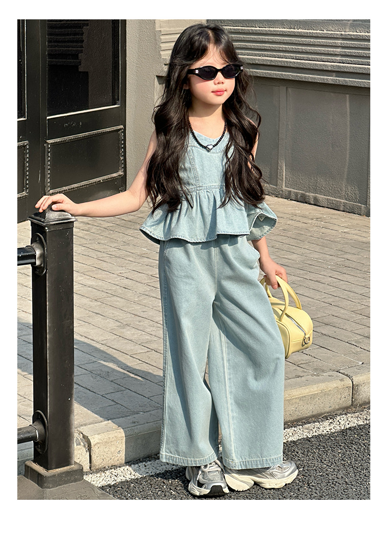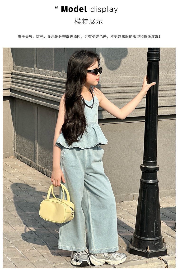 여자 카미솔 와이드 레그 바지 투피스 세트 2025 여름 새 소녀 얇은 데님 세트 한국 스타일 외국 스타일스토어 가기