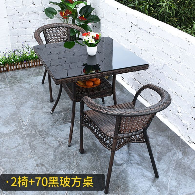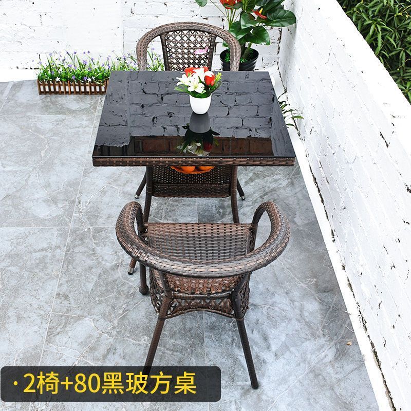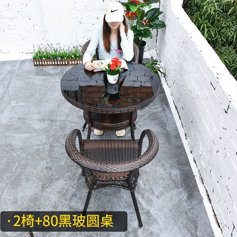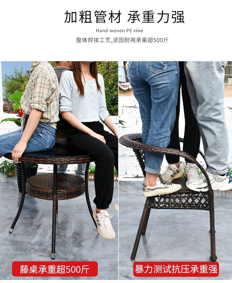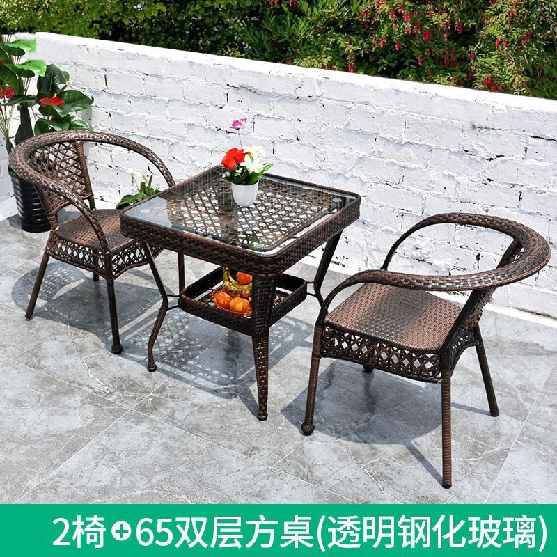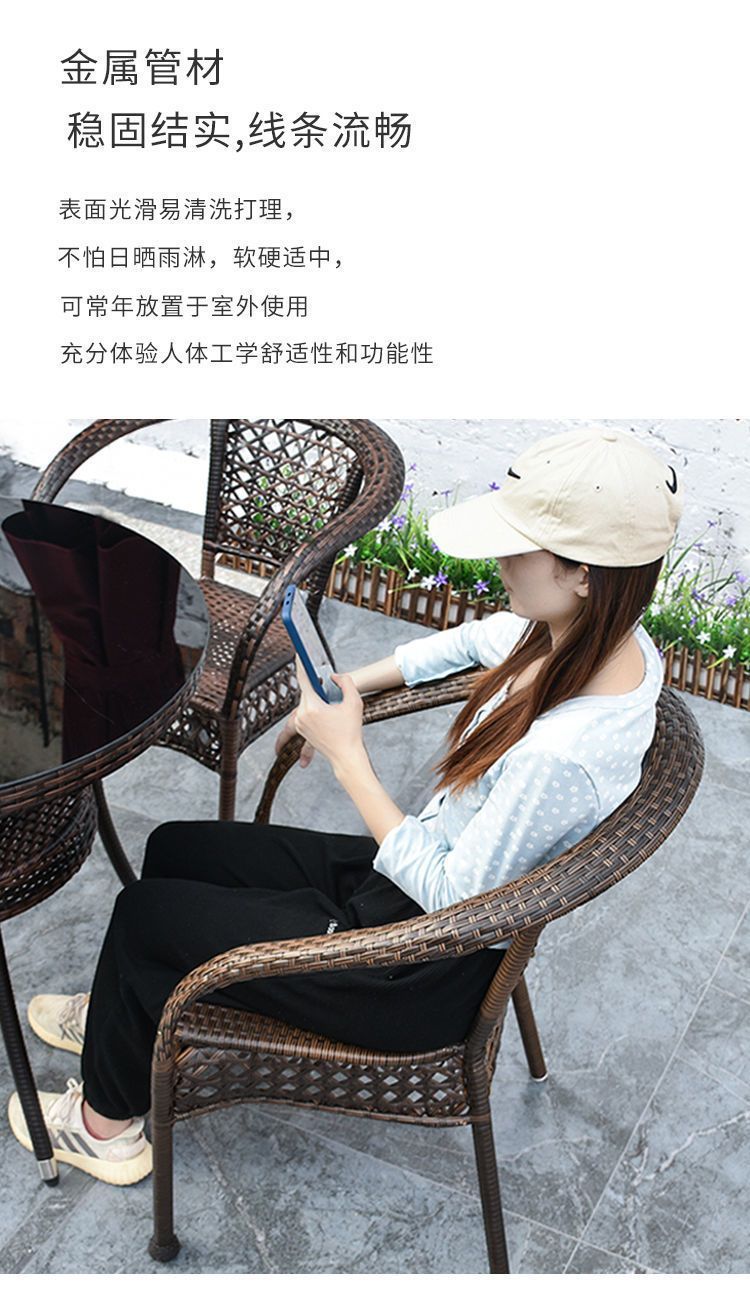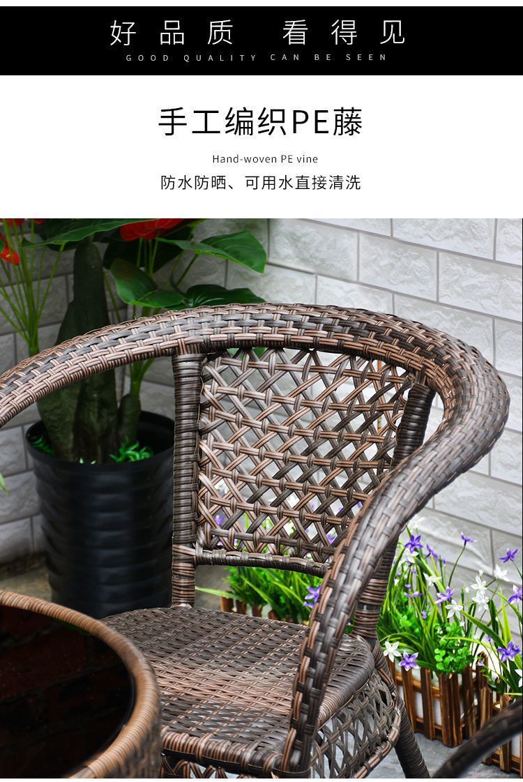 야외 발코니 레저 테이블 및 의자 등나무 의자 3 피스 세트 파티오 정원 테라스 의자 커피 테이블 모조 등나무 짠 등받이 의자스토어 가기