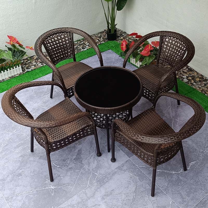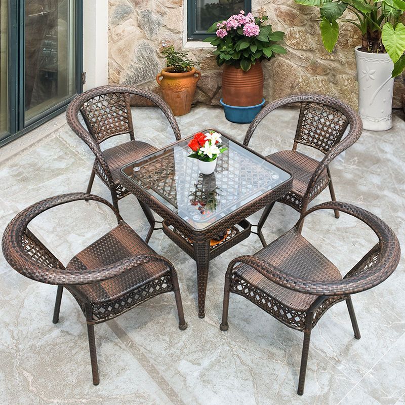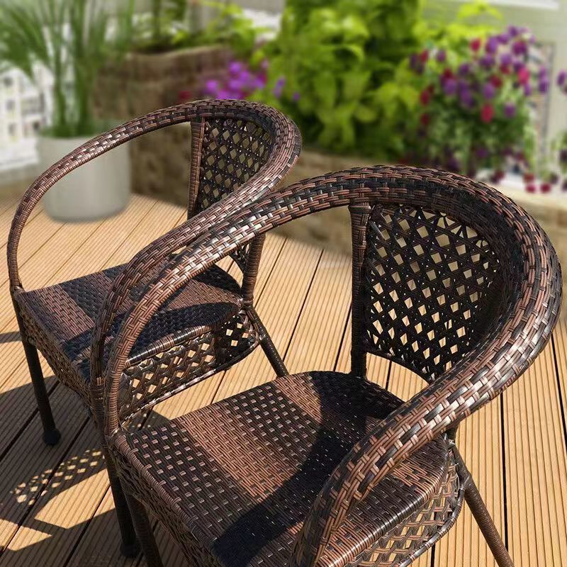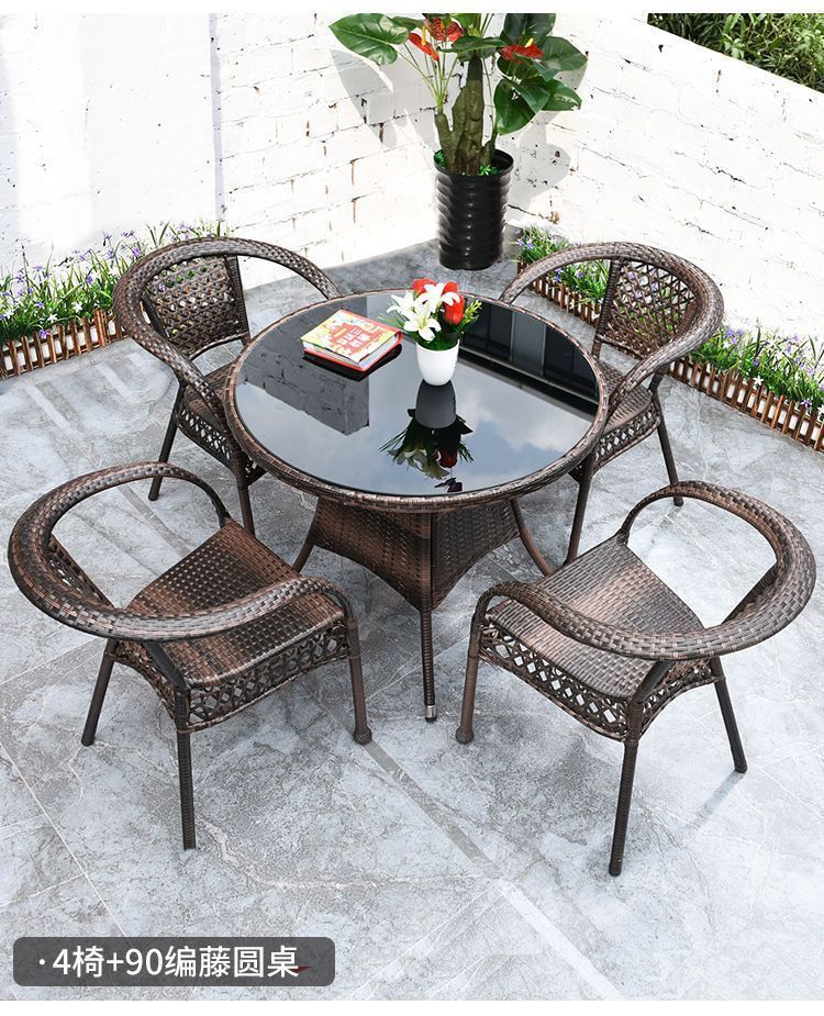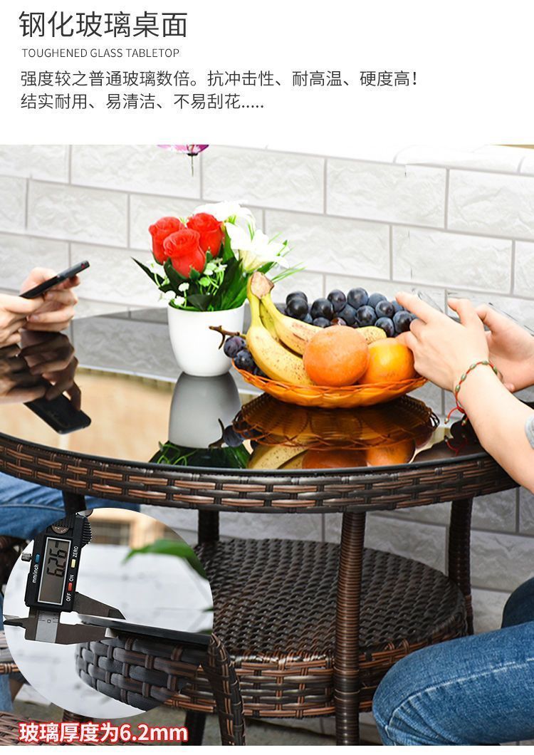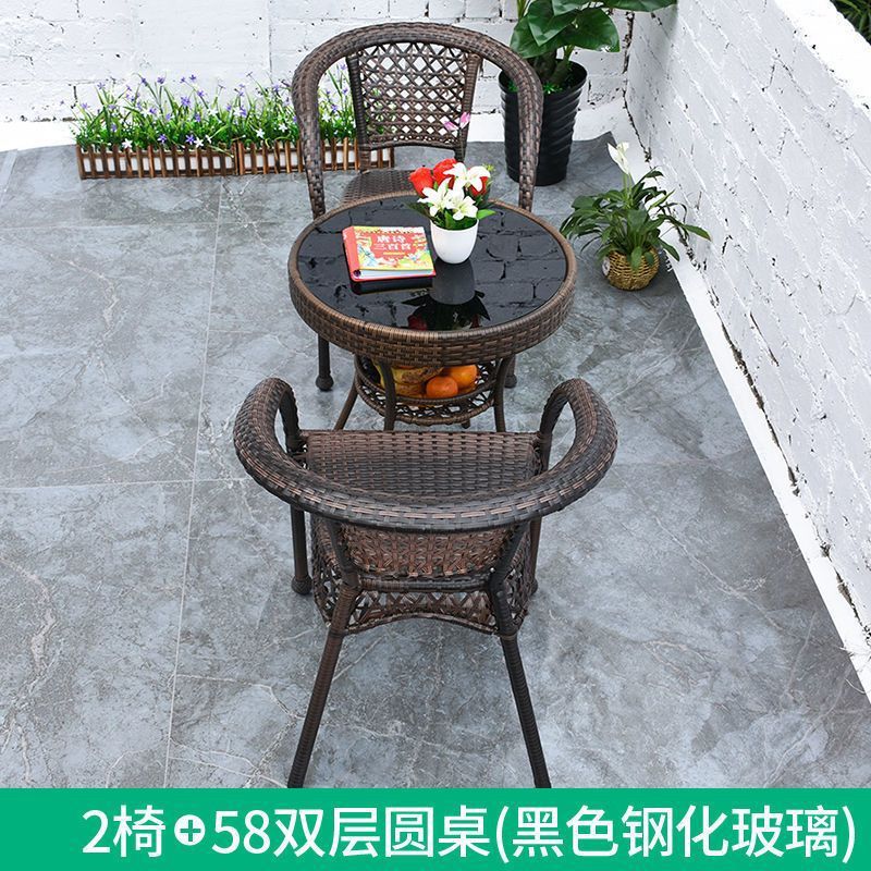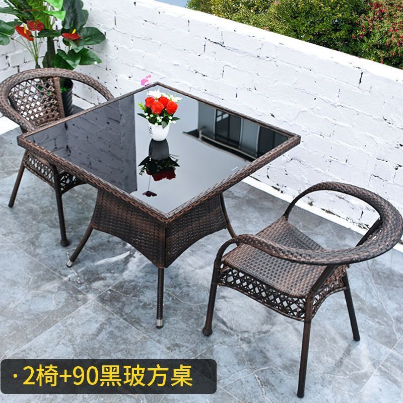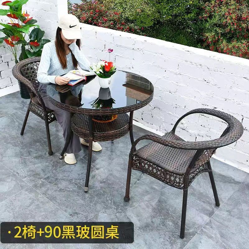 야외 발코니 레저 테이블 및 의자 등나무 의자 3 피스 세트 파티오 정원 테라스 의자 커피 테이블 모조 등나무 짠 등받이 의자스토어 가기