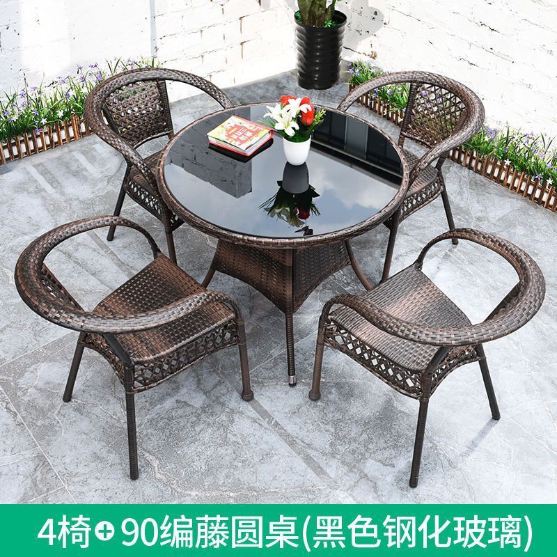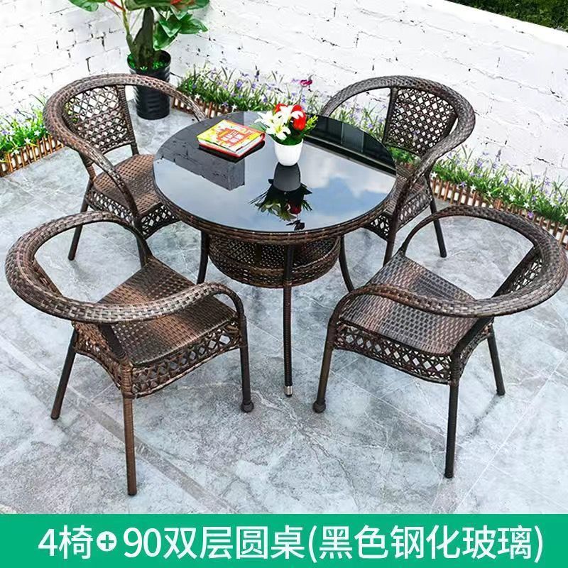 • 업그레이드된 의자 4개 + 더블 레이어 원형 테이블 90개 [무료 쿠션]