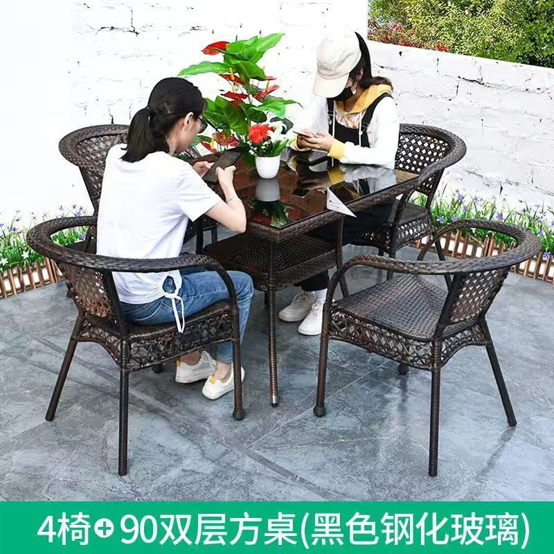 • 업그레이드된 의자 4개 + 더블 레이어 사각 테이블 90개 [무료 쿠션]