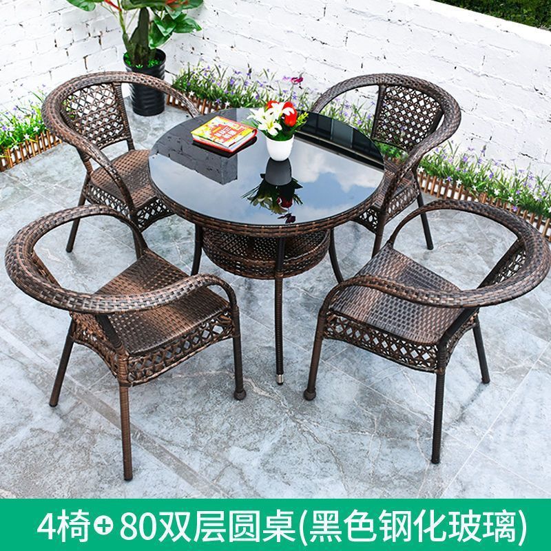 • 업그레이드된 의자 4개 + 더블 레이어 원형 테이블 80개 [무료 쿠션]