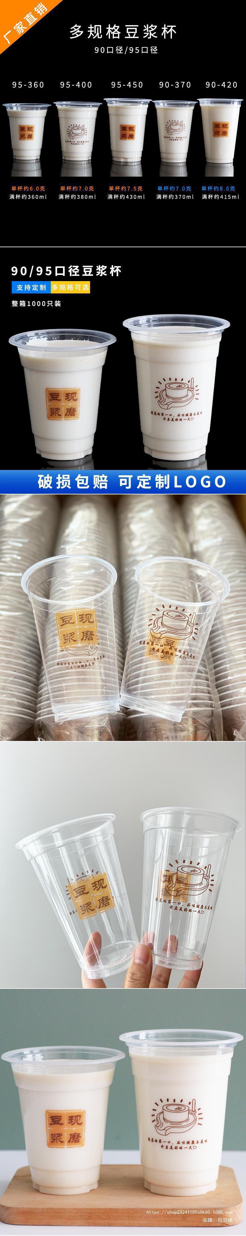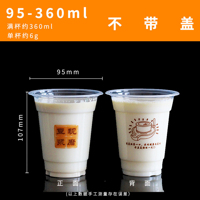 식품 등급 95 구경 360 일회용 플라스틱 컵 두유 컵 아침 죽 컵 두껍게 90 구경 밀봉 가능스토어 가기