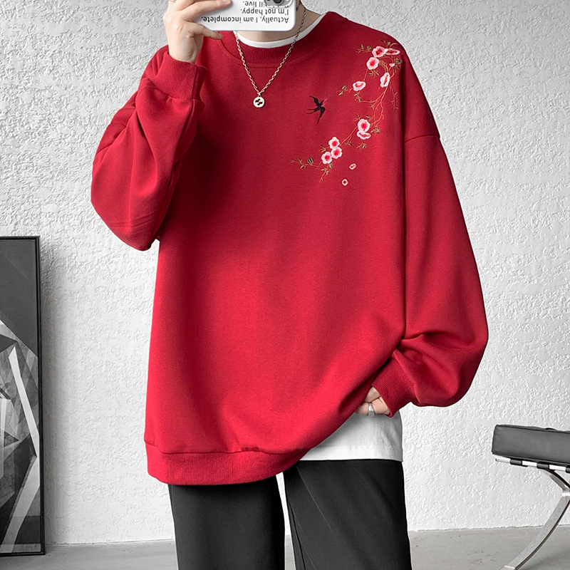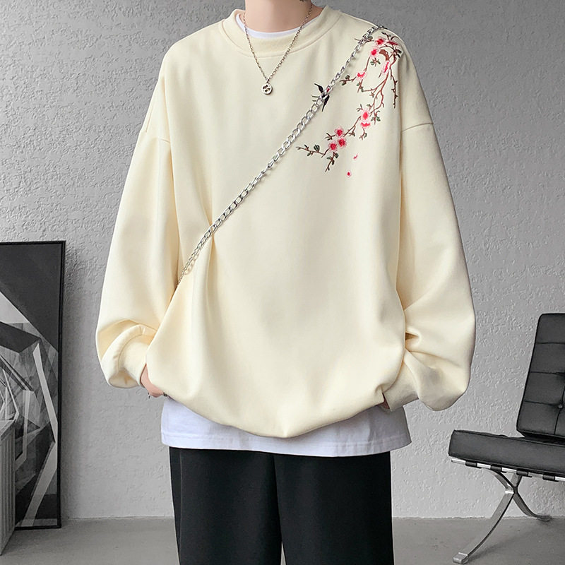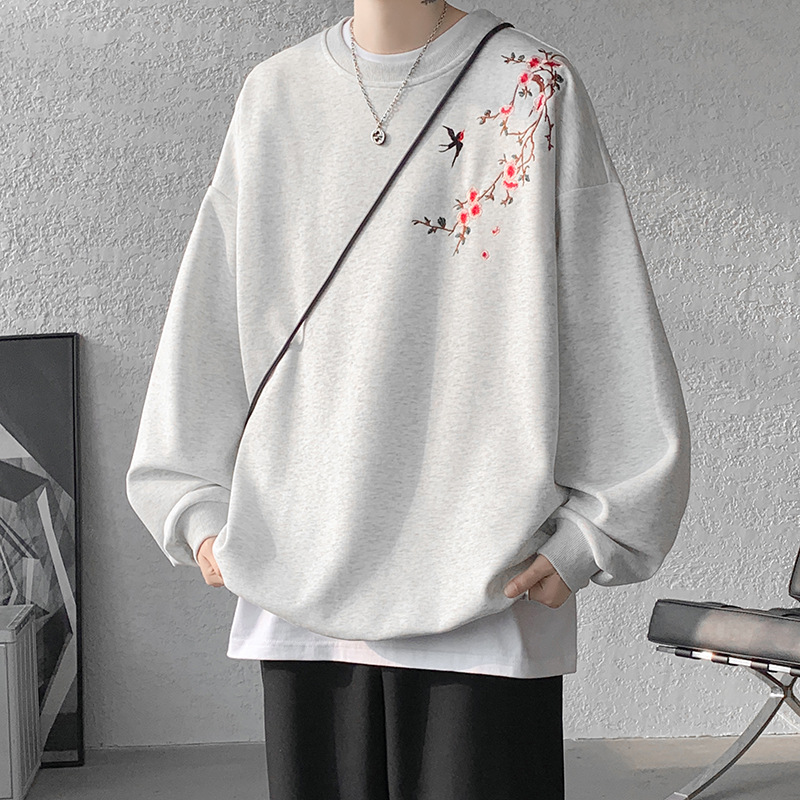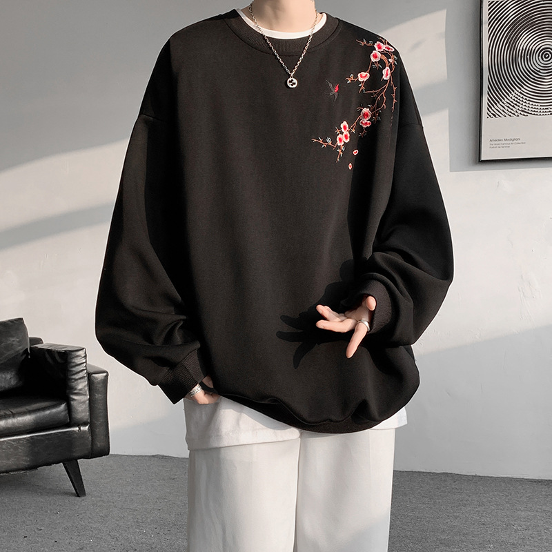 새로운 중국 자수 승무원 풀오버 땀 남자 봄 2025 새로운 중국 스타일 긴 소매 셔츠 십대 남성 의류스토어 가기