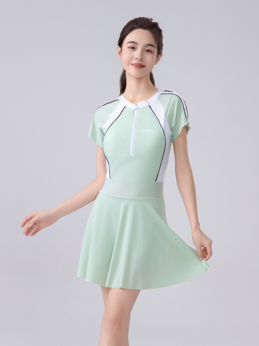 수영복 여성의 여름 새로운 긴팔 선 스크린 대형 스커트 살포 보수적 인 통통녀 복부를 덮는 슬리밍 여성 수영복