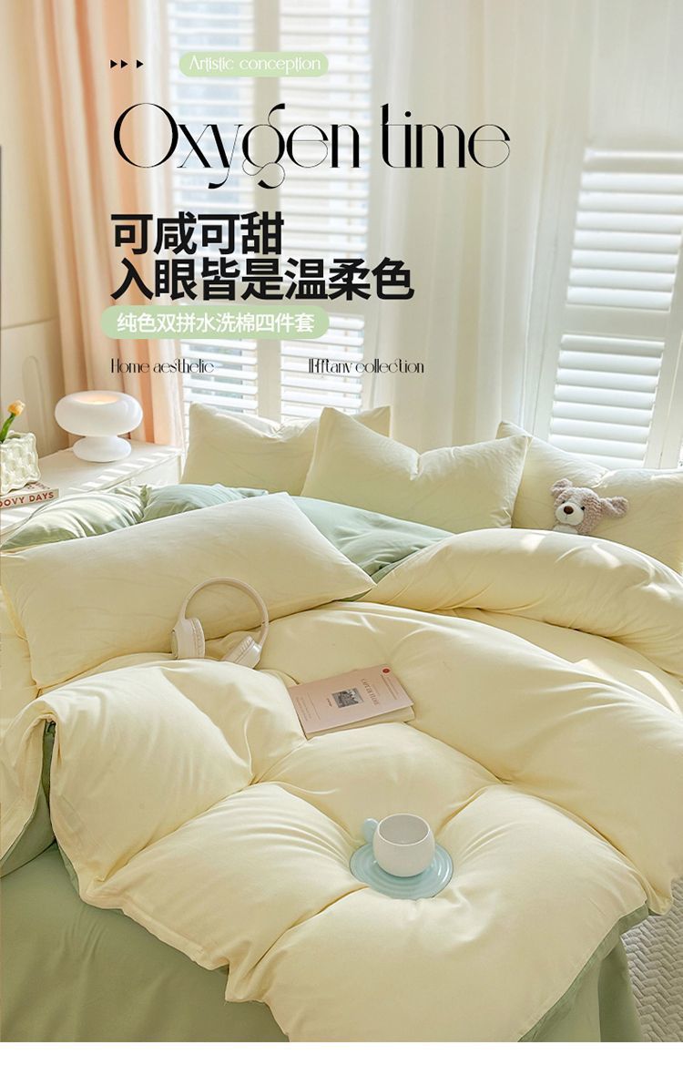 사우스 라이프 솔리드 컬러 퀼트 커버 싱글 피스 150x200x230 세척 코튼 퀼트 커버 싱글 학생 기숙사 4 피스 세트스토어 가기