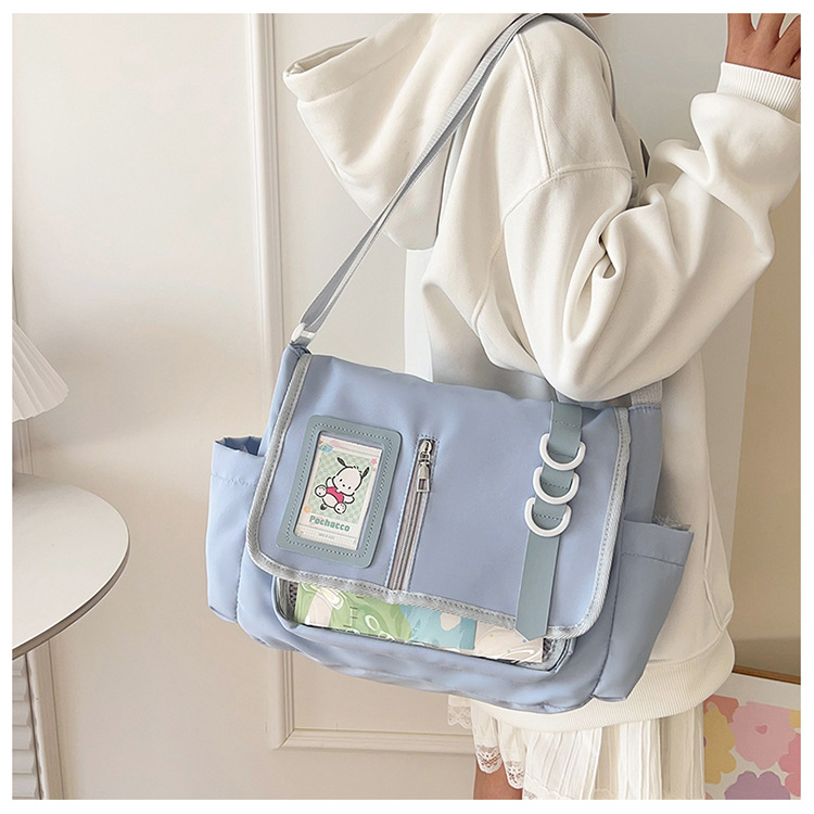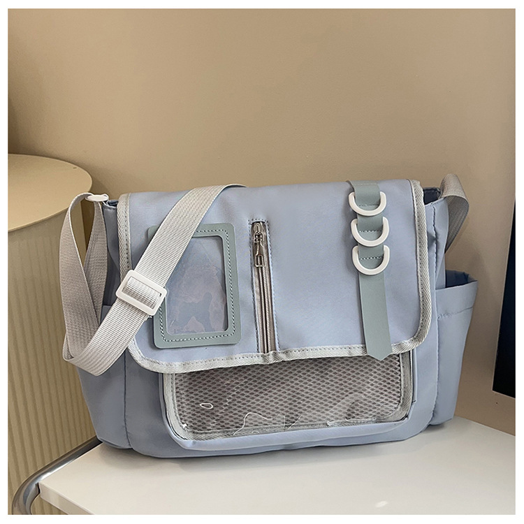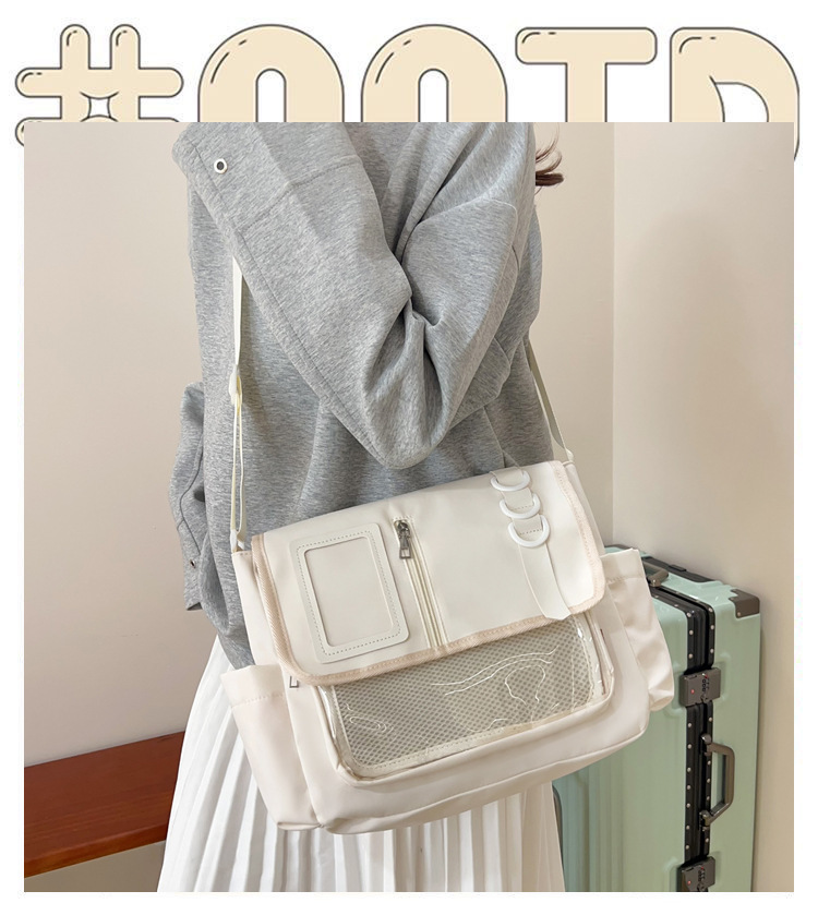 일본식 나일론 천 핸드백 대학 스타일 디자인 캐주얼 스티칭 어깨 가방 경량 투명 통증 가방 트렌디 한 크로스 바디 백스토어 가기