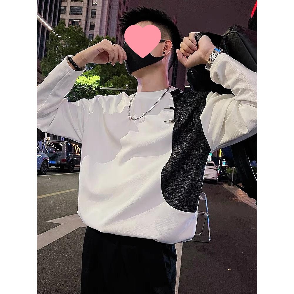 봄과 가을 스웨트셔츠 남자 2025 봄과 가을 한국 스타일 새로운 라운드 넥 루즈 탑 홍콩 스타일 트렌디 한 옷