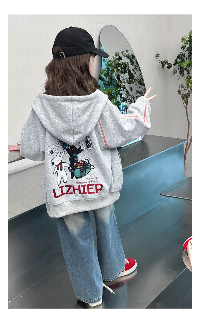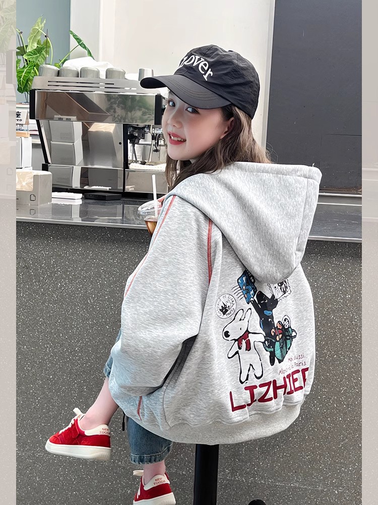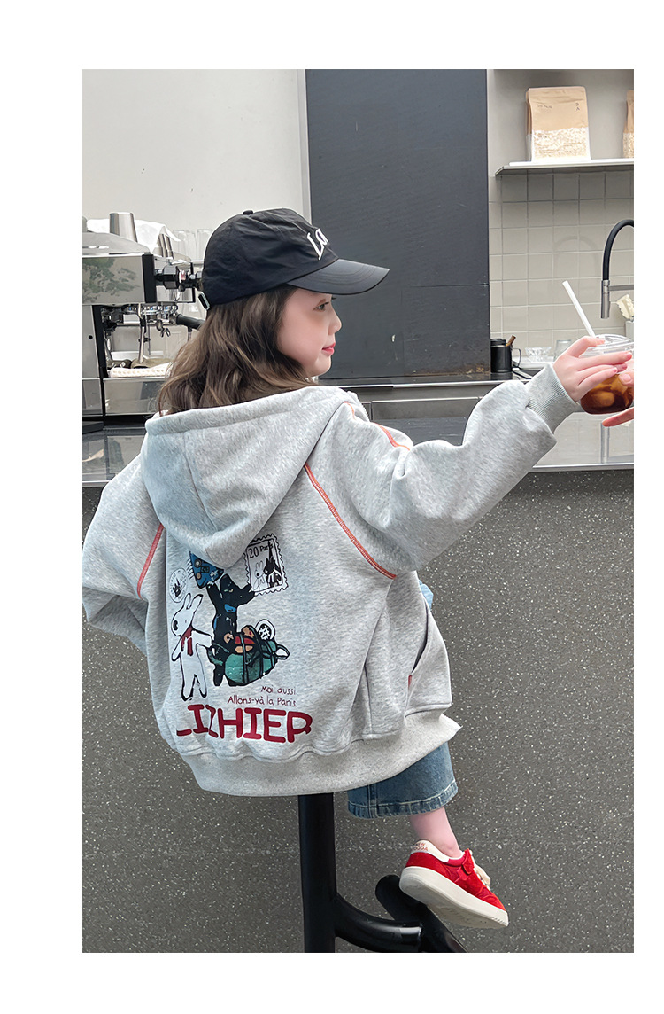 소녀 스포츠 코트 큰 소년의 봄과 가을 서양 스타일 카디건 스웨터 어린이 후드 탑 소녀의 2025 봄과 가을 새로운 스타일스토어 가기