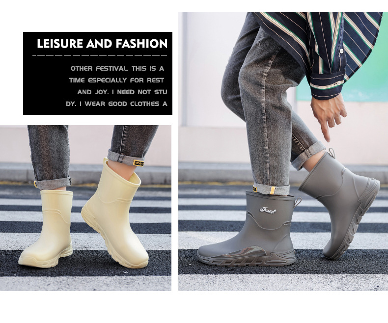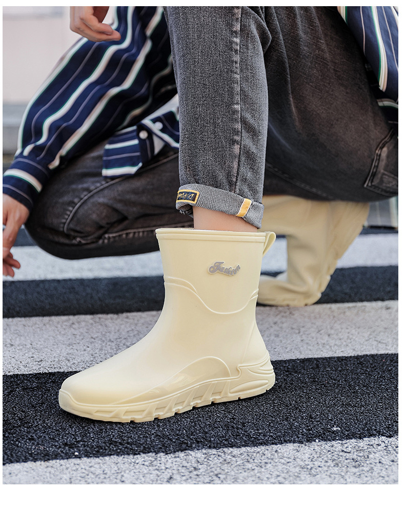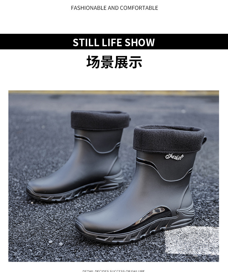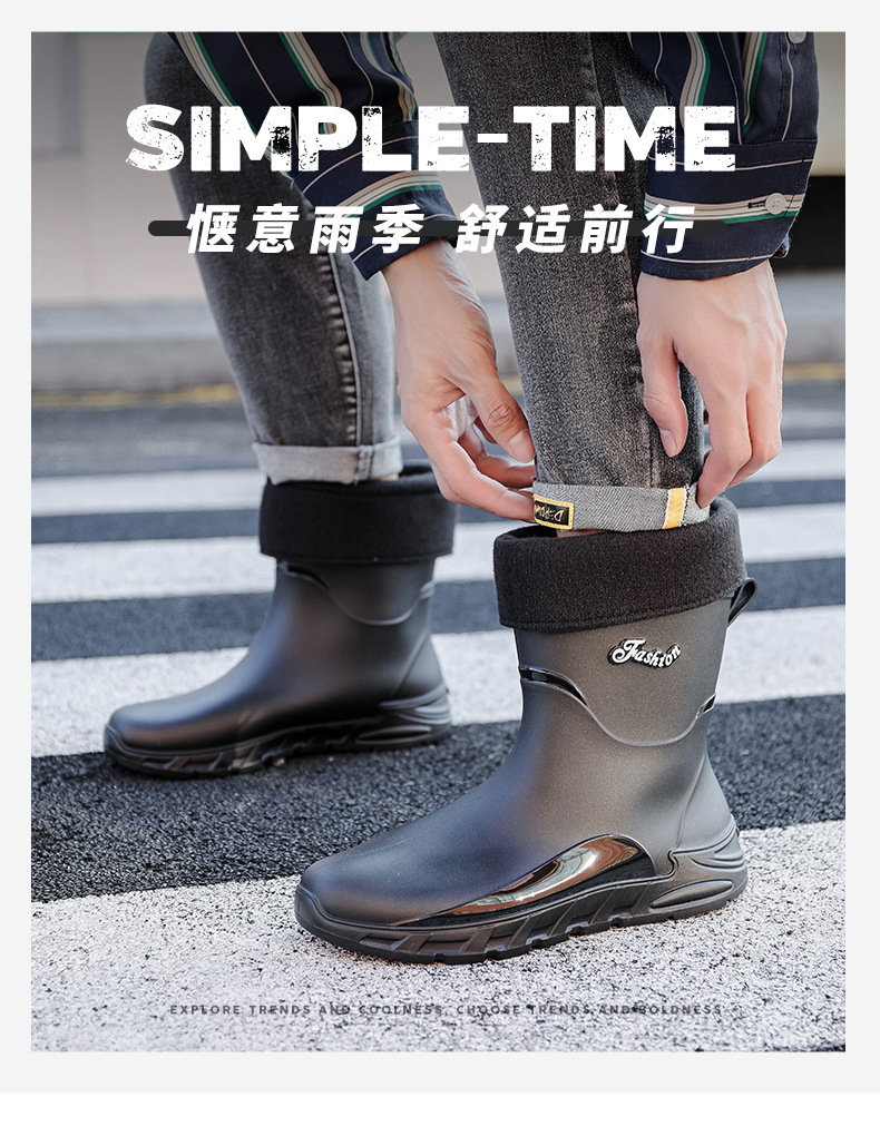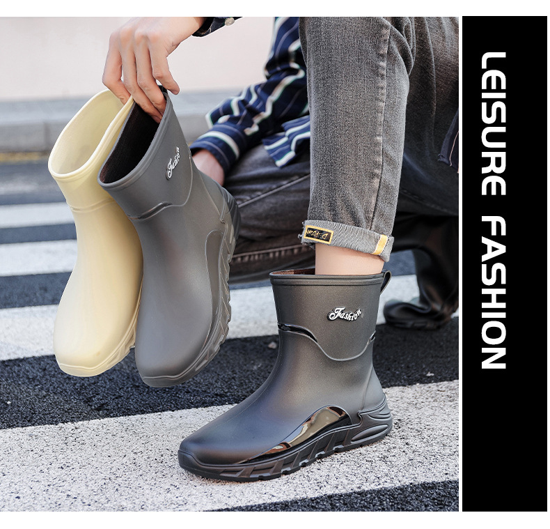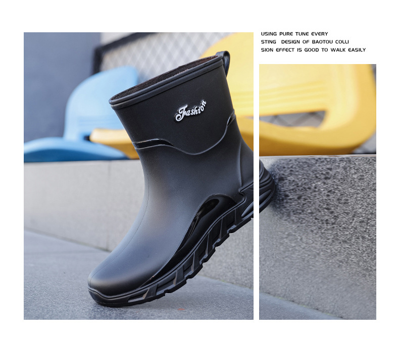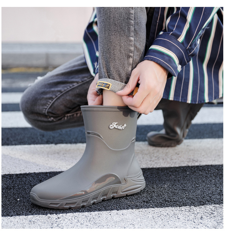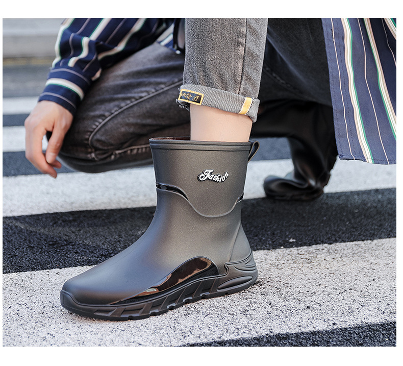 패션 중간 배럴 비 신발 남성용 미끄럼 방지 방수 코르셋 장화 가을과 겨울 면화 세차 작업 고무 신발 낚시 물 신발스토어 가기