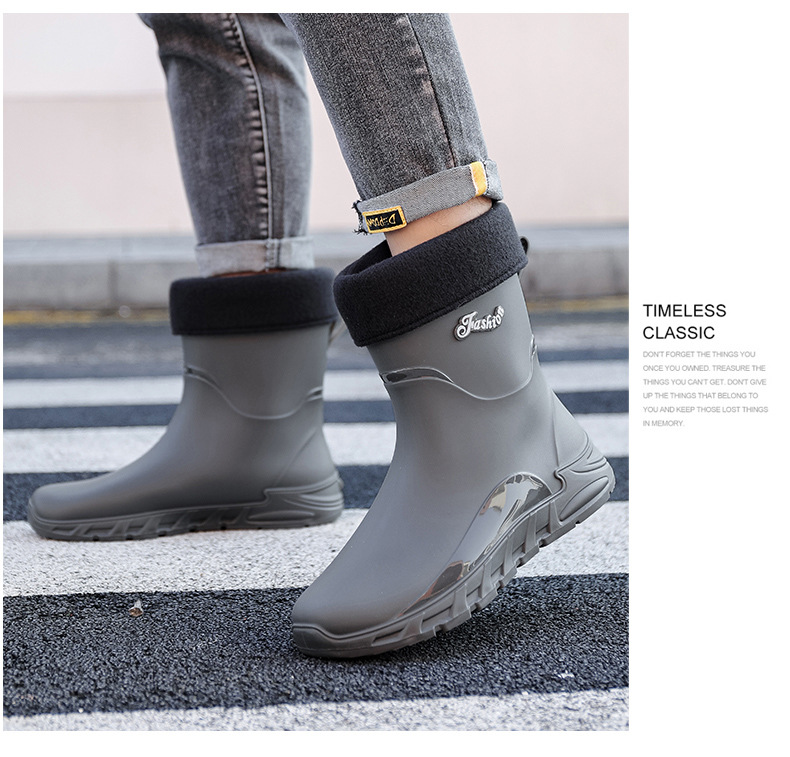 패션 중간 배럴 비 신발 남성용 미끄럼 방지 방수 코르셋 장화 가을과 겨울 면화 세차 작업 고무 신발 낚시 물 신발