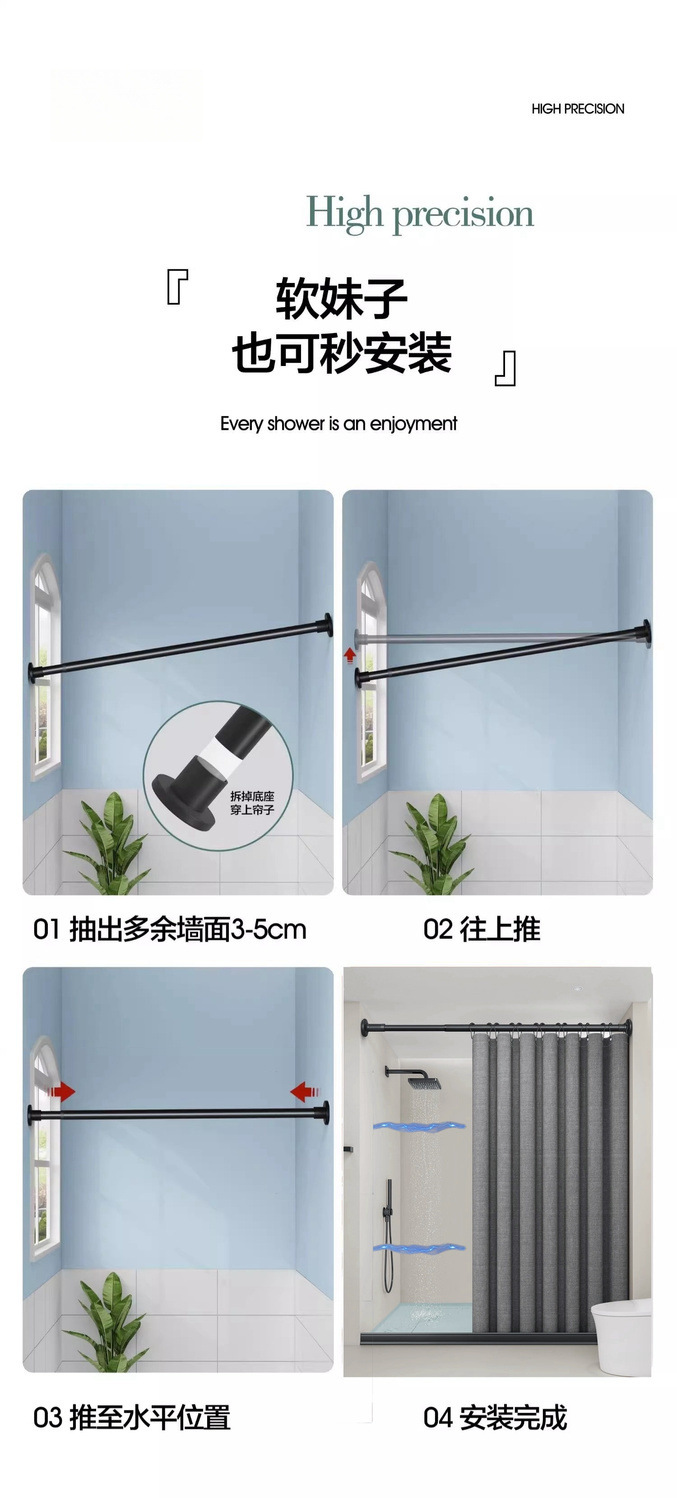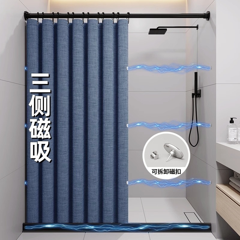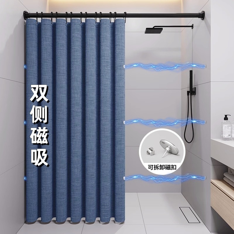욕실 샤워 커튼 욕실 교수형 커튼 건조하고 젖은 분리 파티션 커튼 세트 구멍이없는 보이지 않는 접이식 방수 헝겊 고급