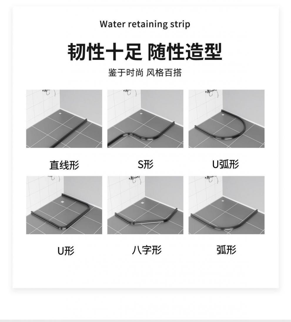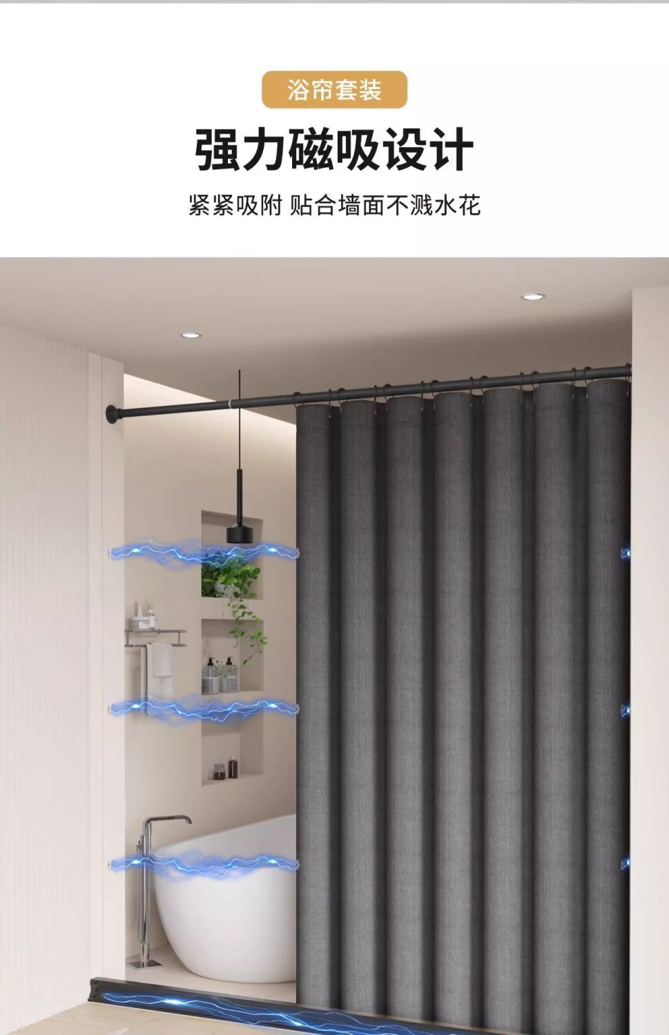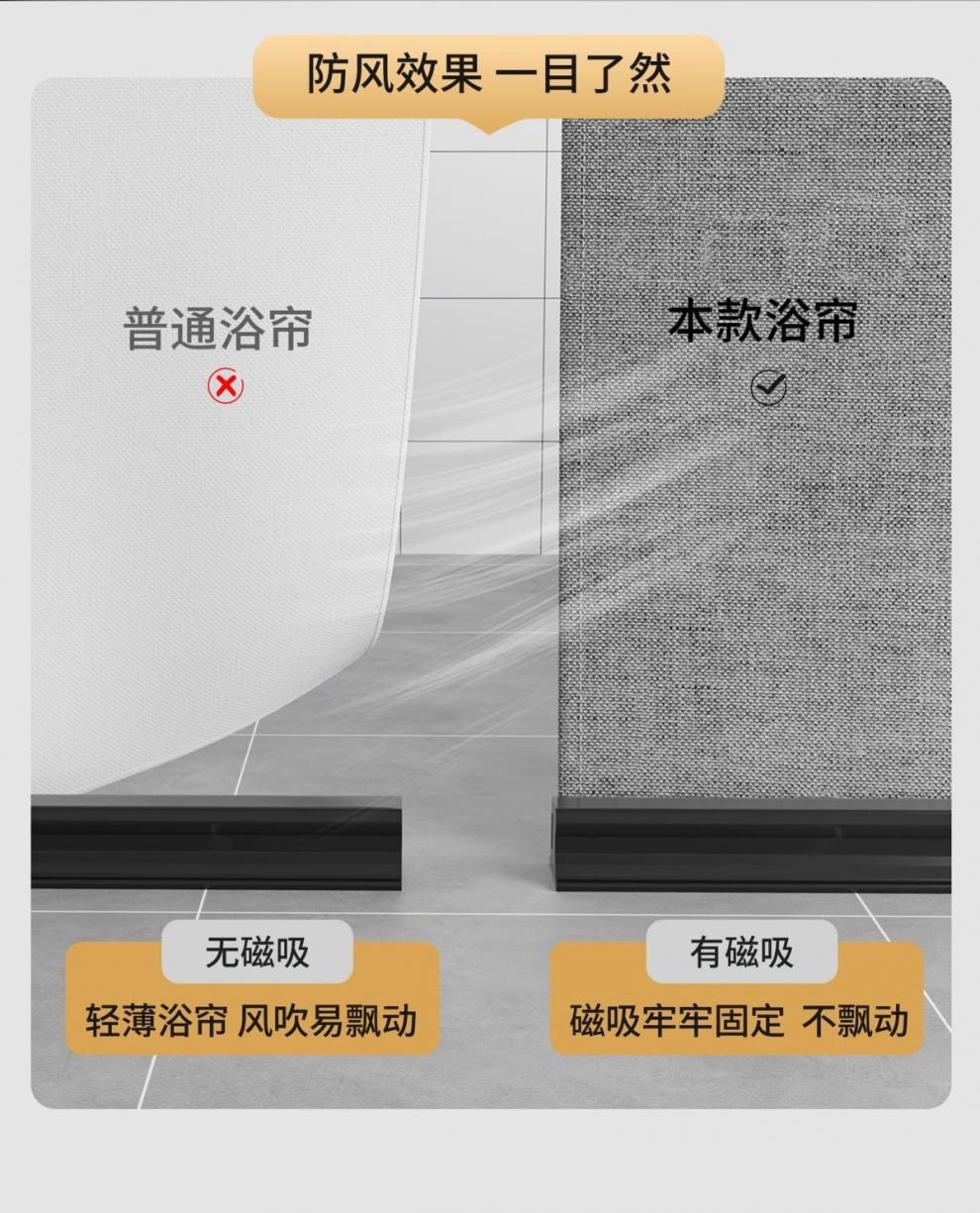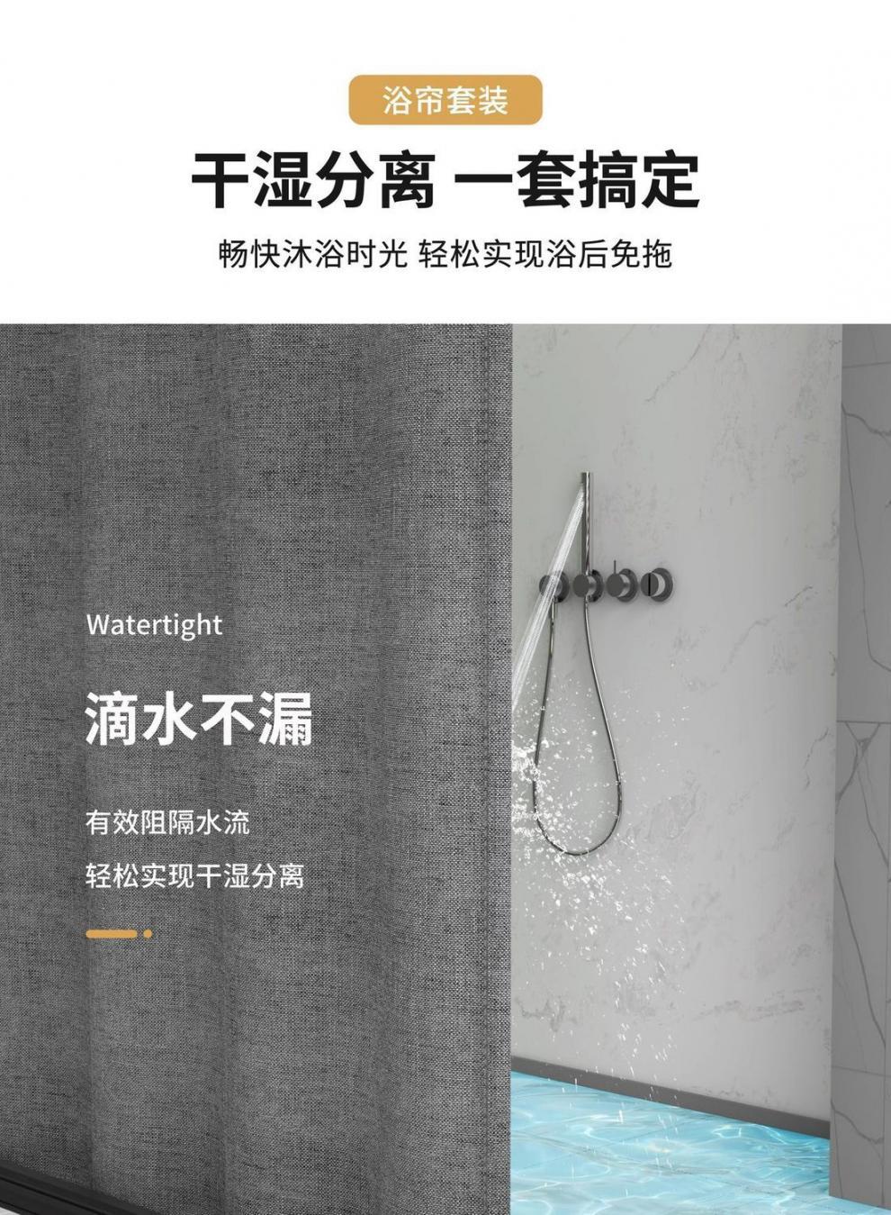 • [3면 자석흡입] 회색 샤워커튼 + 검정색 막대 + 검정색 물받이 스트립