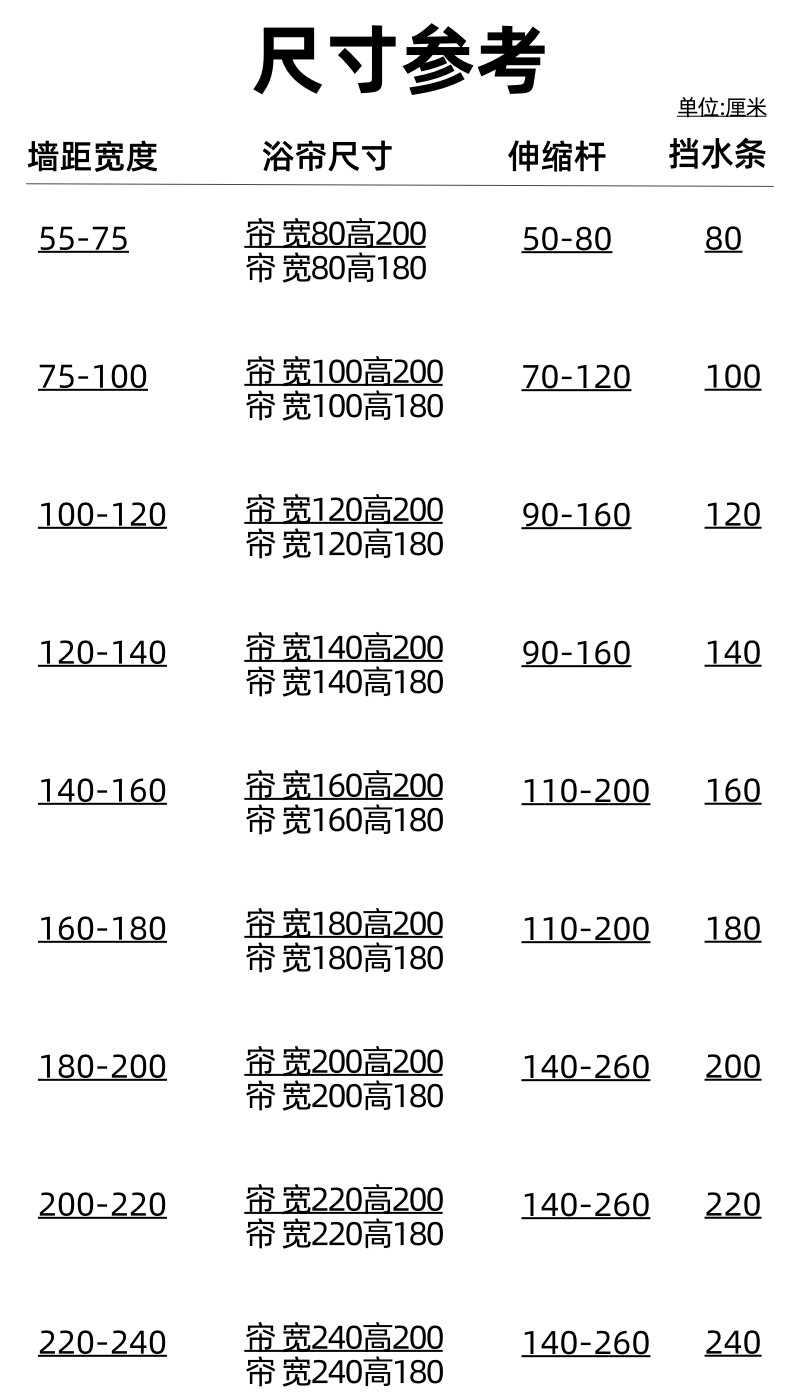 • 벽 거리 55-75, 커튼 폭 80, 높이 180