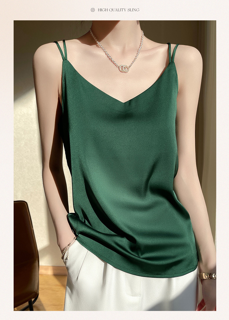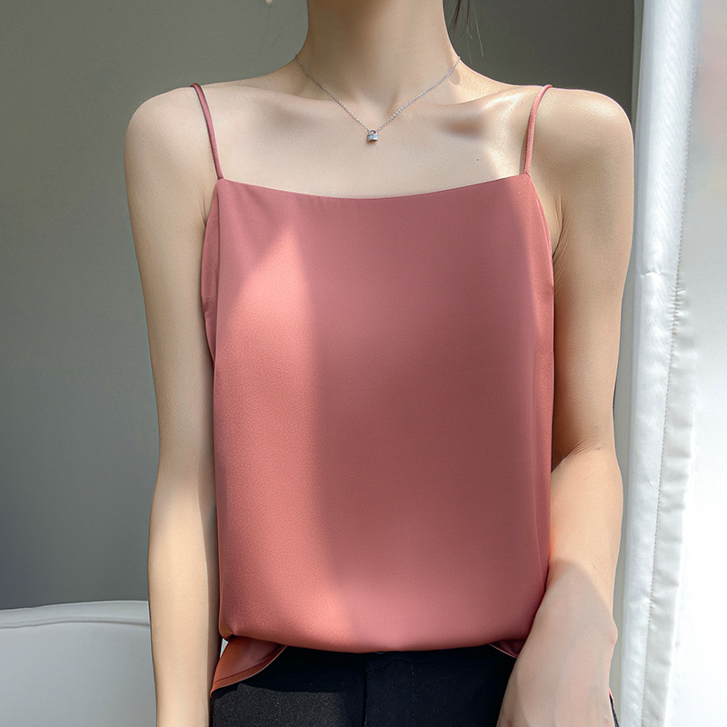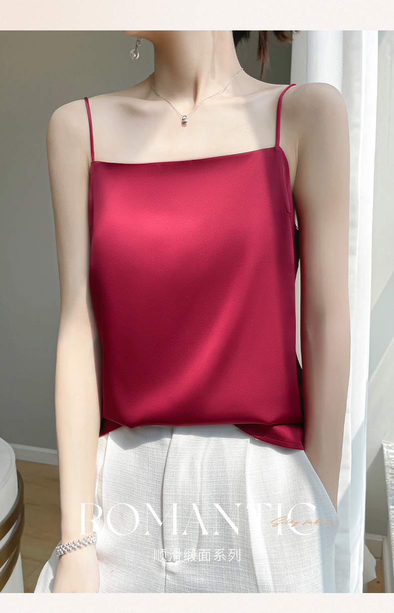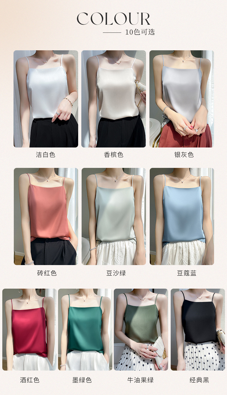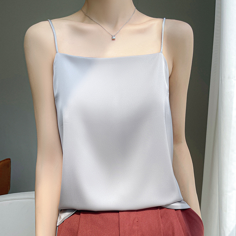 2025 년 여름 실크 카미 솔 여성 내부 아세트산 탑 섹시 베이스 셔츠 여름 아우터 세트스토어 가기