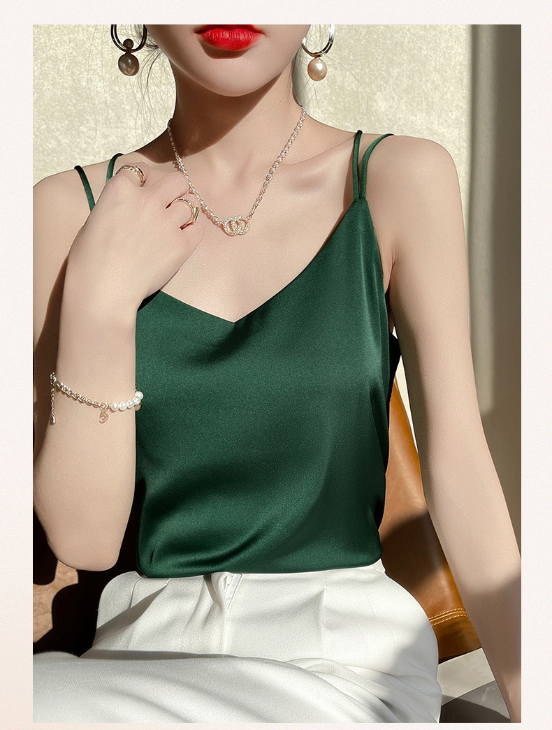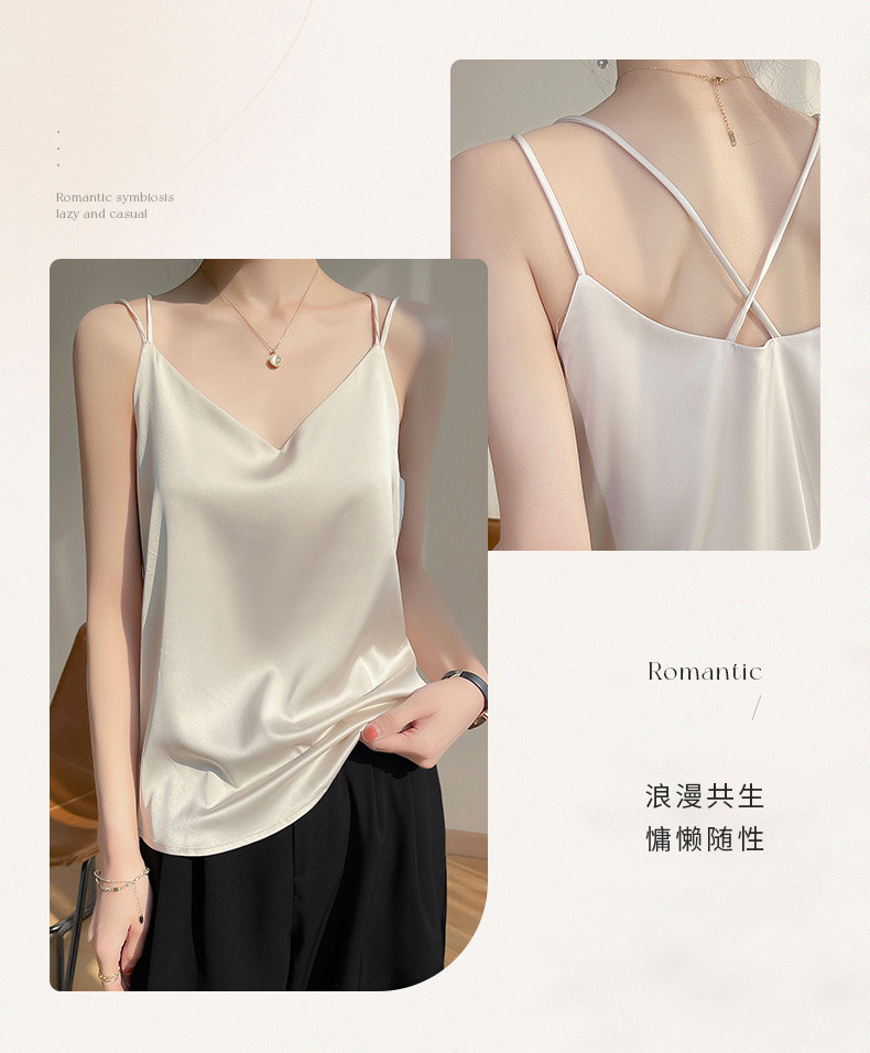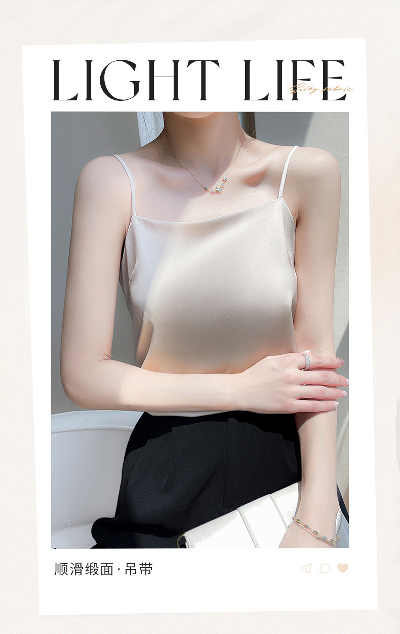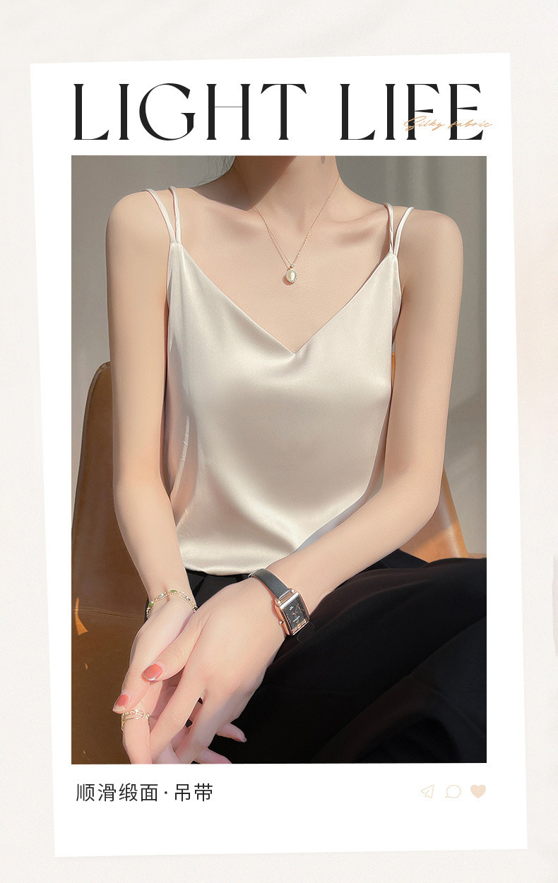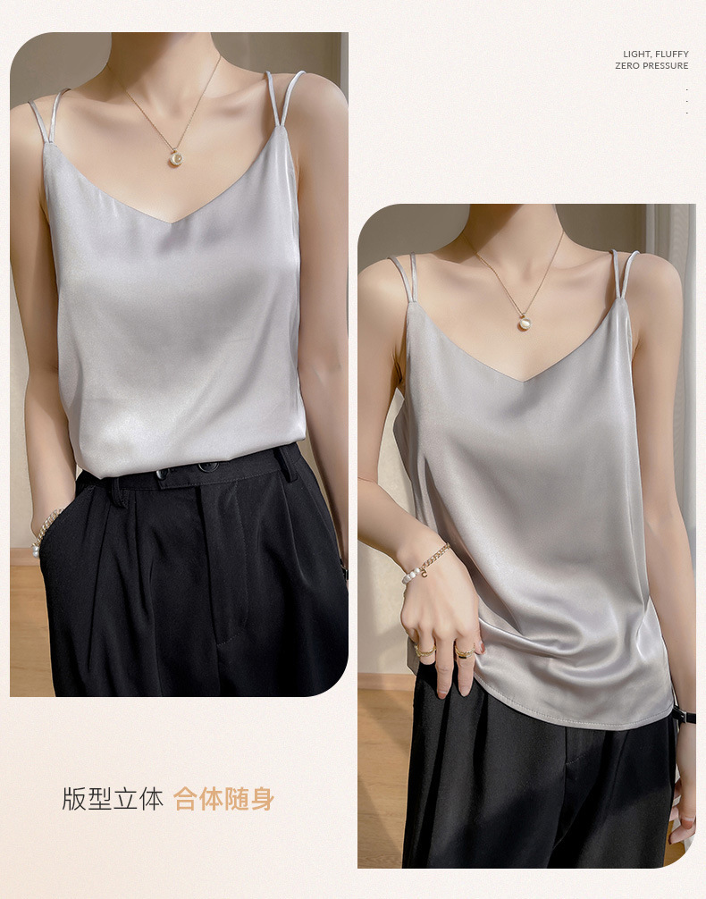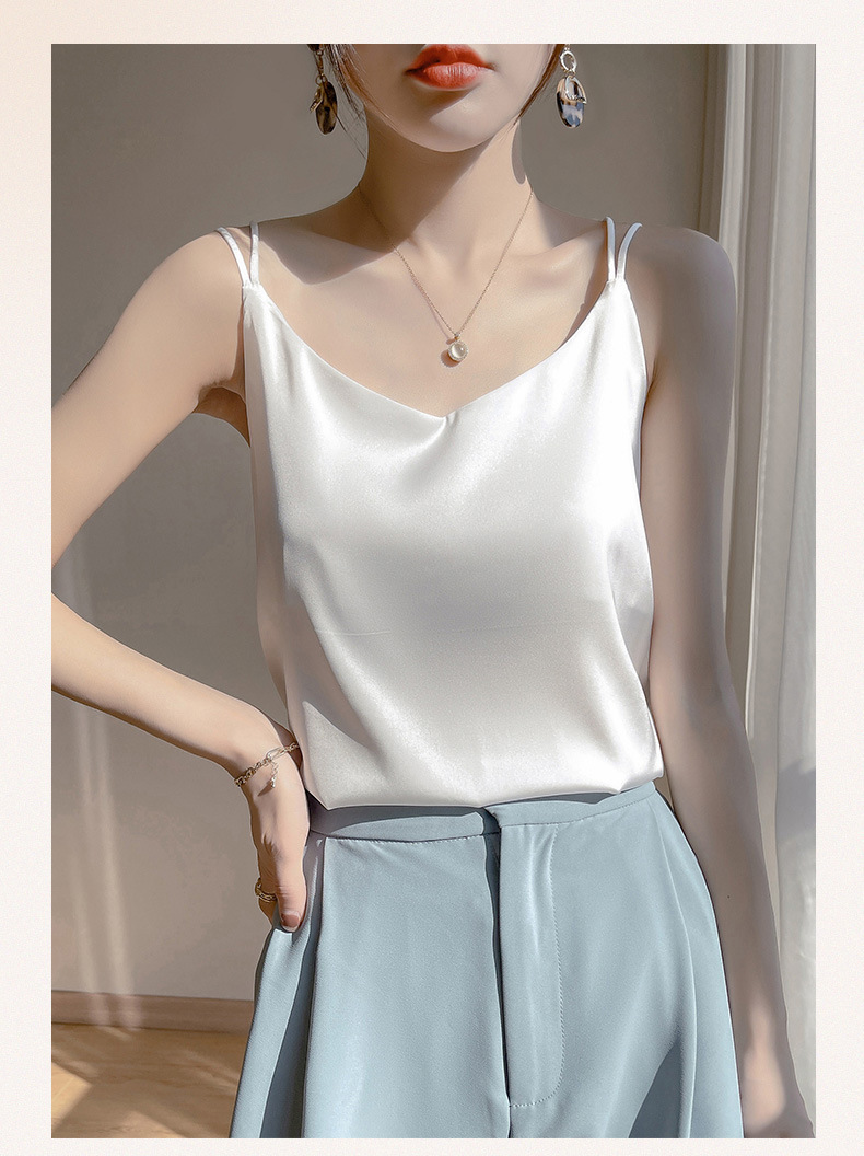 2025 년 여름 실크 카미 솔 여성 내부 아세트산 탑 섹시 베이스 셔츠 여름 아우터 세트스토어 가기