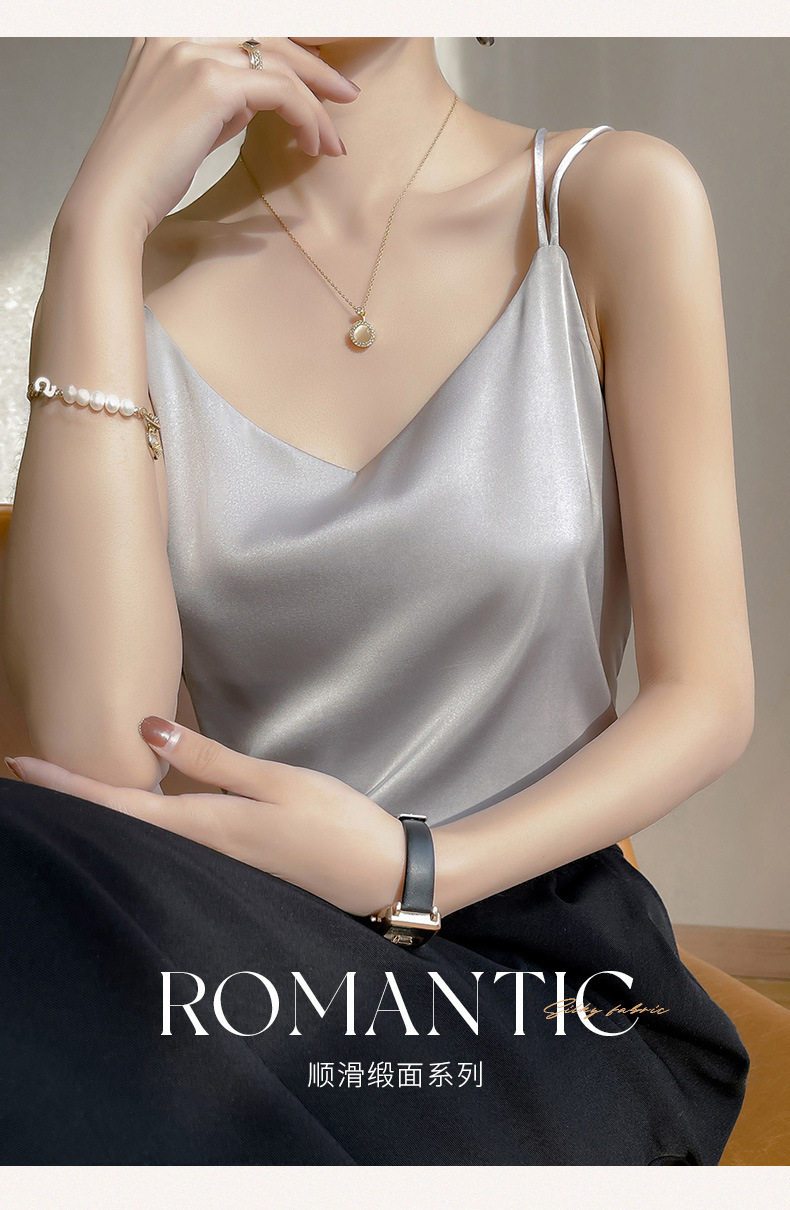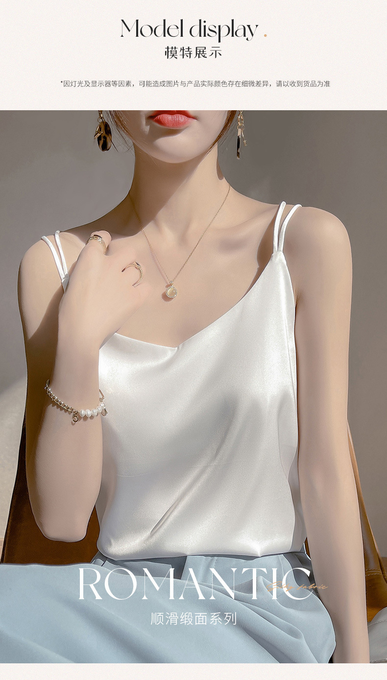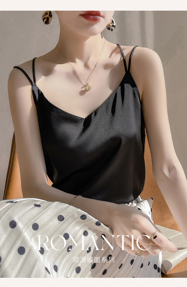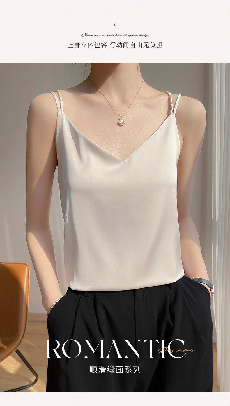 2025 년 여름 실크 카미 솔 여성 내부 아세트산 탑 섹시 베이스 셔츠 여름 아우터 세트스토어 가기