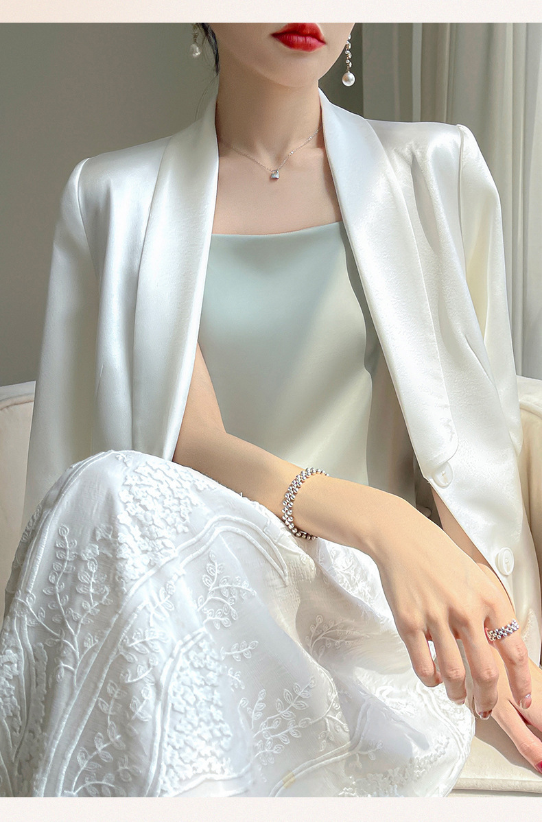 2025 년 여름 실크 카미 솔 여성 내부 아세트산 탑 섹시 베이스 셔츠 여름 아우터 세트