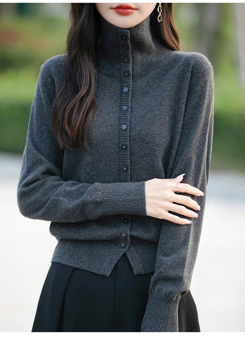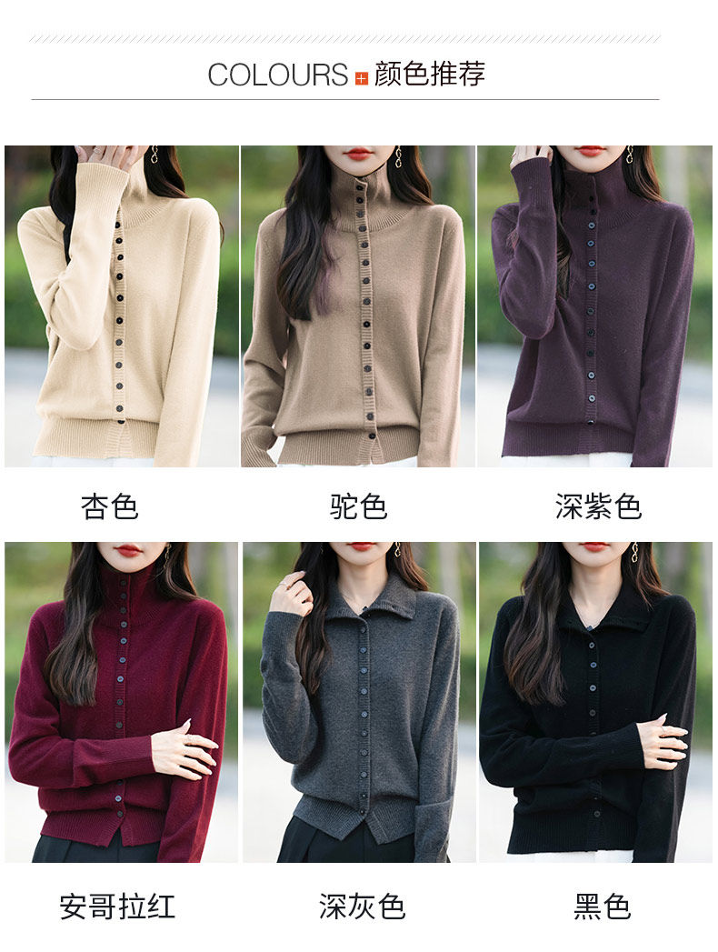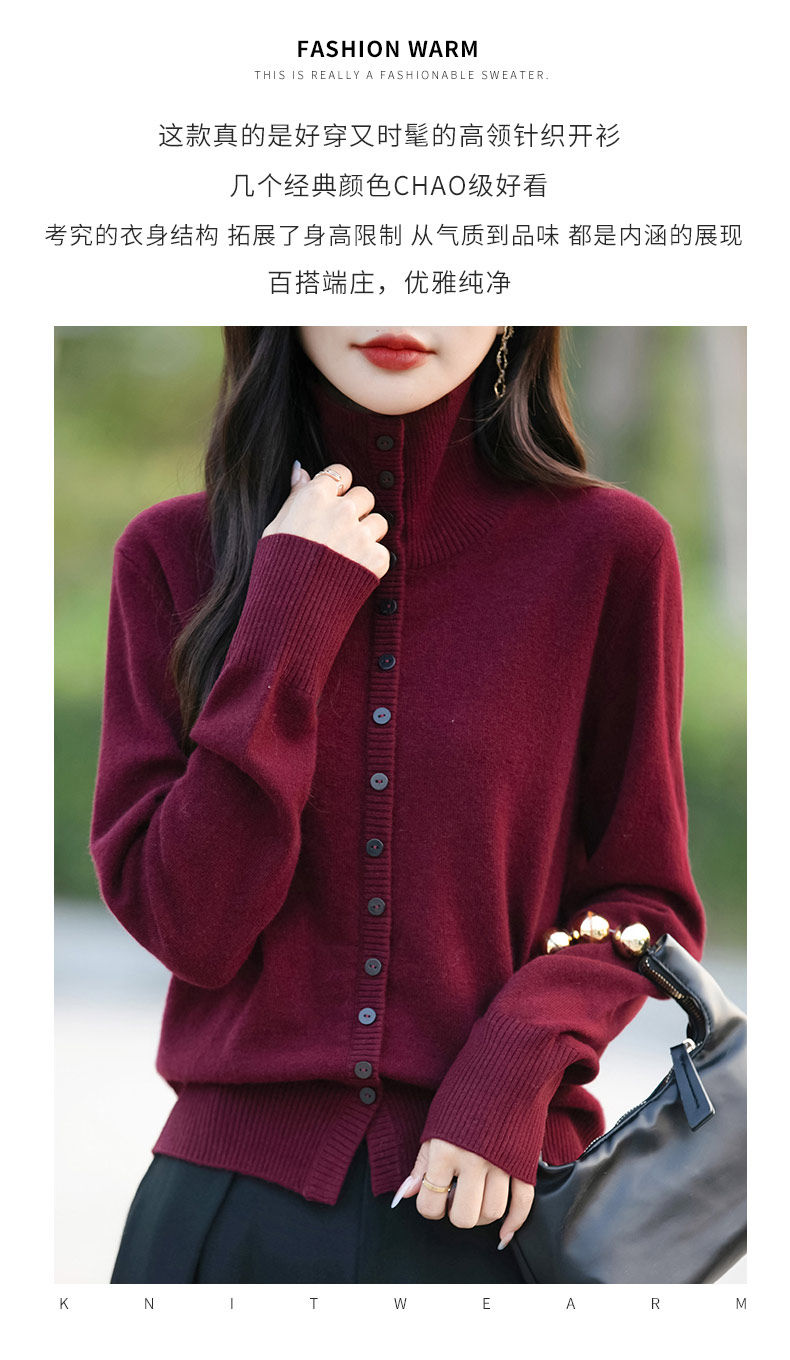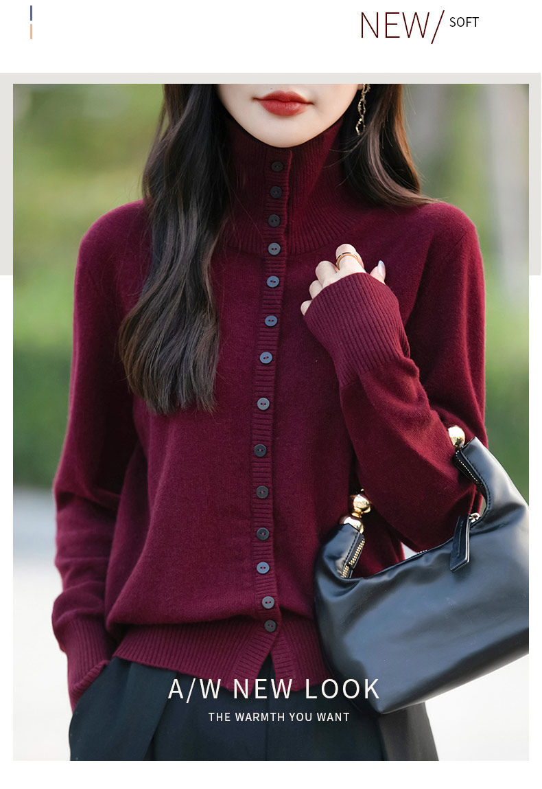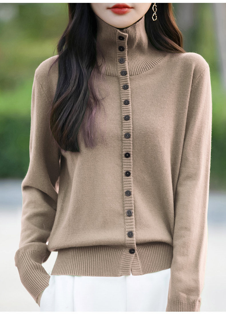 무거운 두꺼운 높은 옷깃 니트 카디건 여성용 긴 소매 니트 베이스 셔츠 따뜻한 내부 서양식 스웨터 2025 새로운스토어 가기