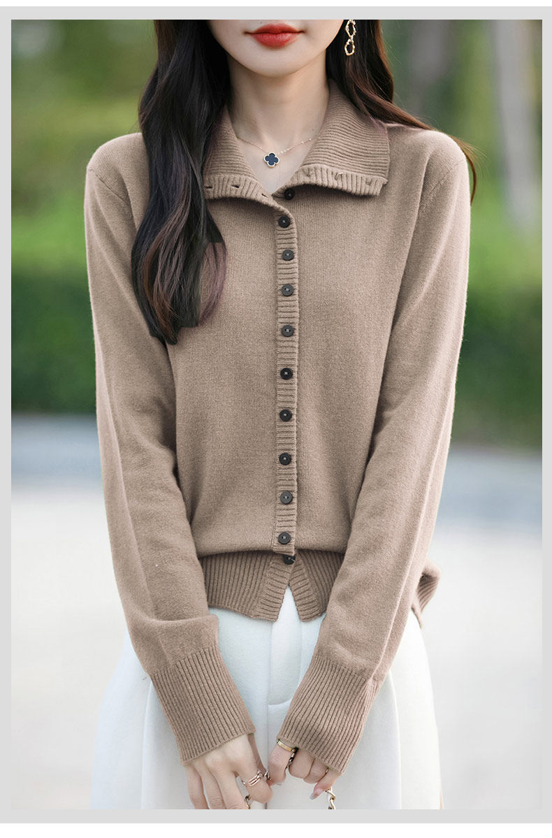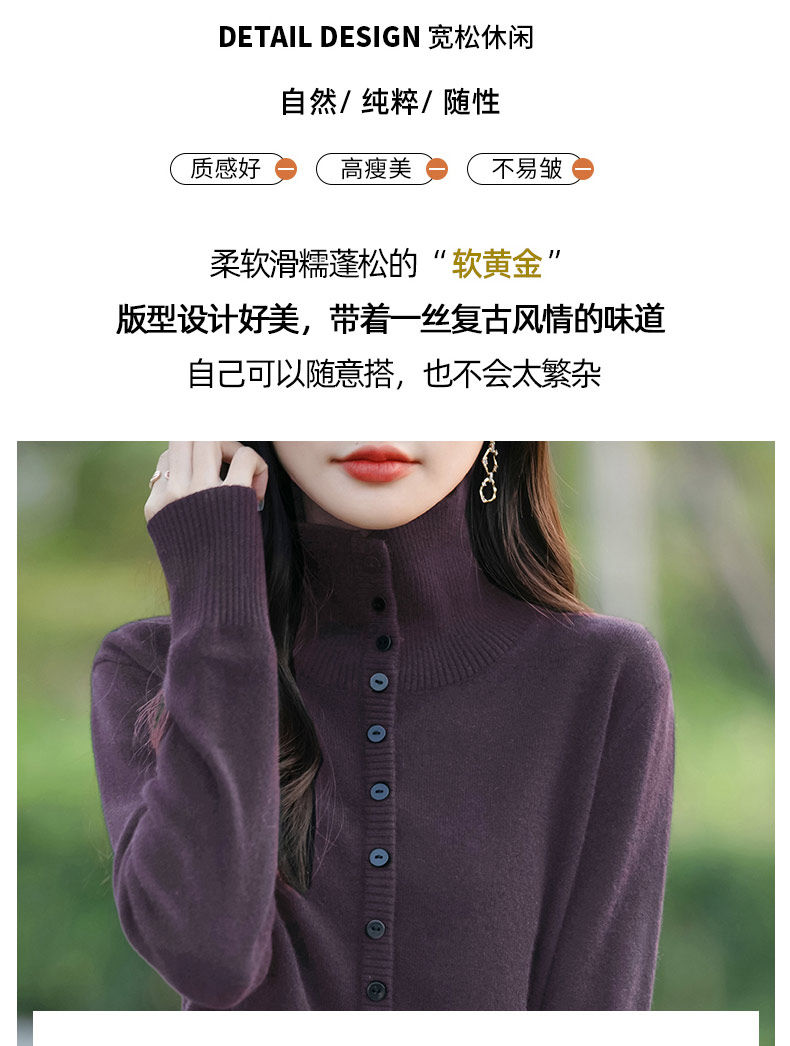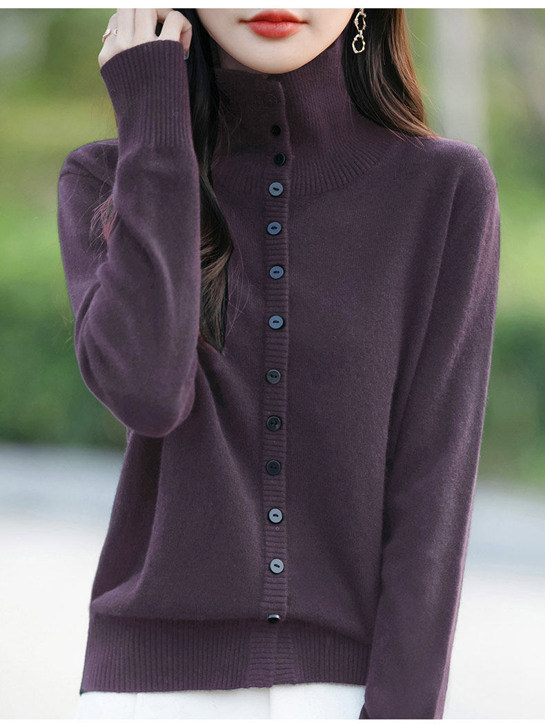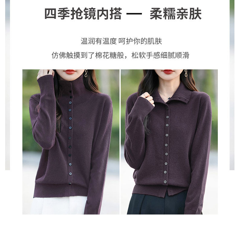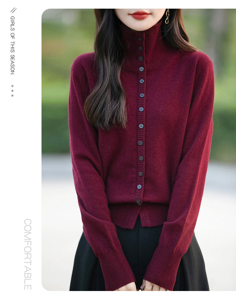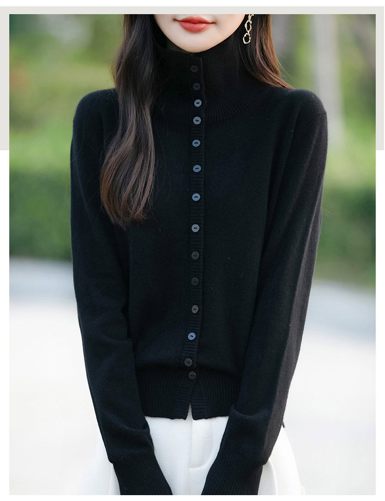무거운 두꺼운 높은 옷깃 니트 카디건 여성용 긴 소매 니트 베이스 셔츠 따뜻한 내부 서양식 스웨터 2025 새로운스토어 가기