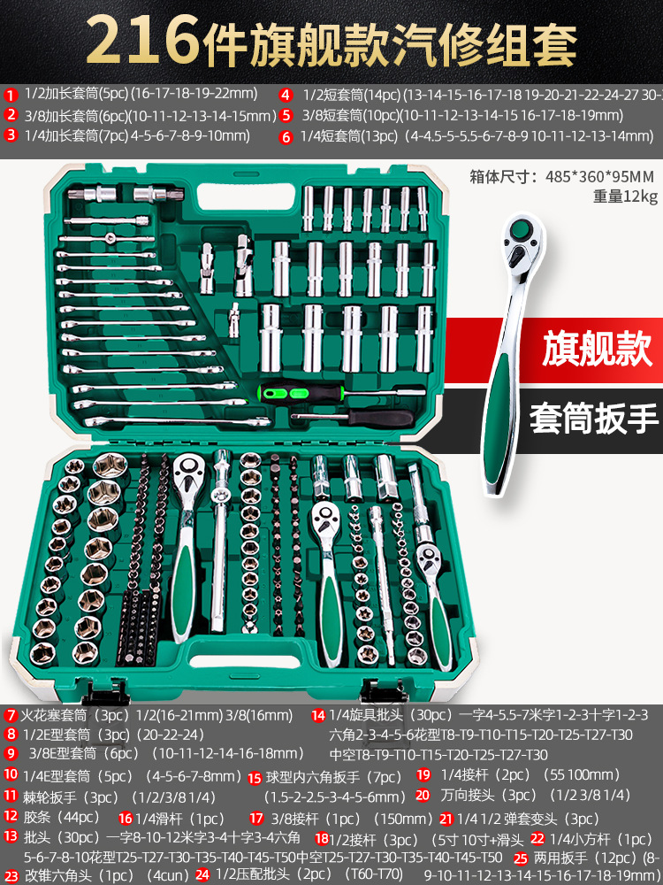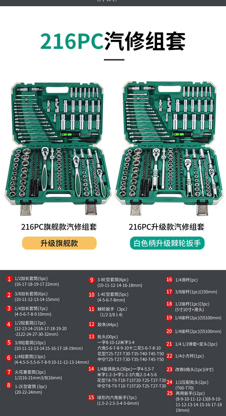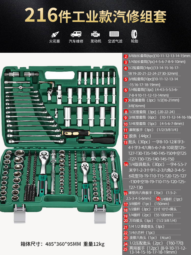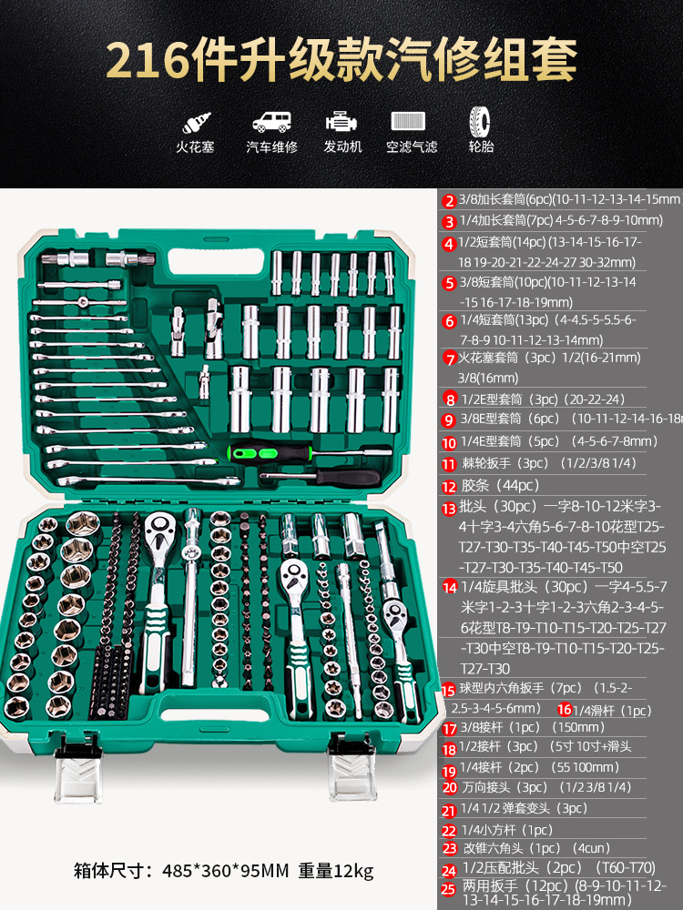 • [프로페셔널 등급] 72개 치아가 있는 216개 자동차 수리 세트