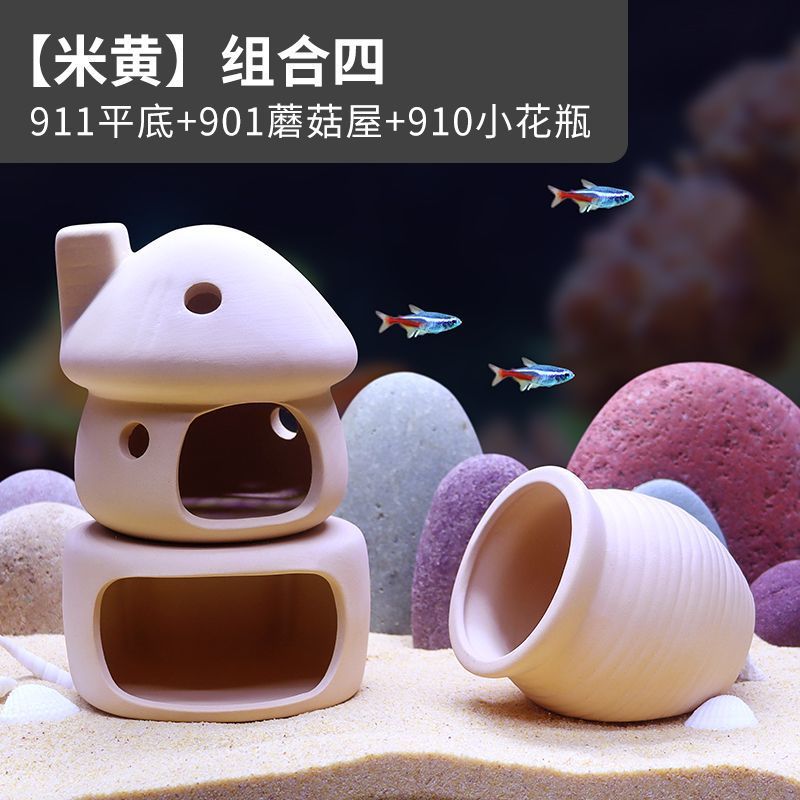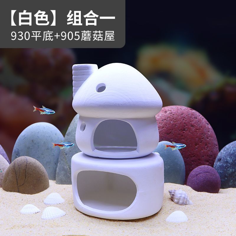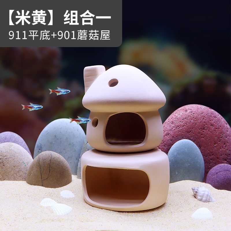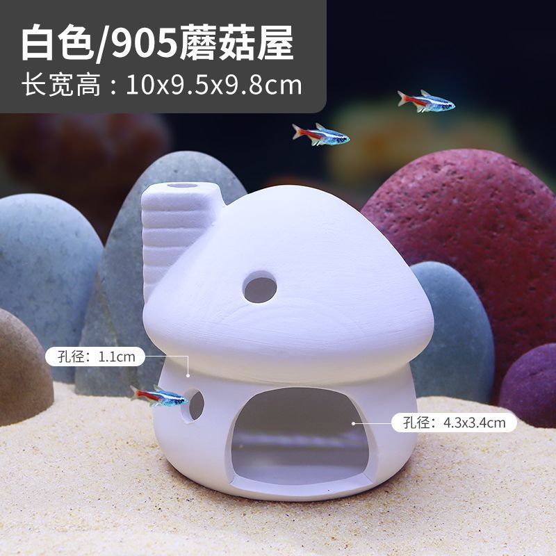 물고기 탱크 버섯 집 도자기 냄비 장식품 창조적 인 장식 풀 세트 풍경 관상용 물고기 산란 구멍 새우 둥지 세라믹 회피스토어 가기
