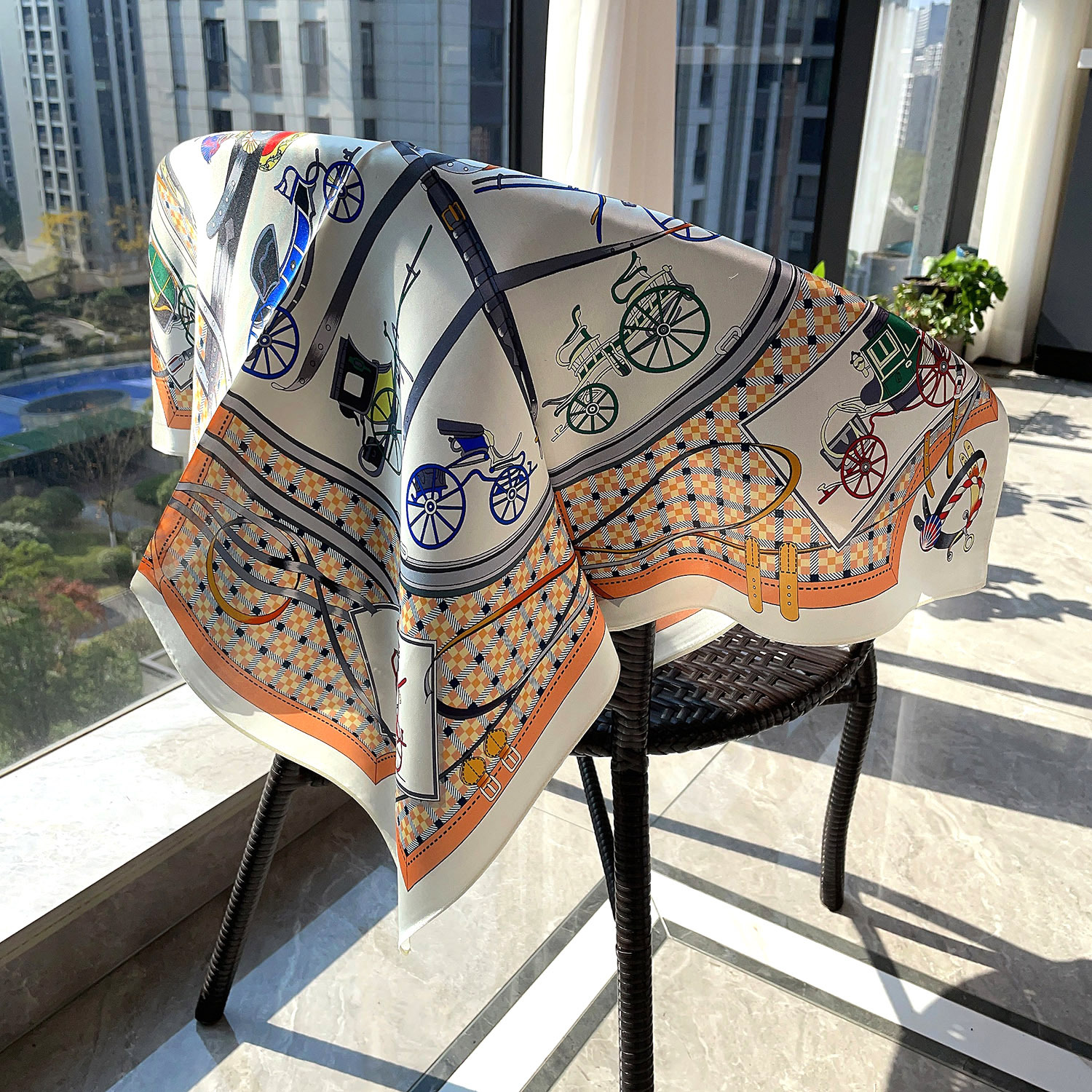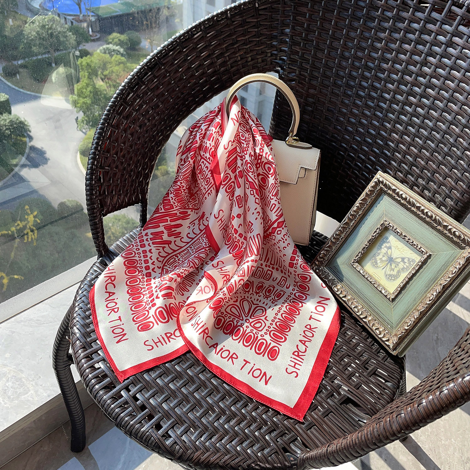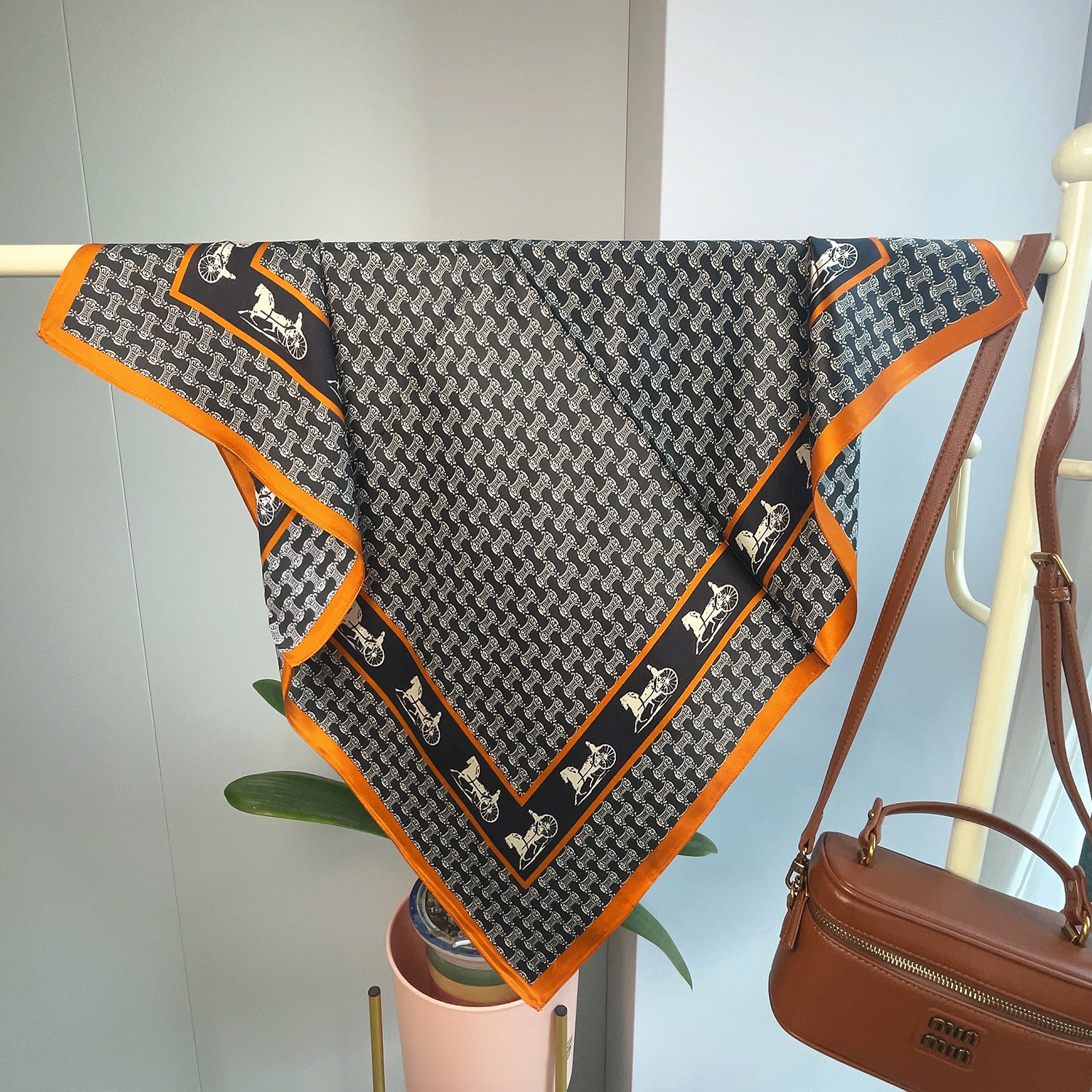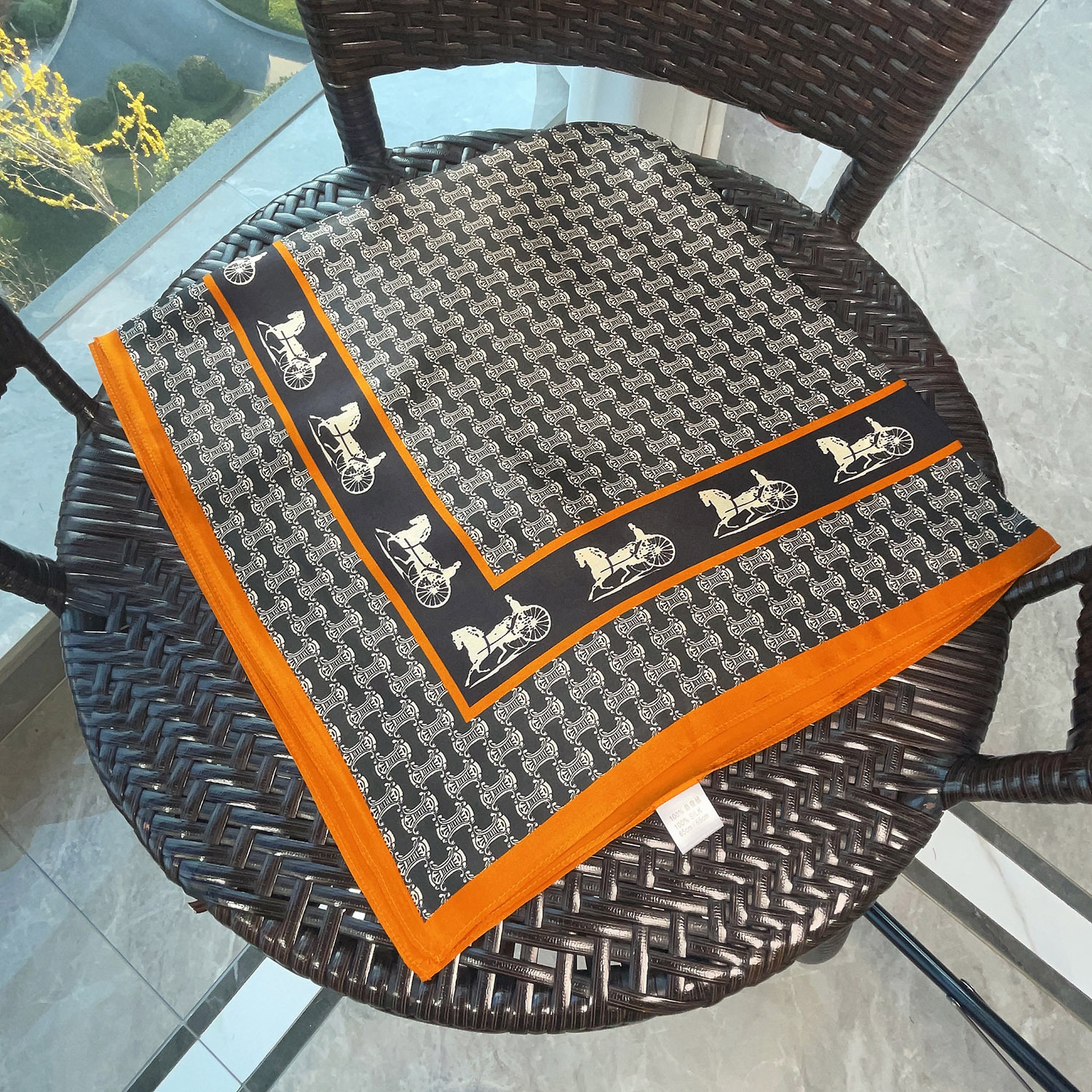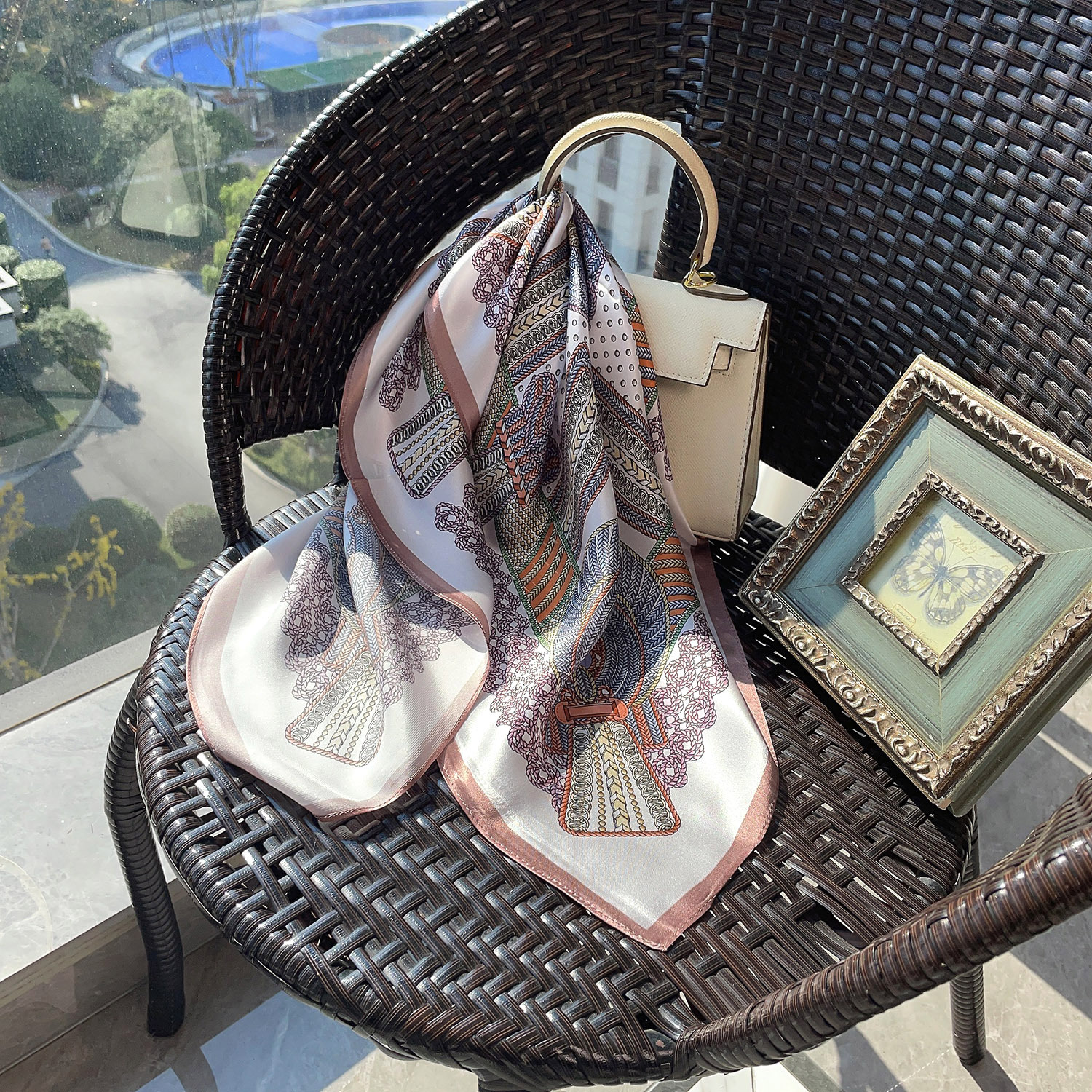 새로운 레드 65 스퀘어 100 멀 베리 실크 플레인 사틴 실크 실크 스카프 여성 편지 캐리지 아크 드 개선문 다크 브라운