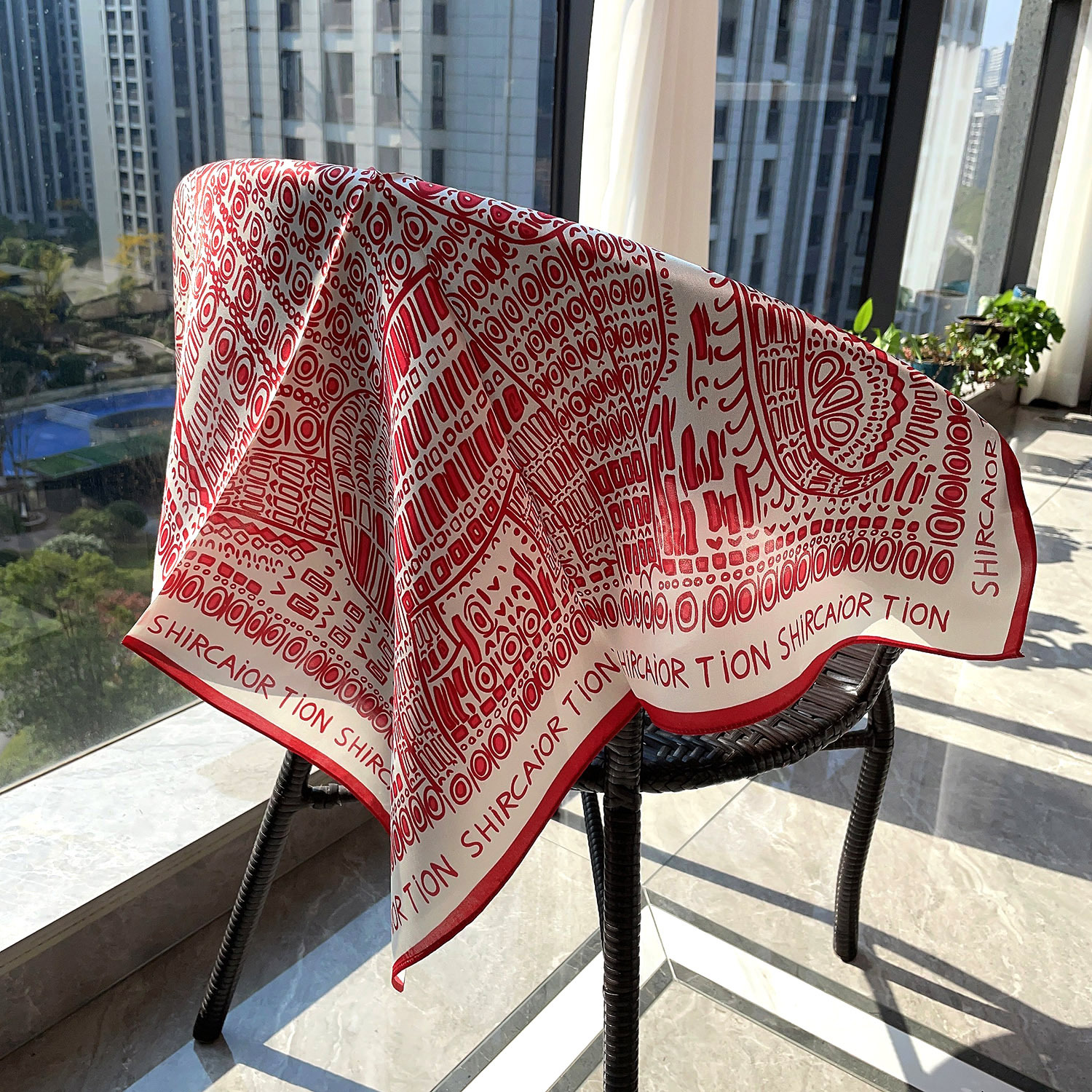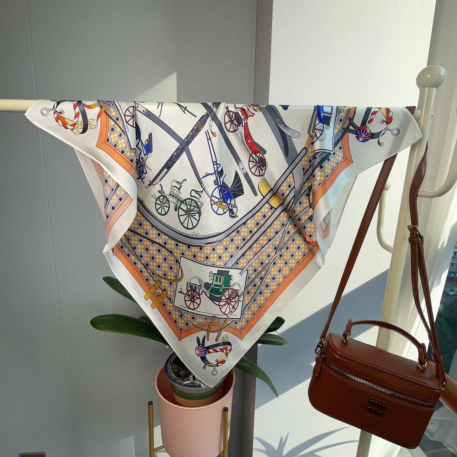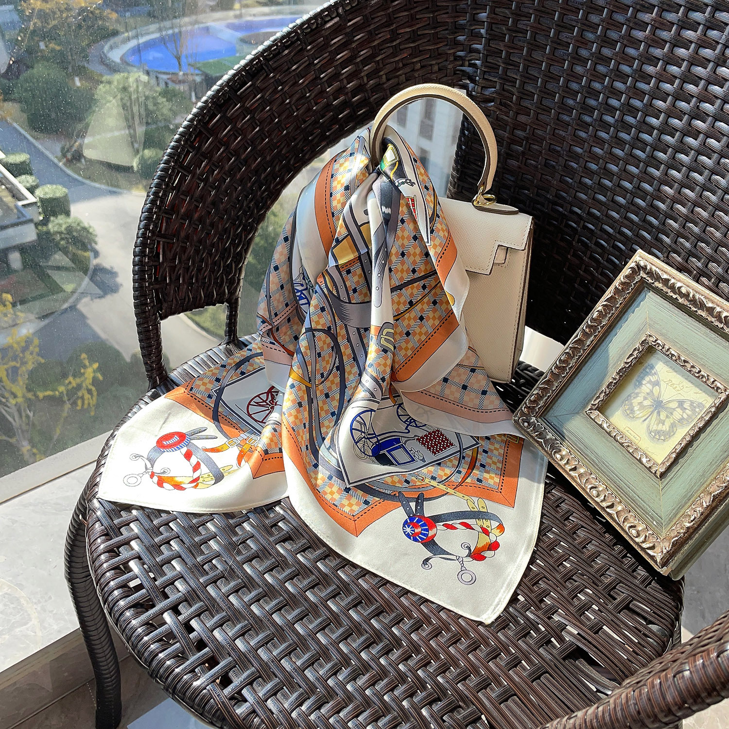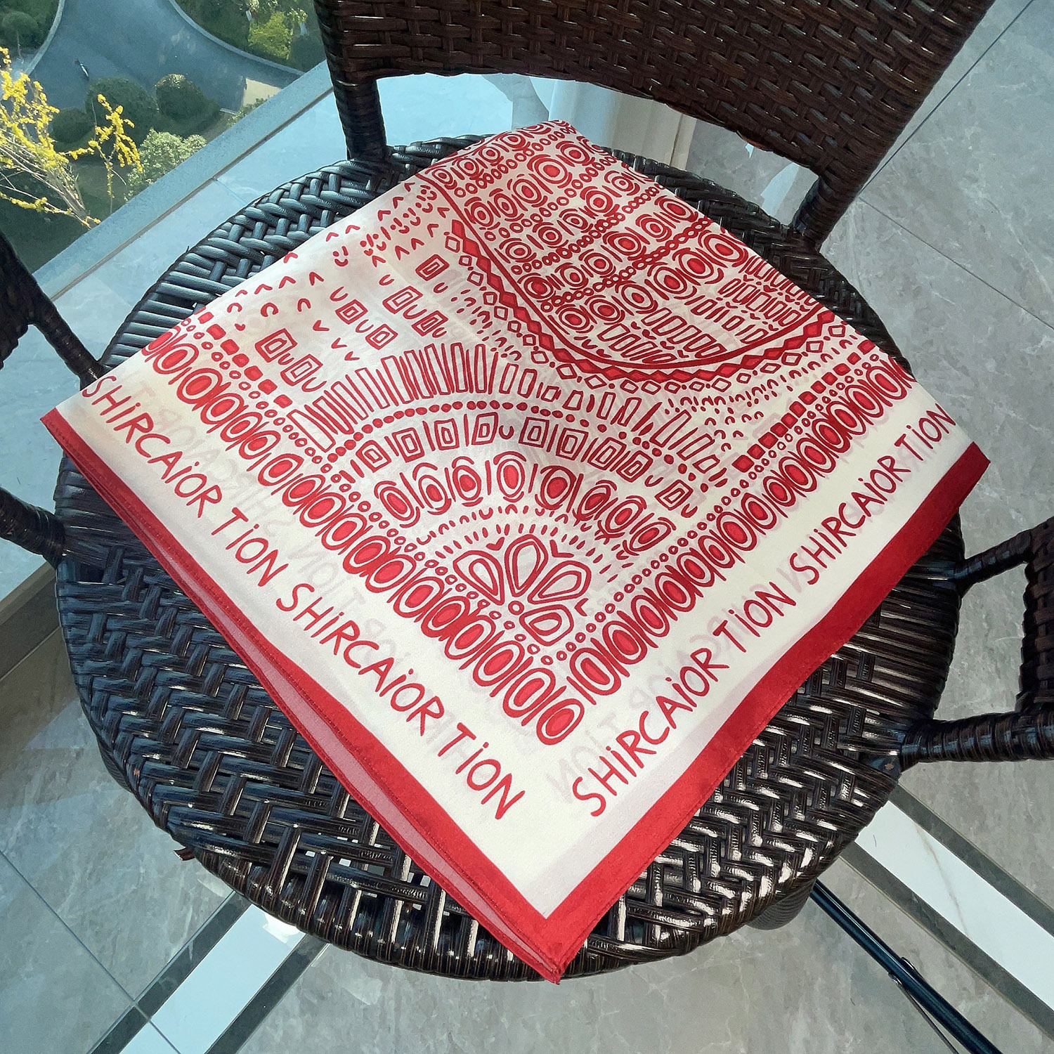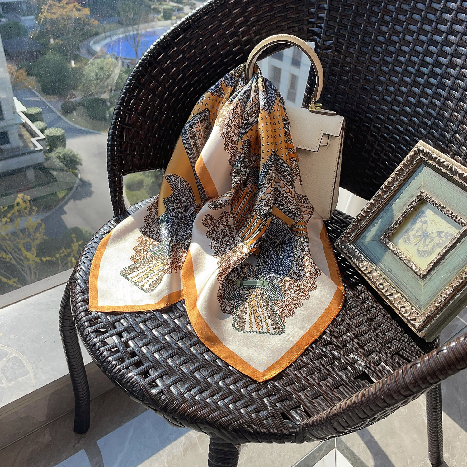 새로운 레드 65 스퀘어 100 멀 베리 실크 플레인 사틴 실크 실크 스카프 여성 편지 캐리지 아크 드 개선문 다크 브라운