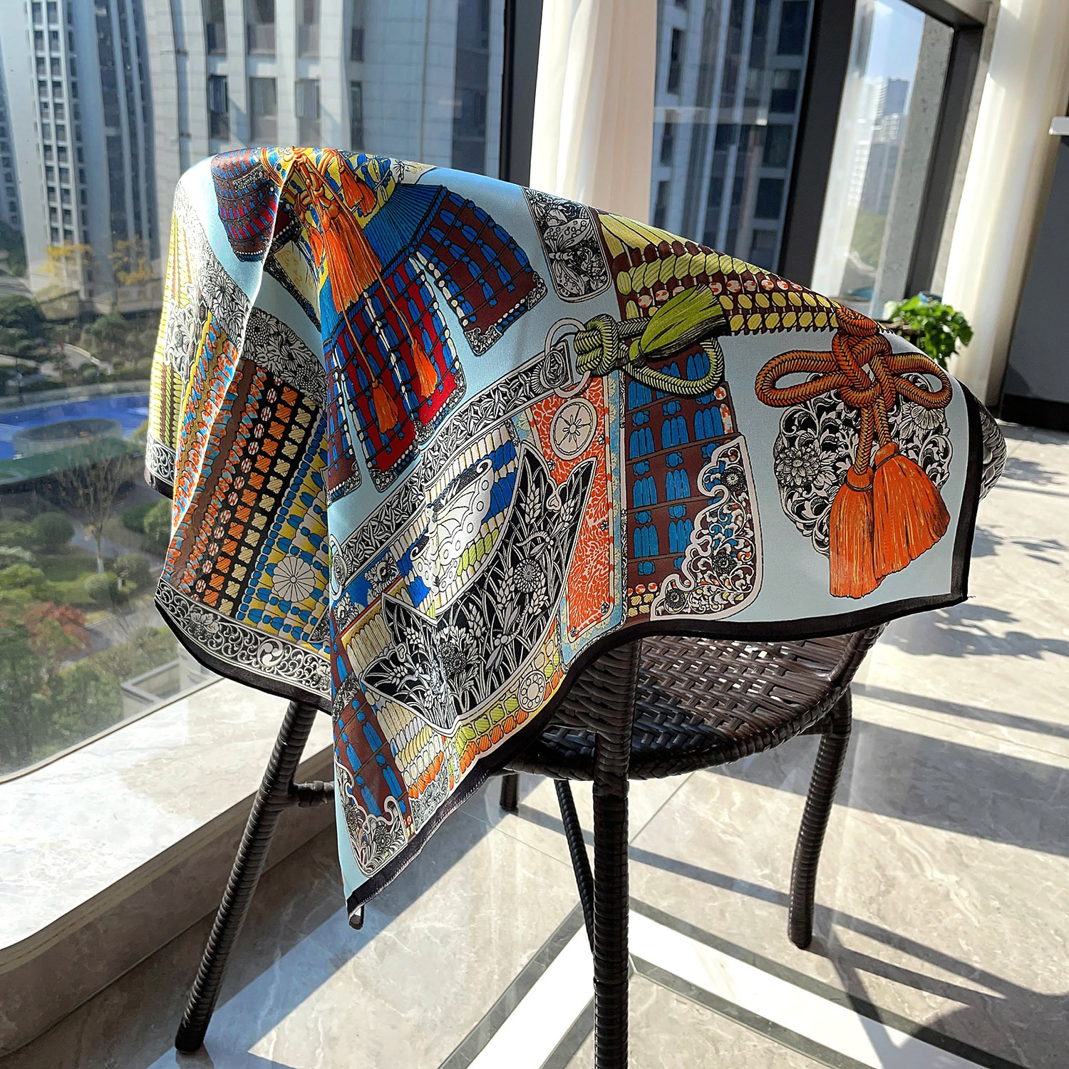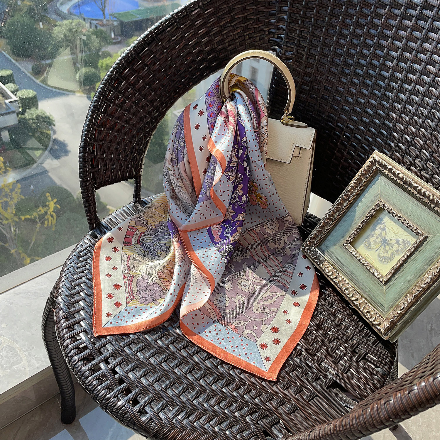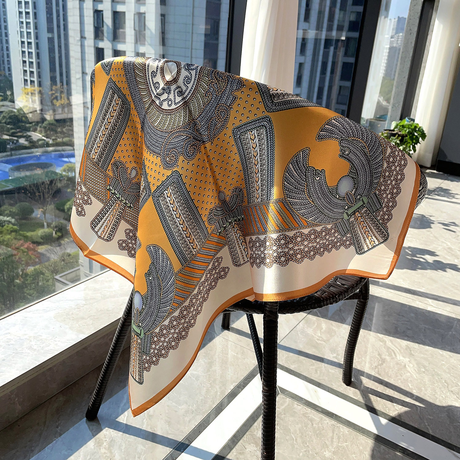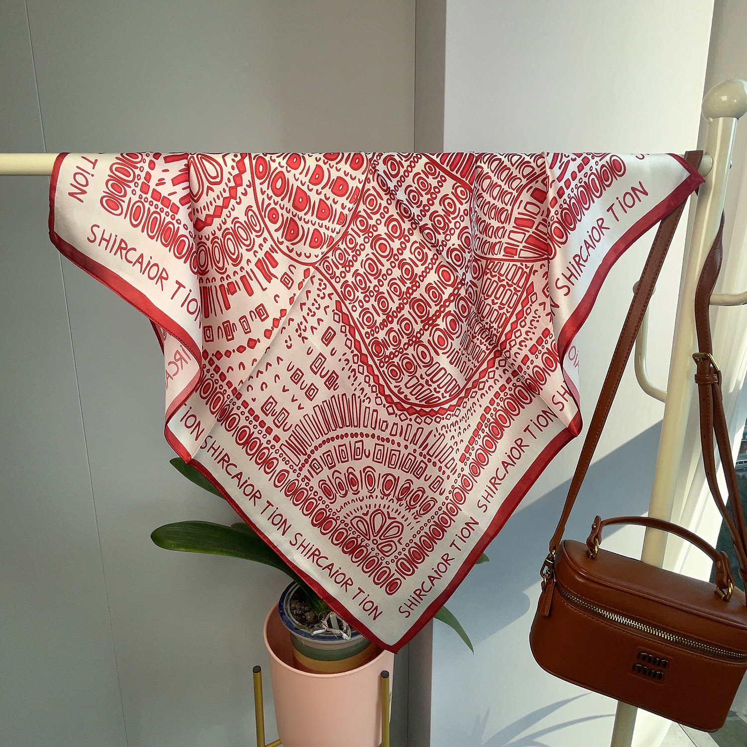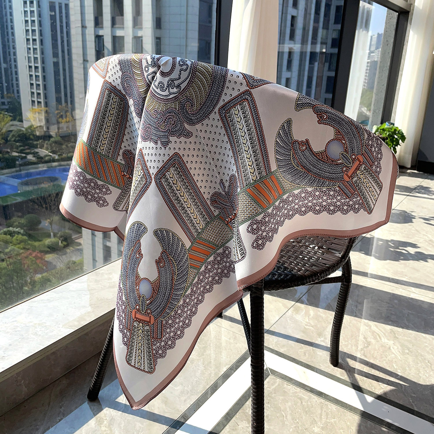 새로운 레드 65 스퀘어 100 멀 베리 실크 플레인 사틴 실크 실크 스카프 여성 편지 캐리지 아크 드 개선문 다크 브라운
