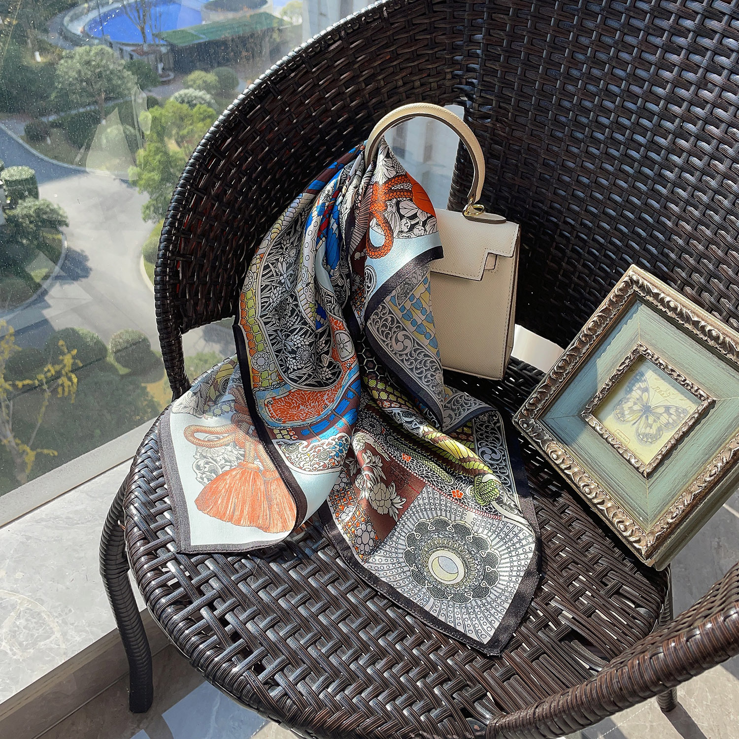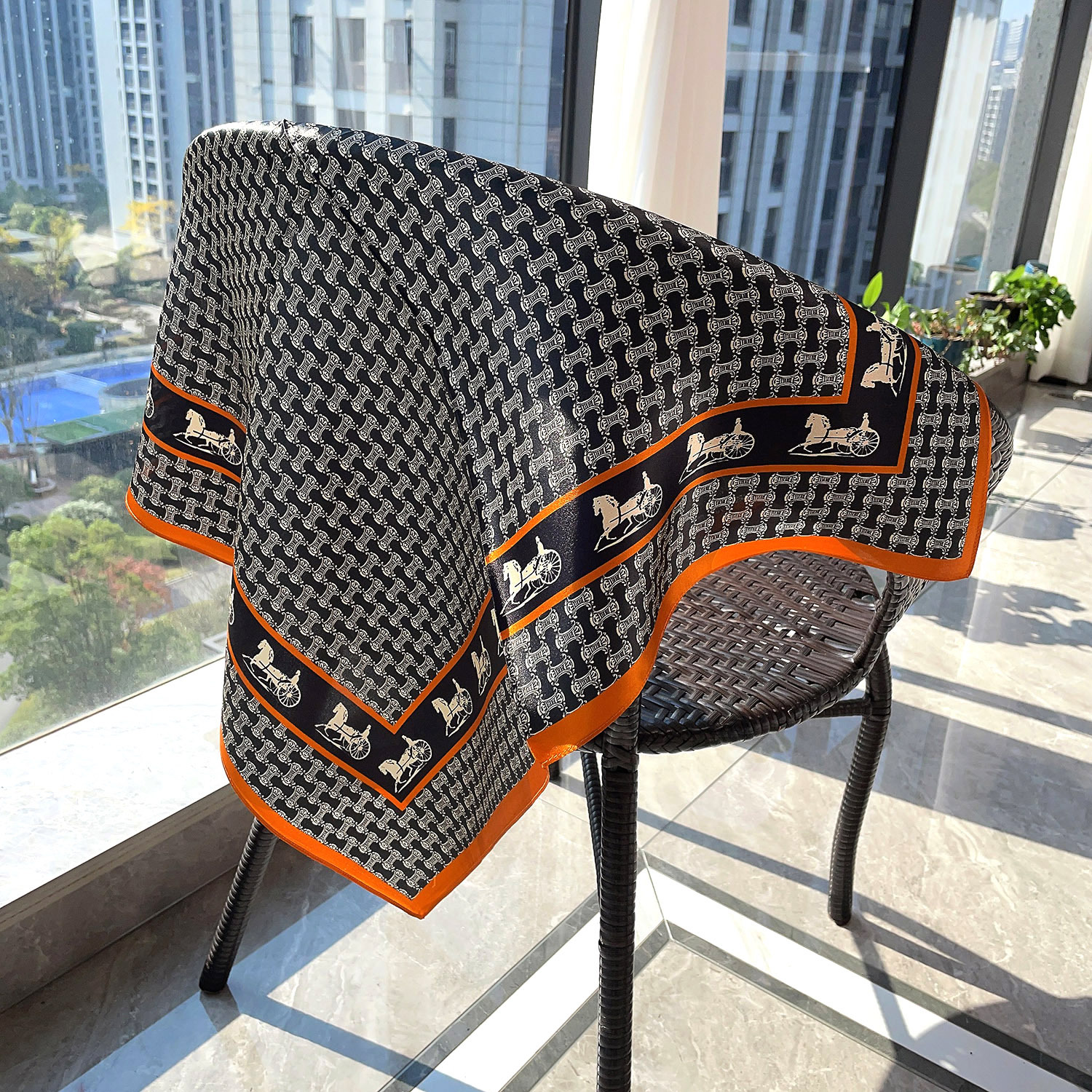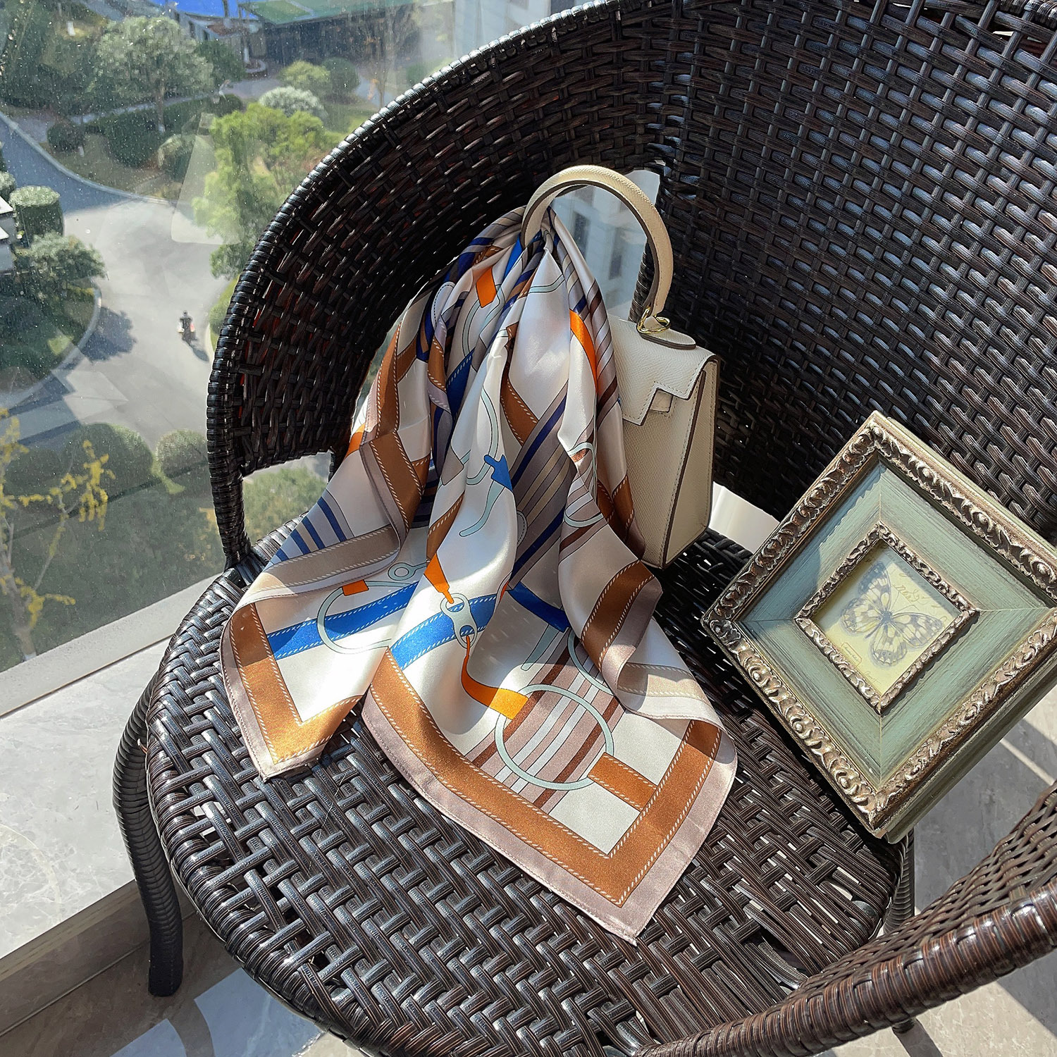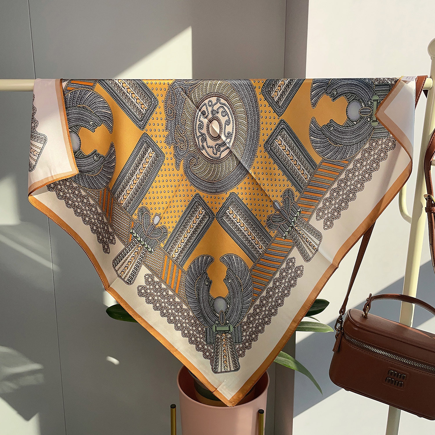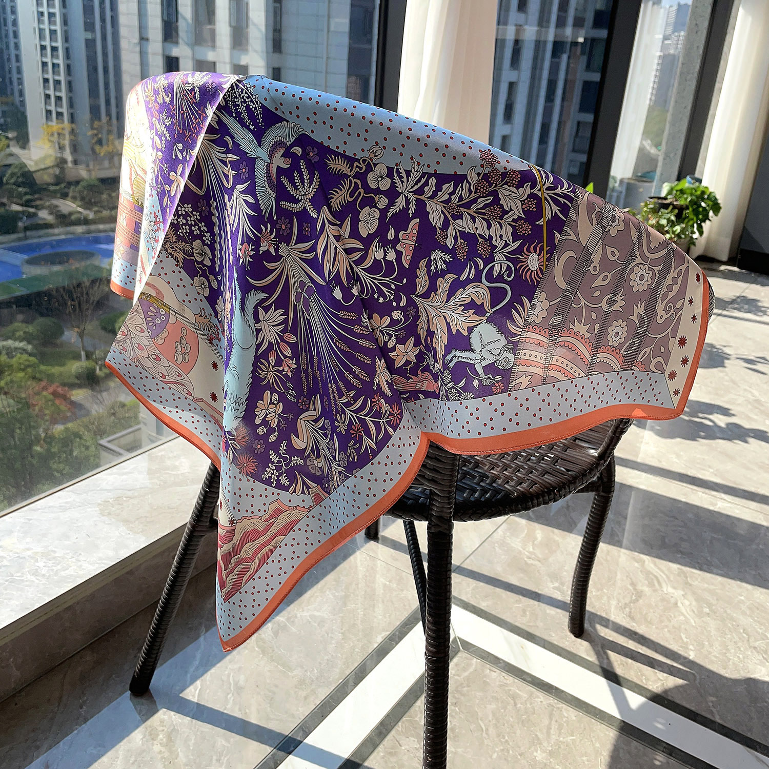 새로운 레드 65 스퀘어 100 멀 베리 실크 플레인 사틴 실크 실크 스카프 여성 편지 캐리지 아크 드 개선문 다크 브라운