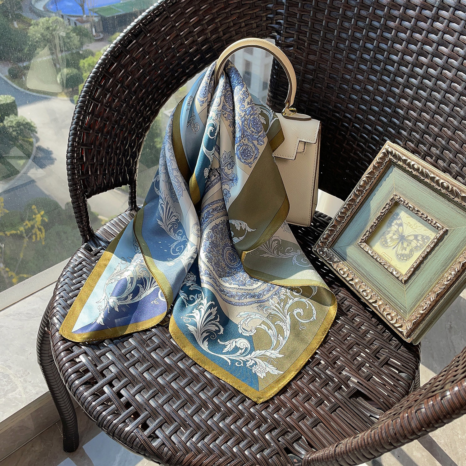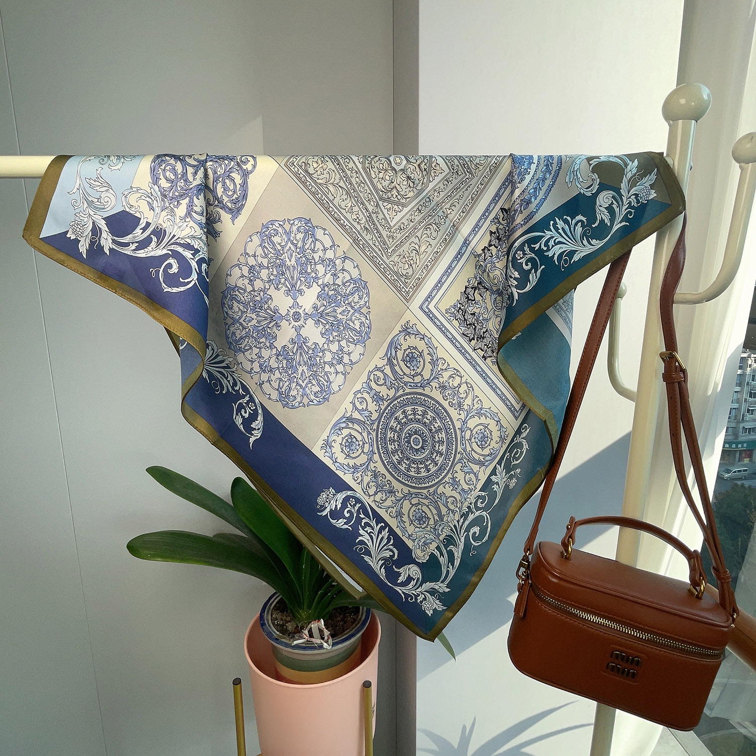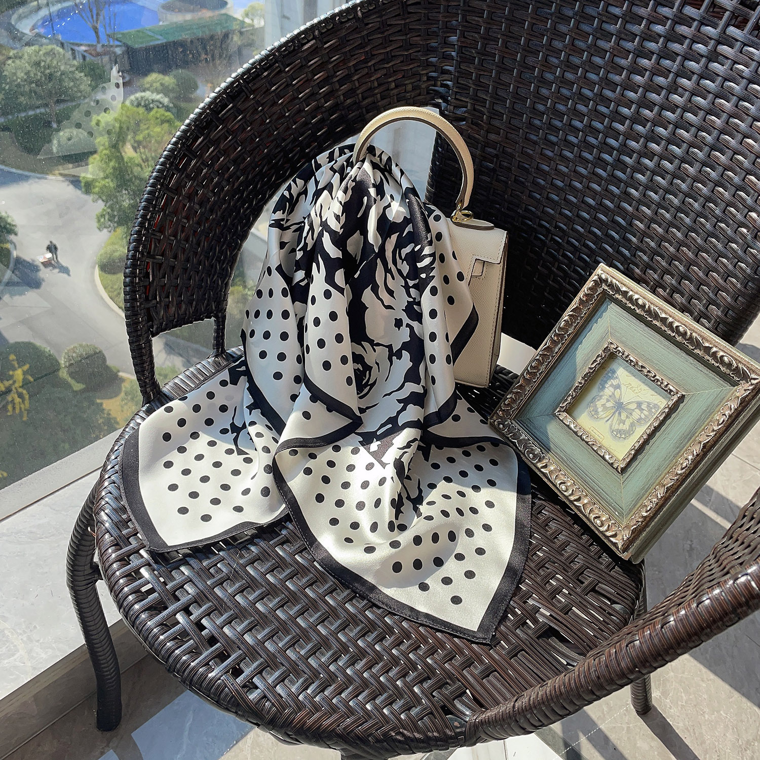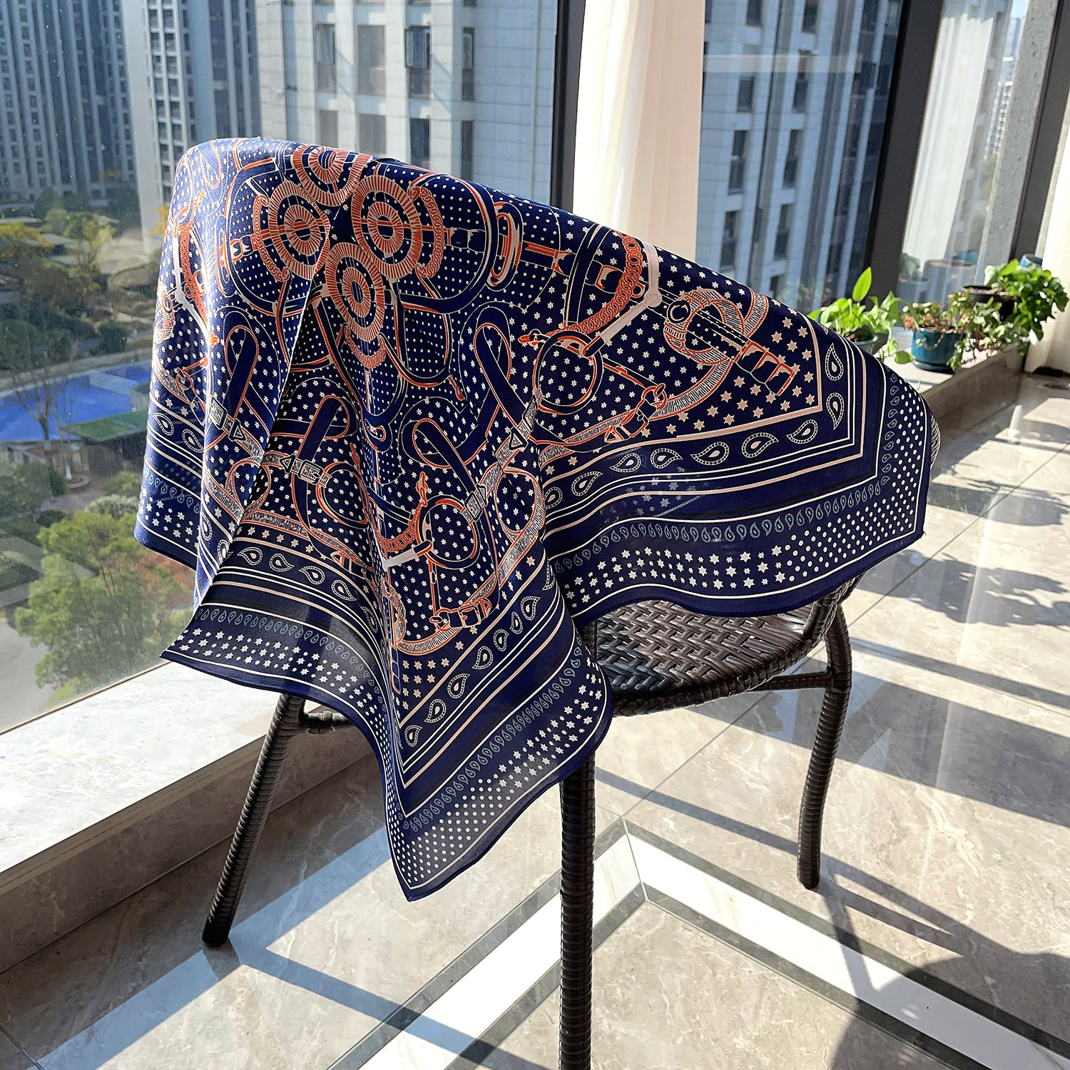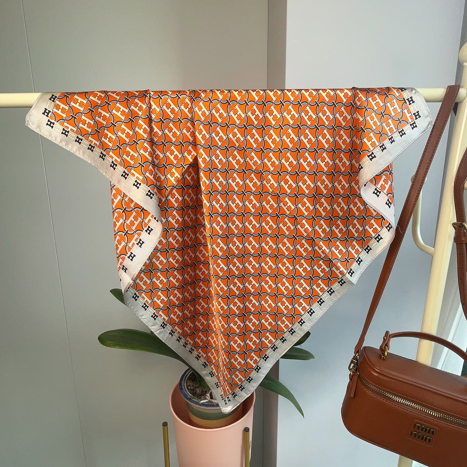 새로운 레드 65 스퀘어 100 멀 베리 실크 플레인 사틴 실크 실크 스카프 여성 편지 캐리지 아크 드 개선문 다크 브라운