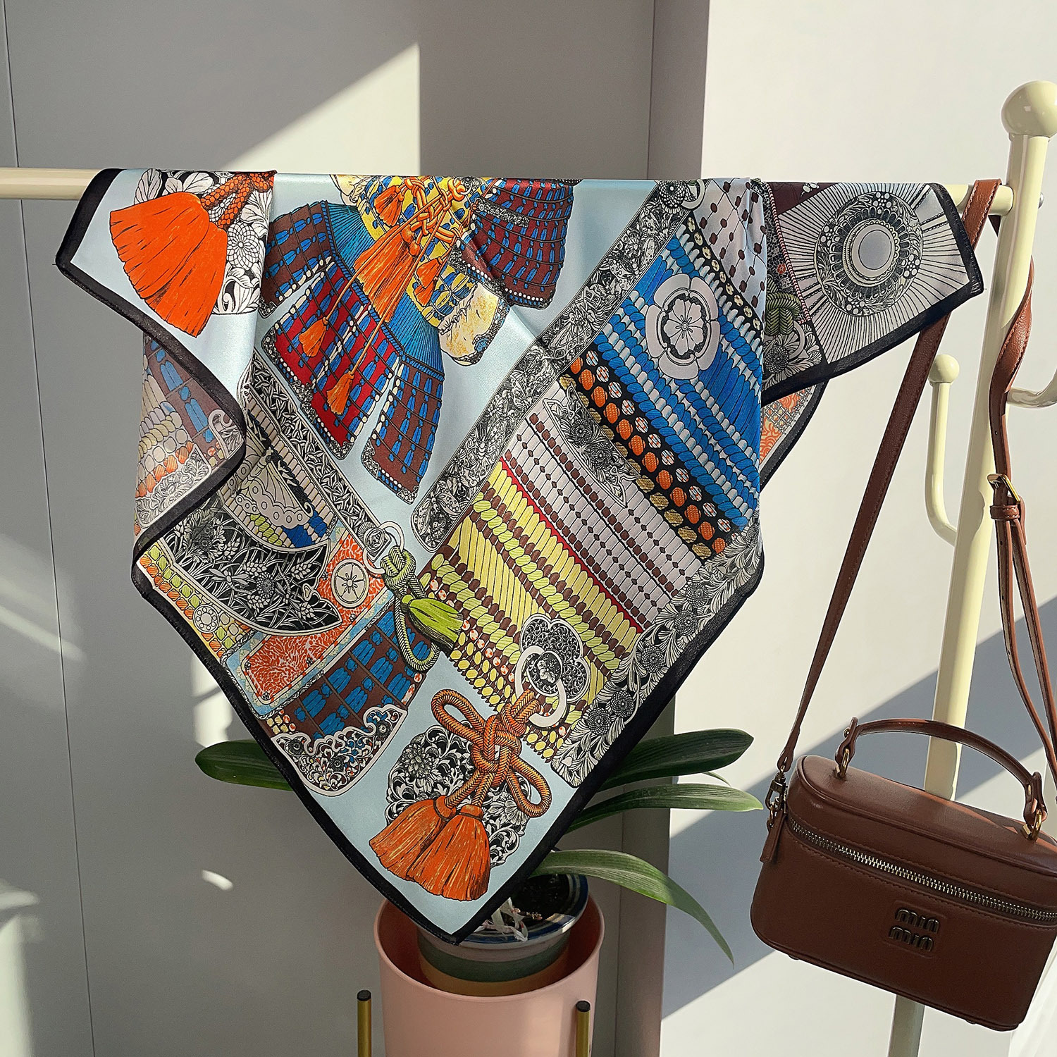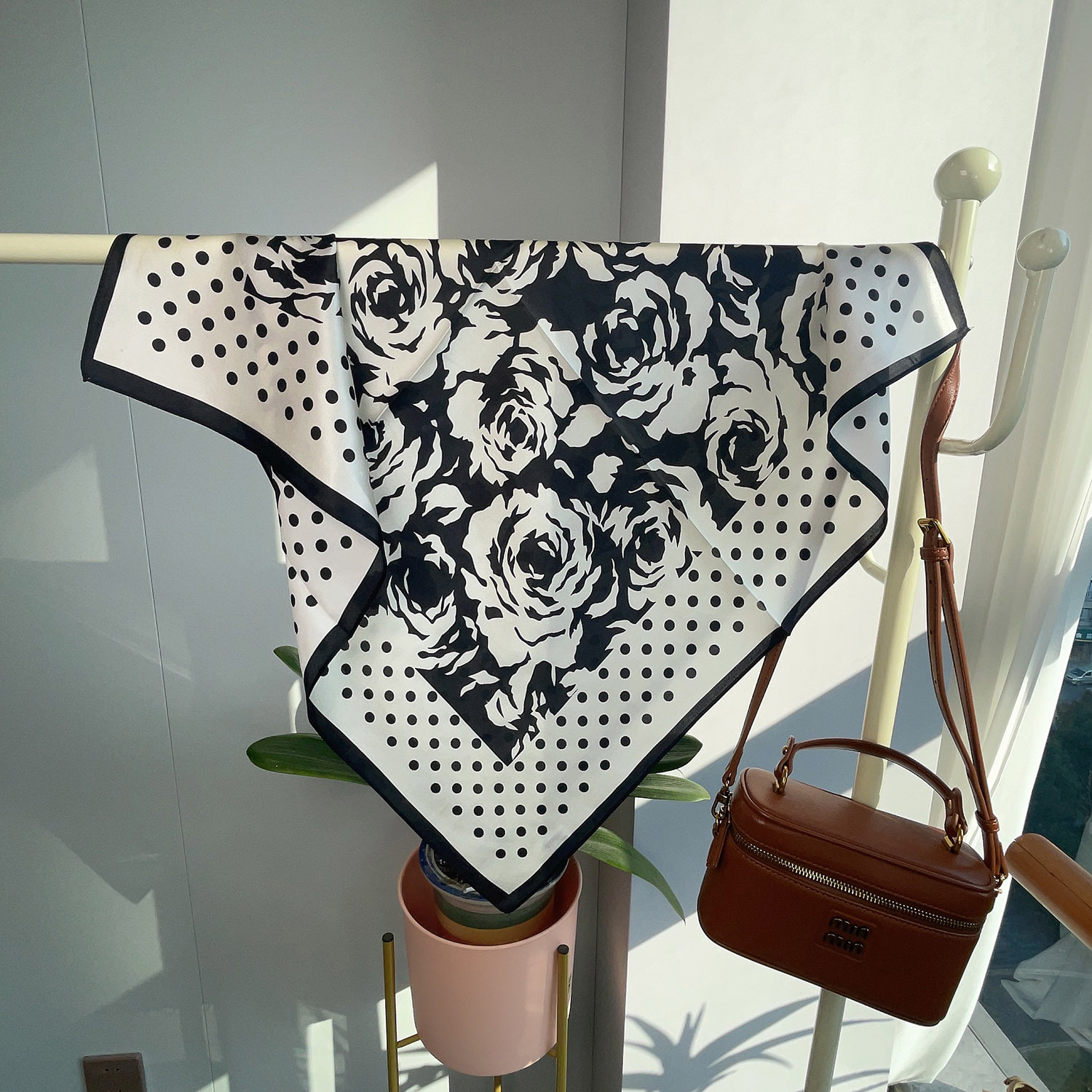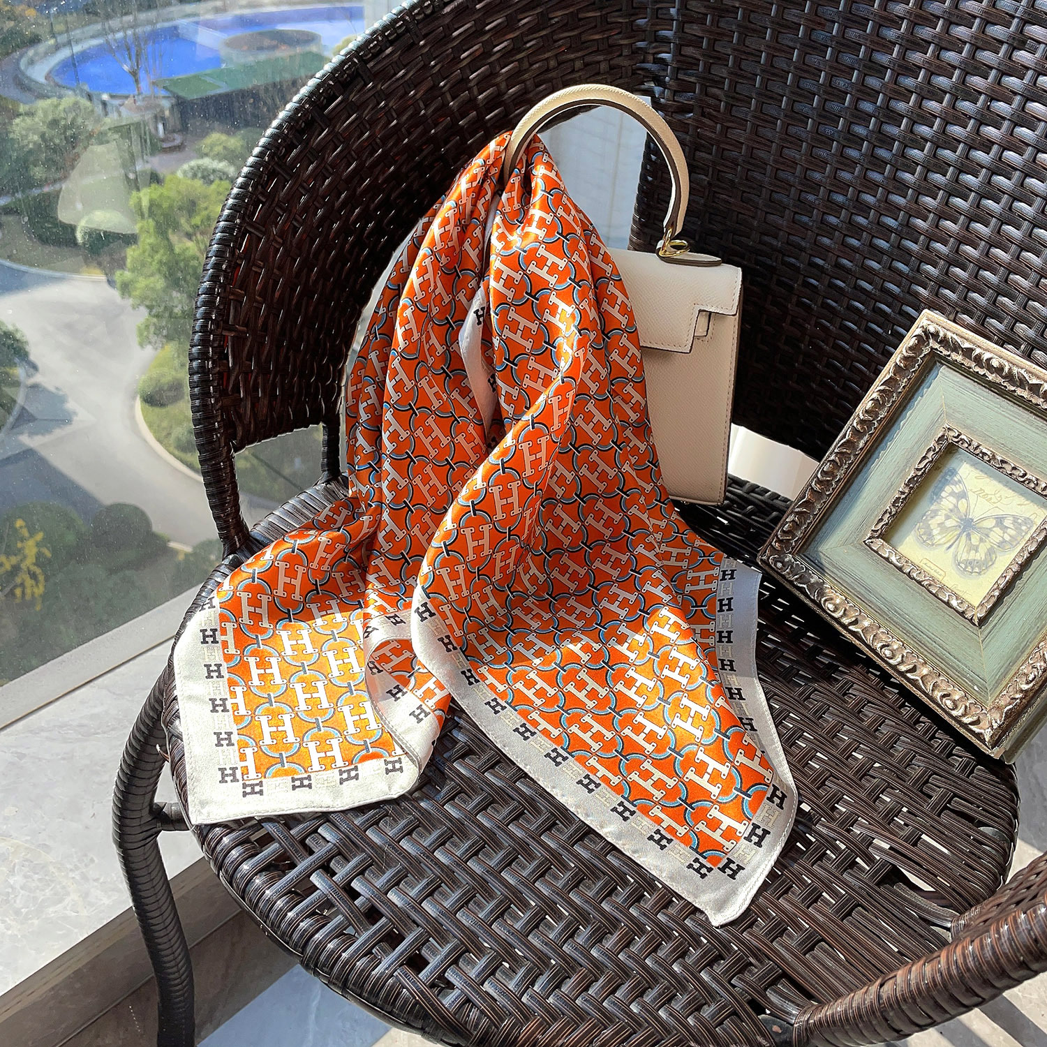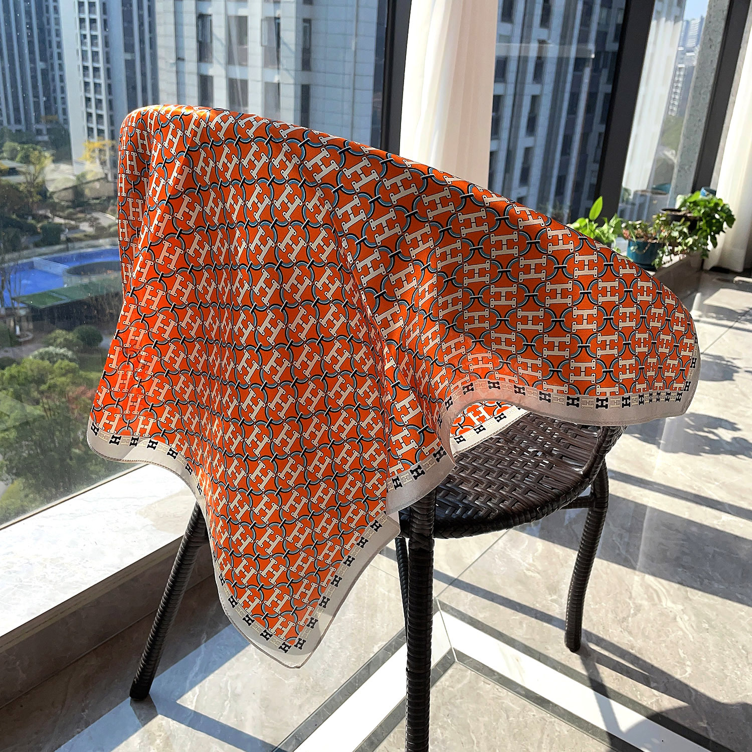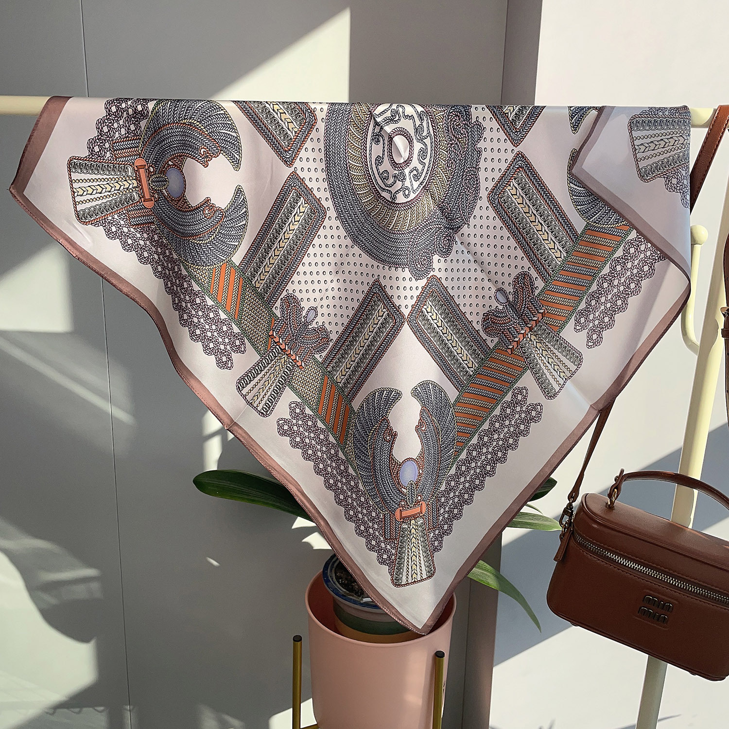 새로운 레드 65 스퀘어 100 멀 베리 실크 플레인 사틴 실크 실크 스카프 여성 편지 캐리지 아크 드 개선문 다크 브라운