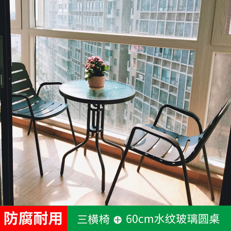 • 가로 의자 3개 2+60cm 물무늬 유리 원형 테이블
