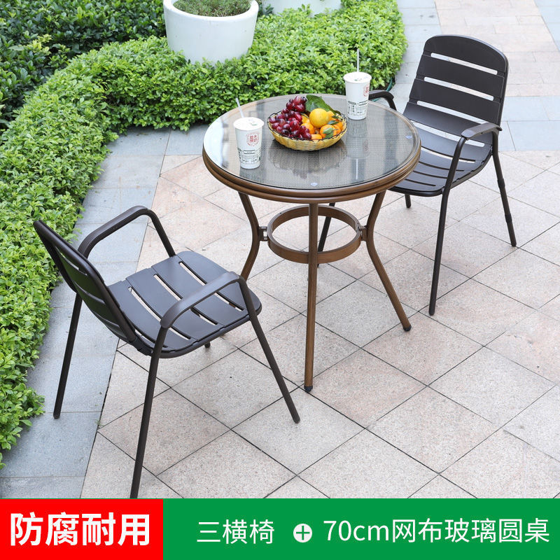 • 가로 의자 3개 2+70cm 메쉬 유리 원형 테이블