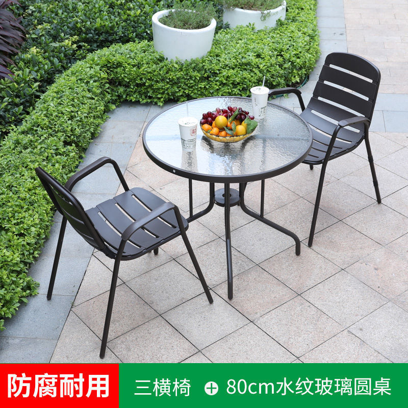 • 가로 의자 3개 2+80cm 물무늬 유리 원형 테이블